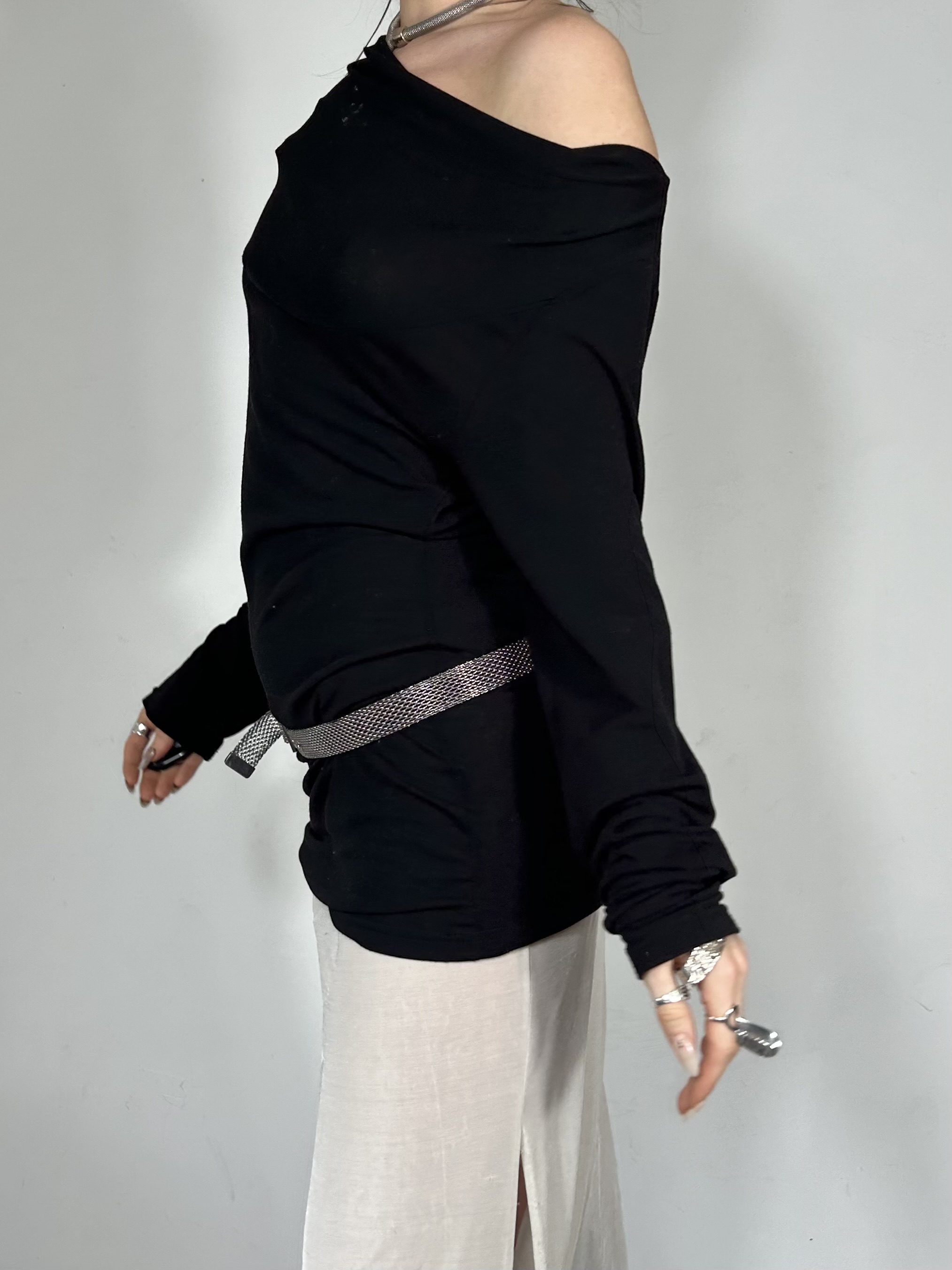 Silver thin chainmail chrome belt