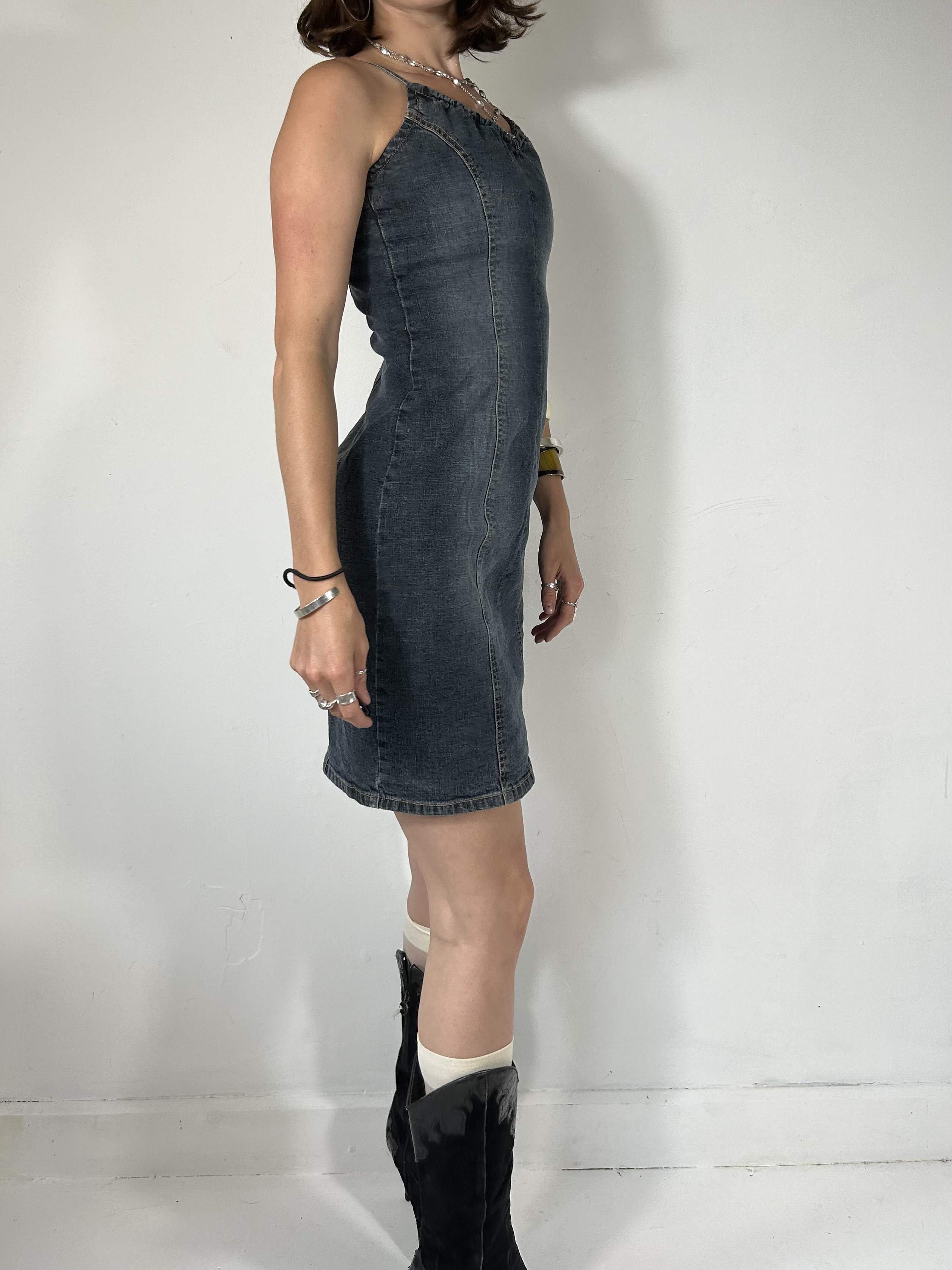 Denim Buffalo mini dress with red embroidered logo
