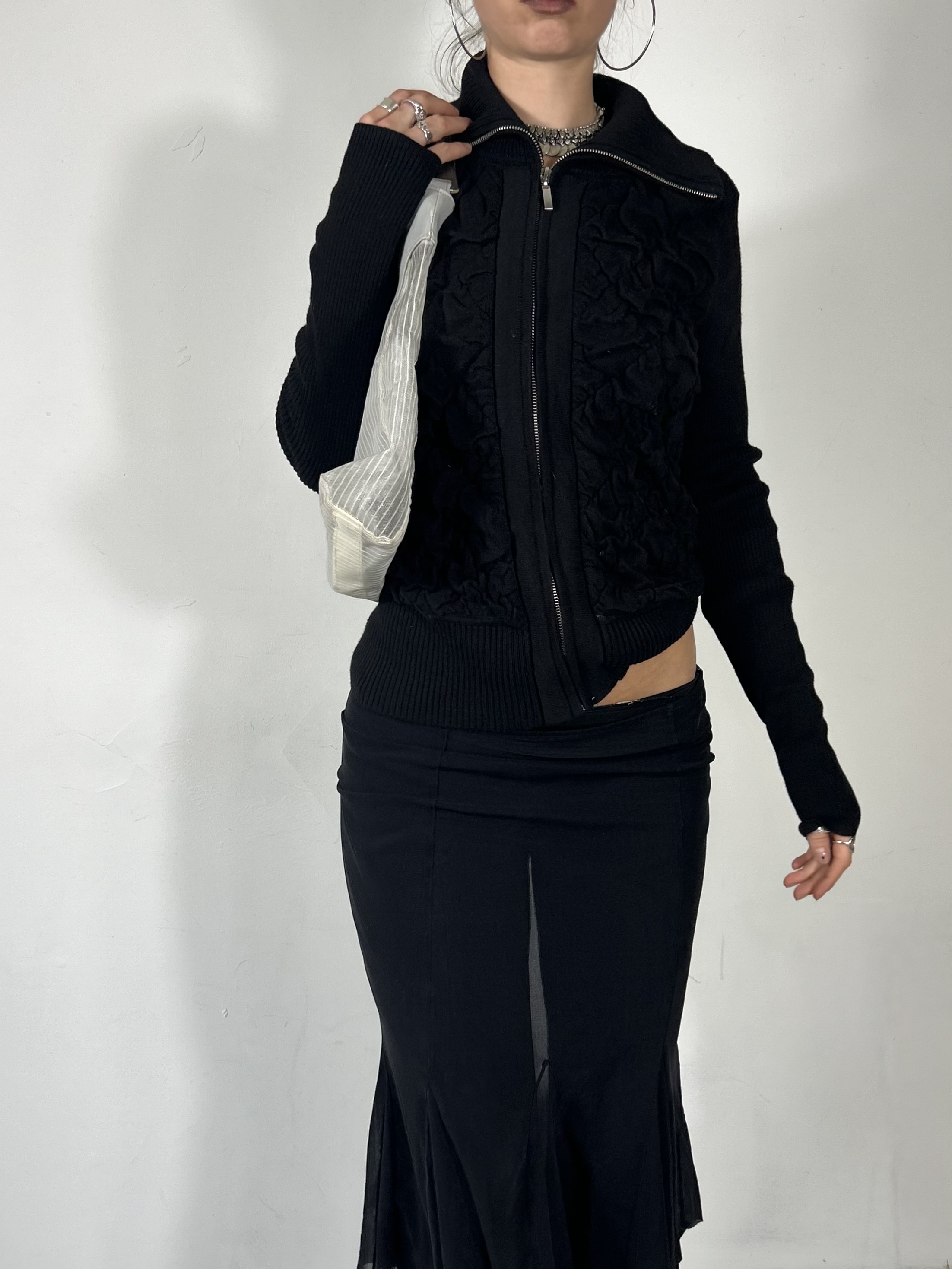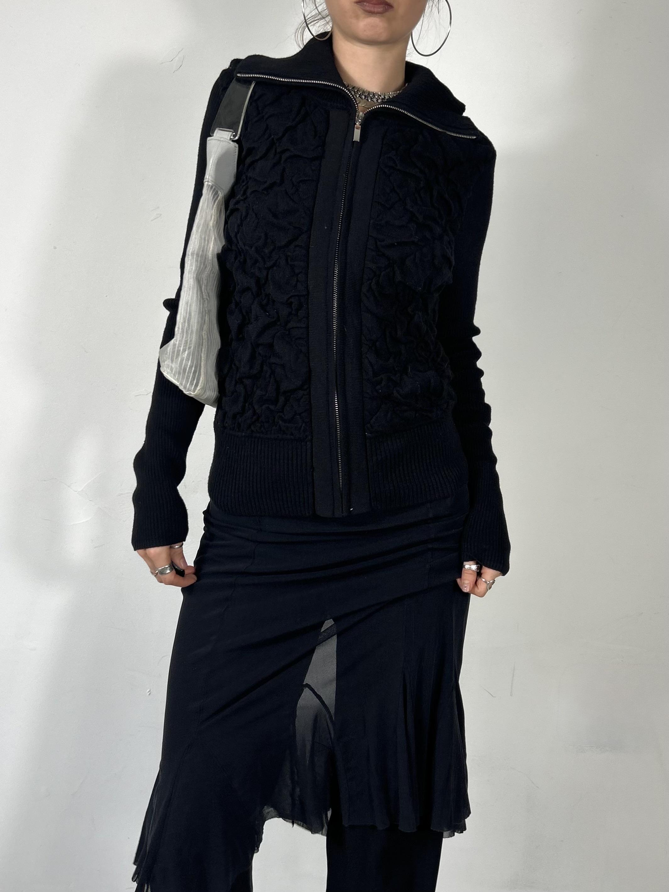 Black zip up jumper with ruching details