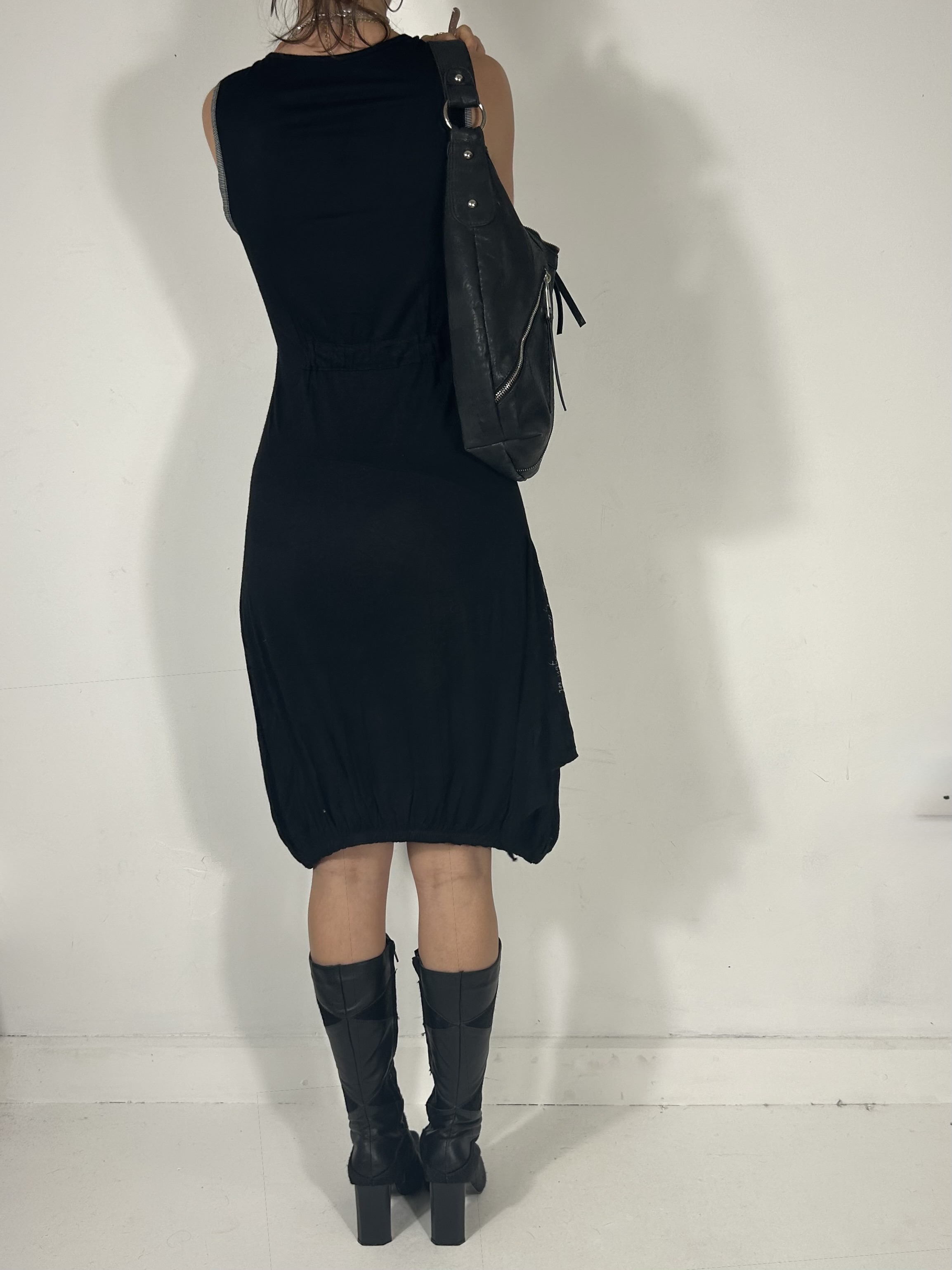Black mixed texture utility midi dress