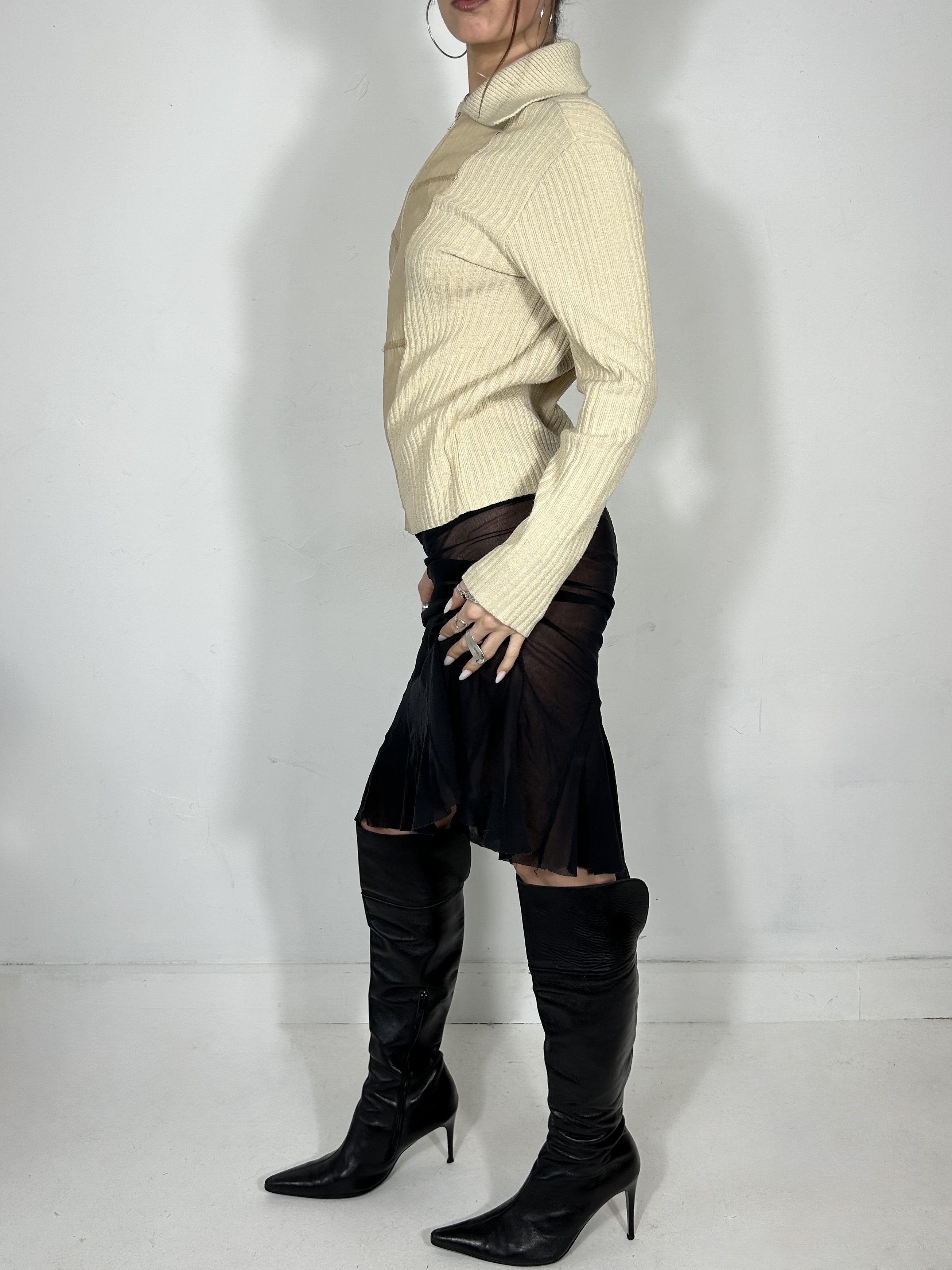 Cream knit zip up ribbed jumper with stitch detailing