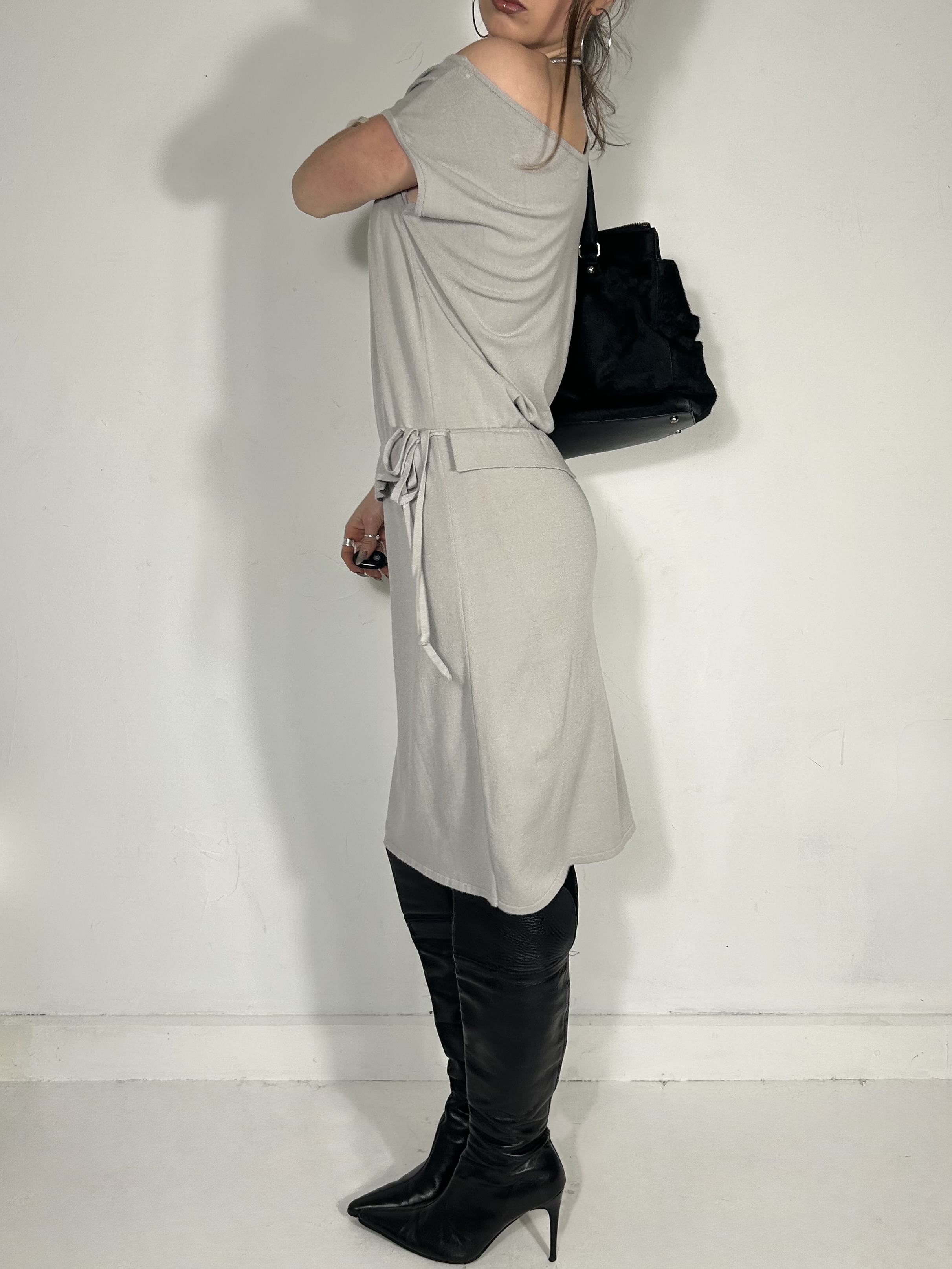Clay tiered Sarah Pacini midi dress with adjustable tie waist