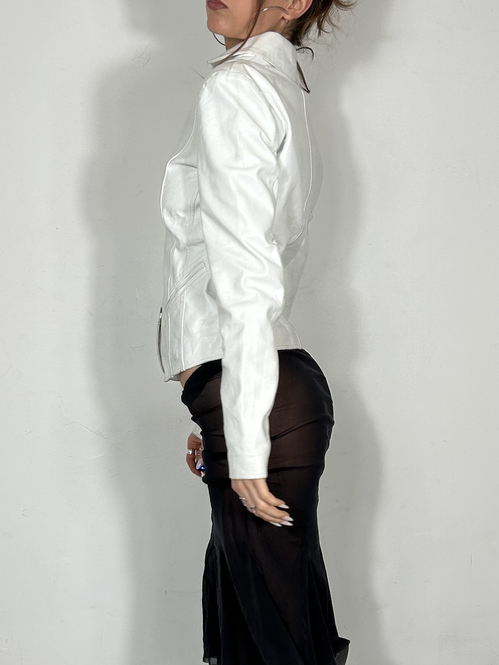 White leather constructed jacket with double zip detailing