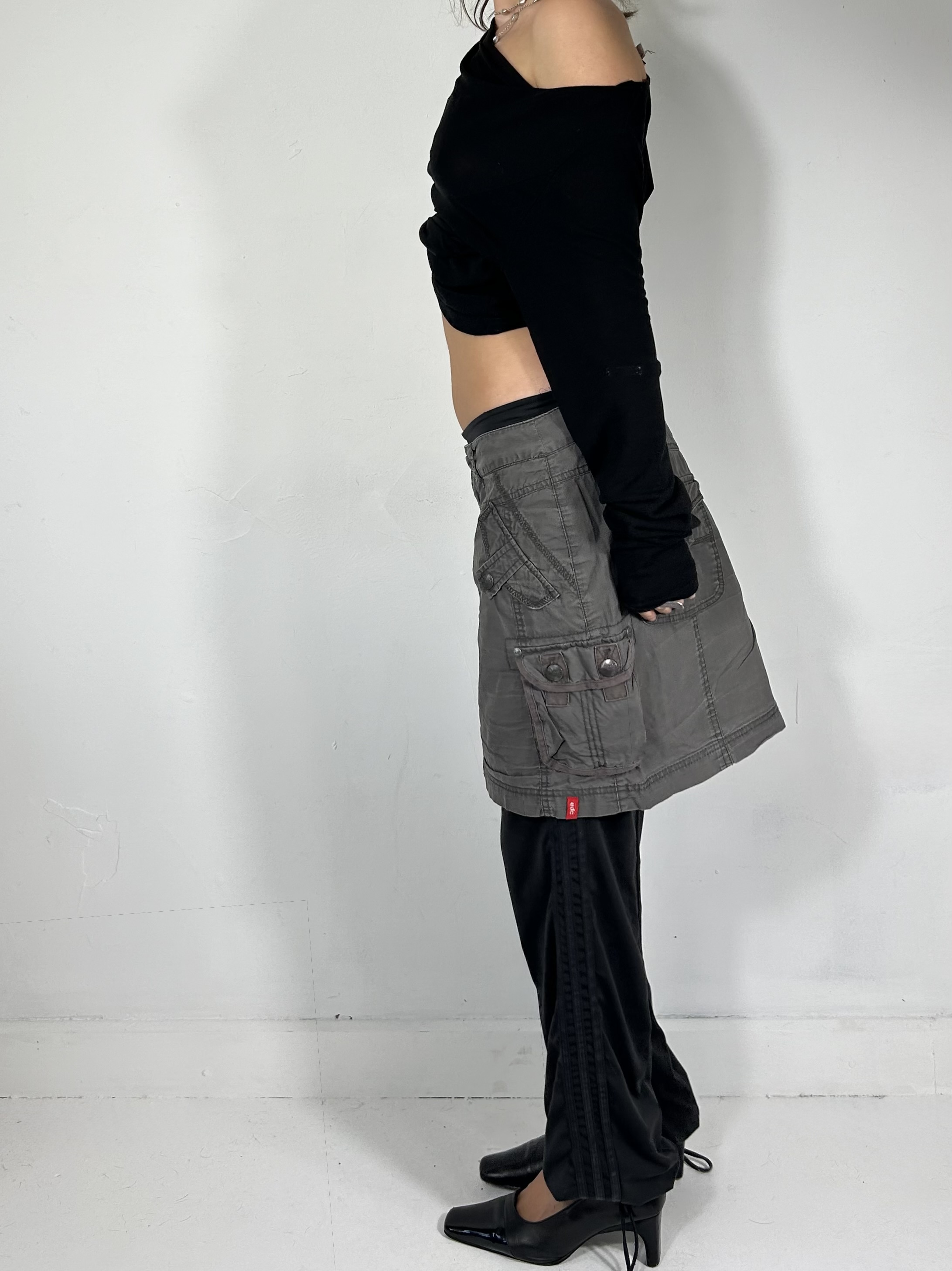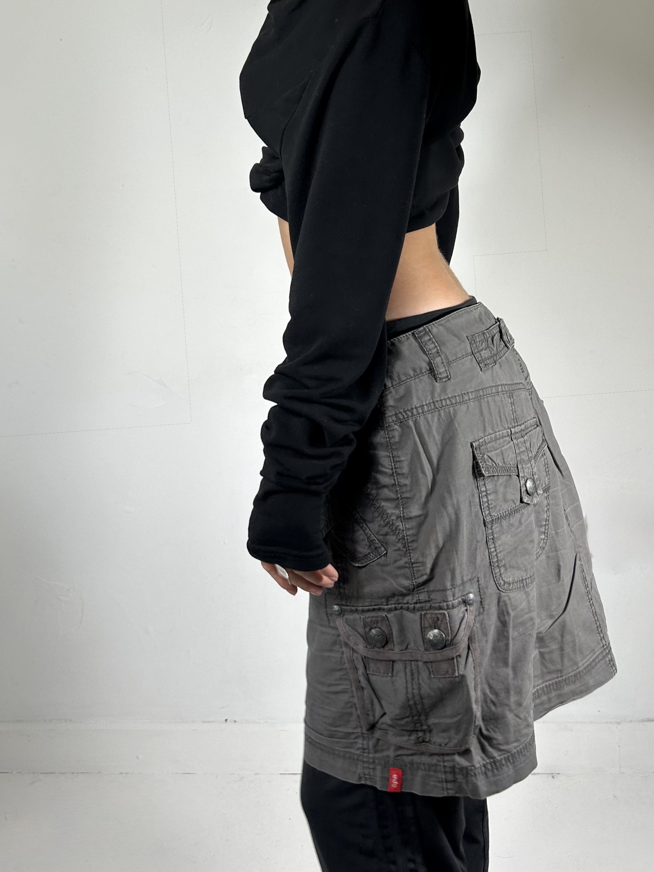 Charcoal grey ESPRIT midi utility skirt with back buckle detailing