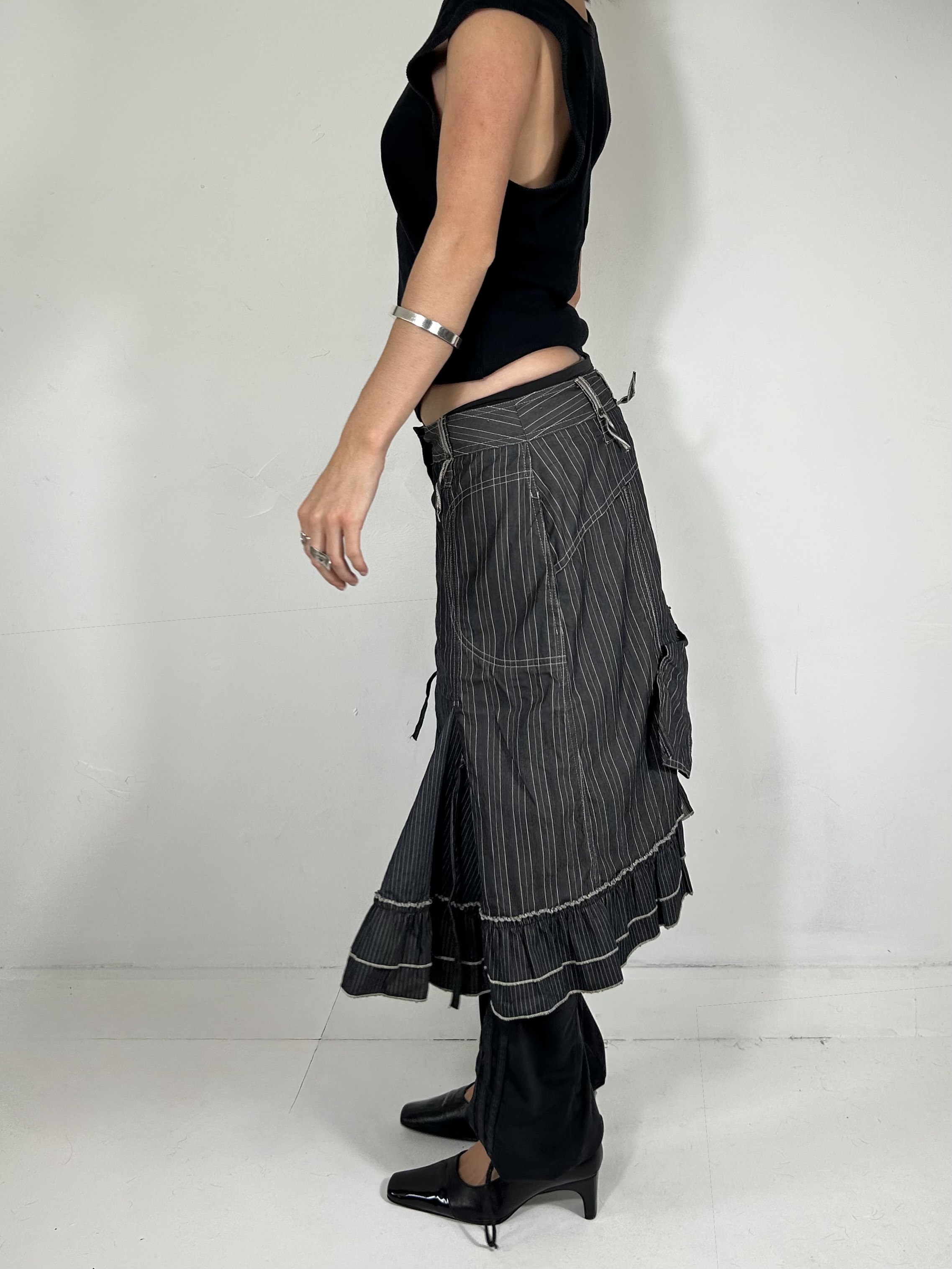 Charcoal grey multi layer midi skirt with bow detailing and adjustable popper back