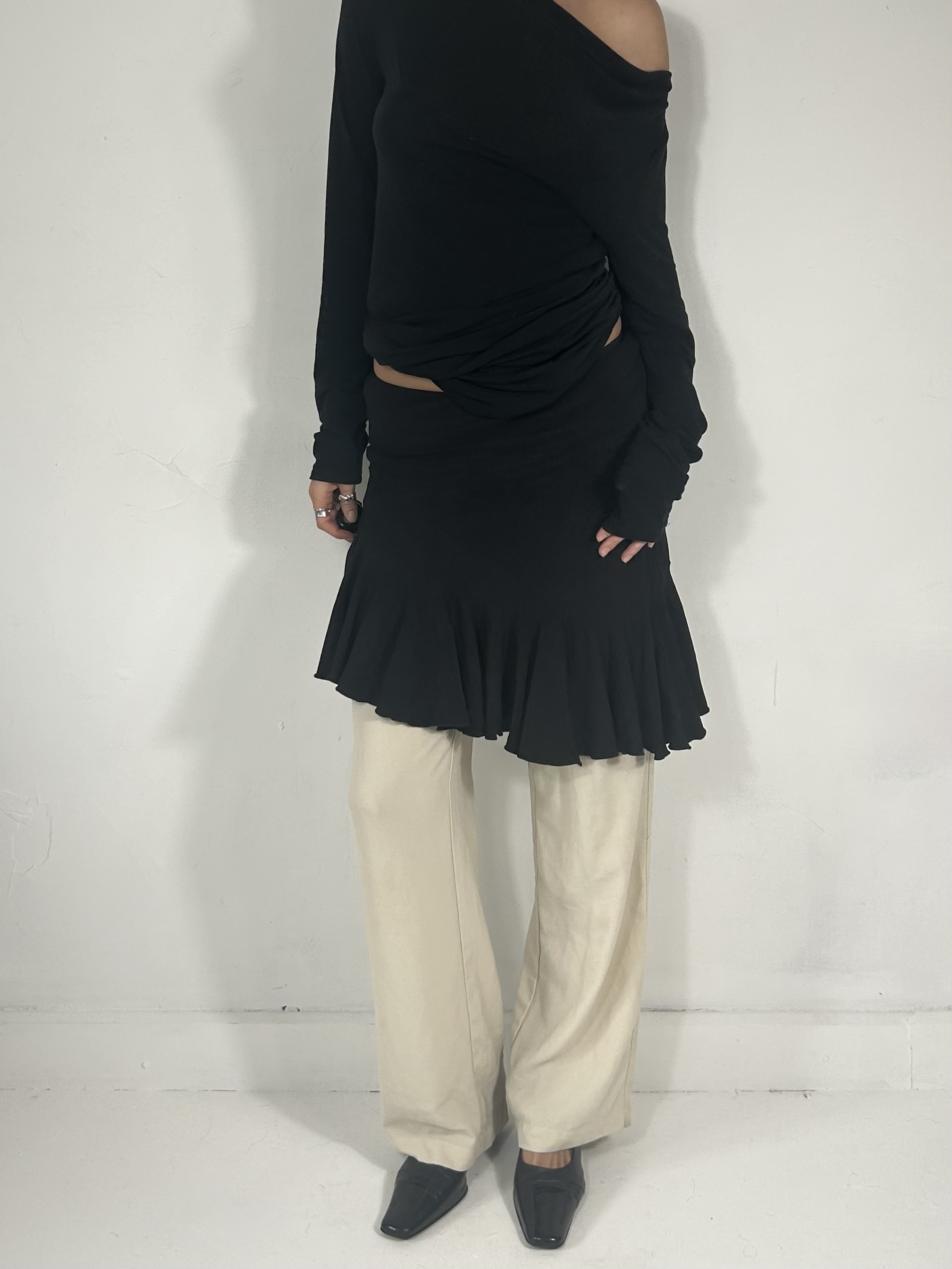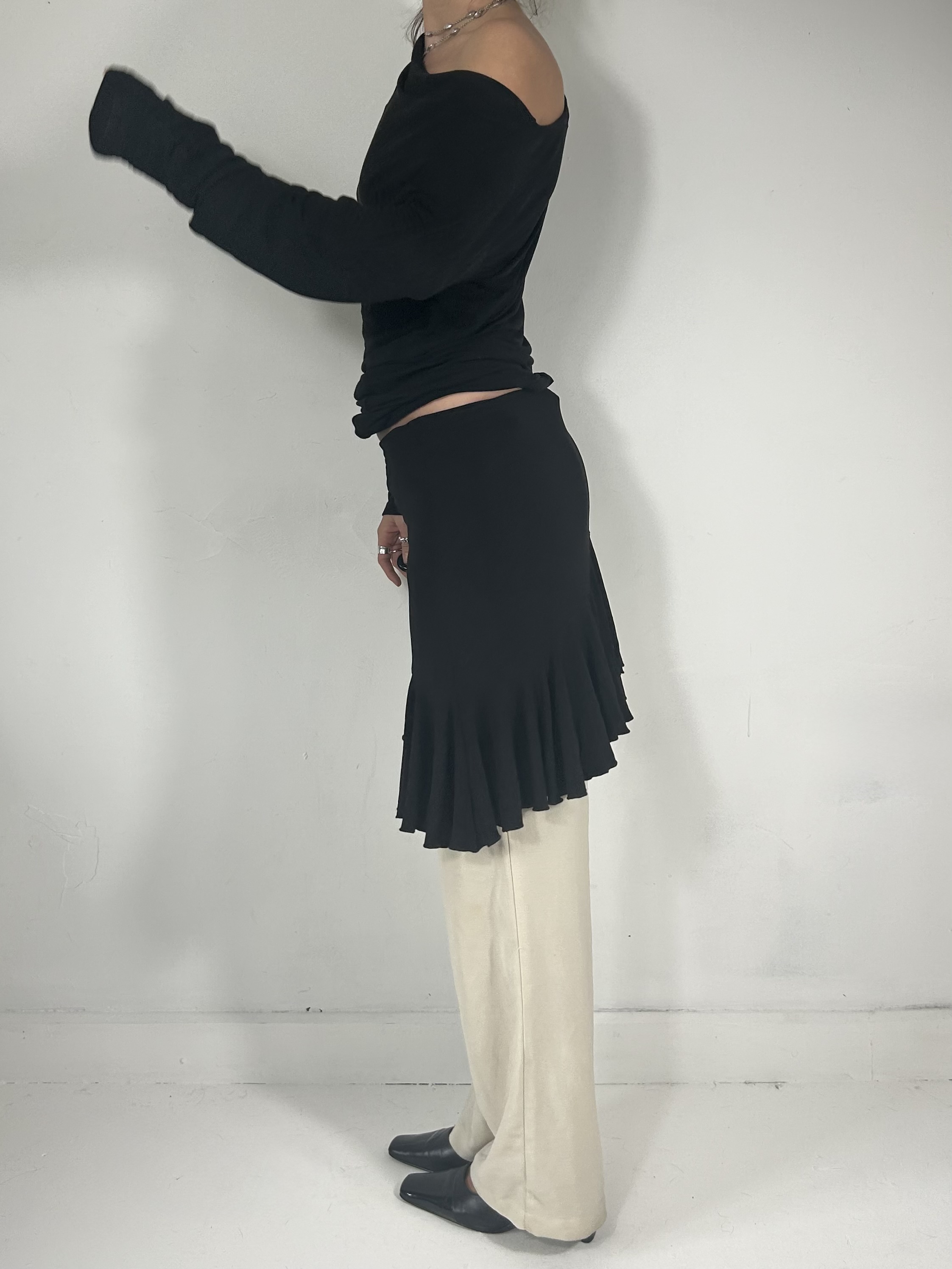 Black asymmetrical pleated mini skirt