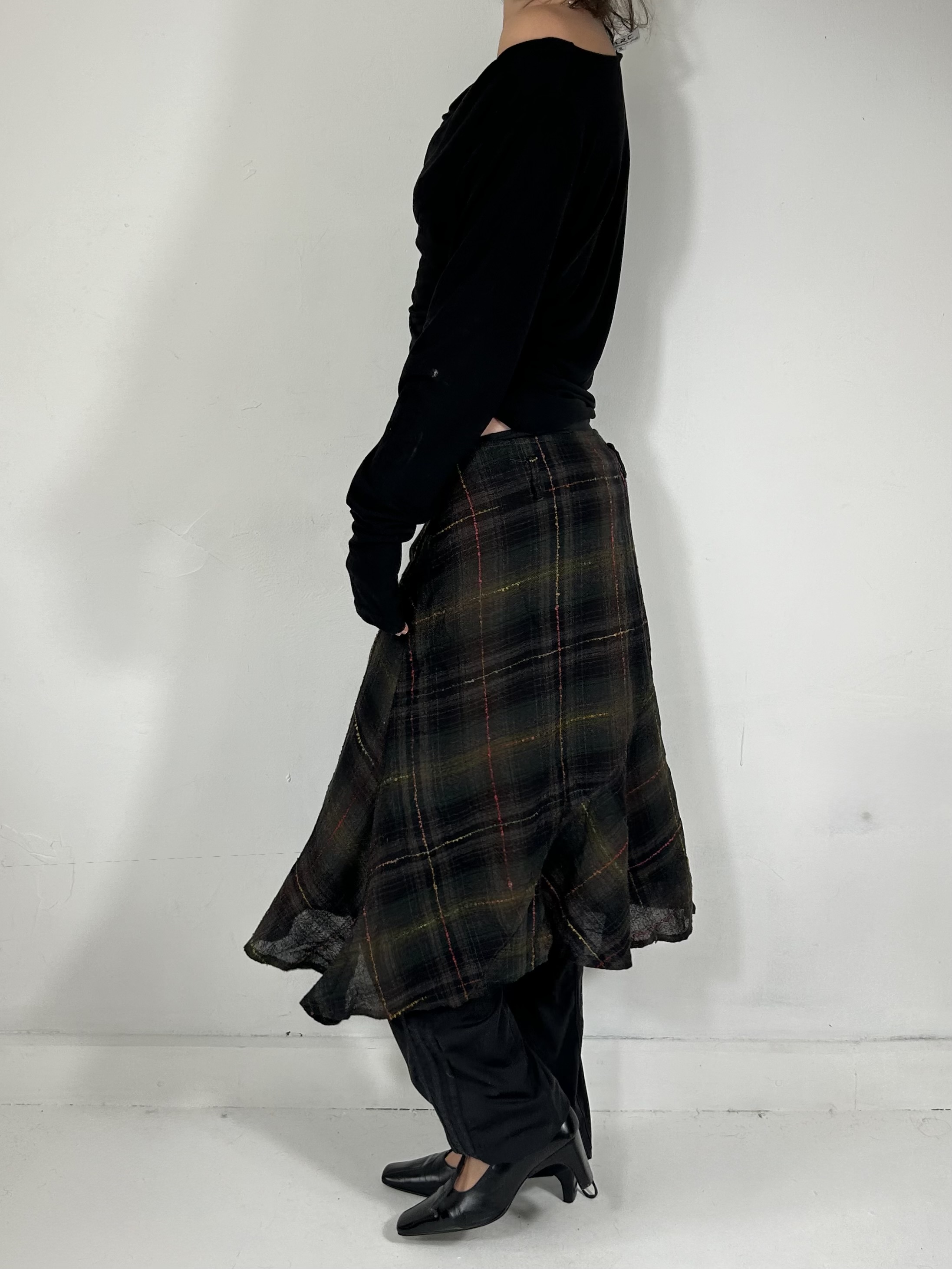 Asymmetrical tartan midi skirt