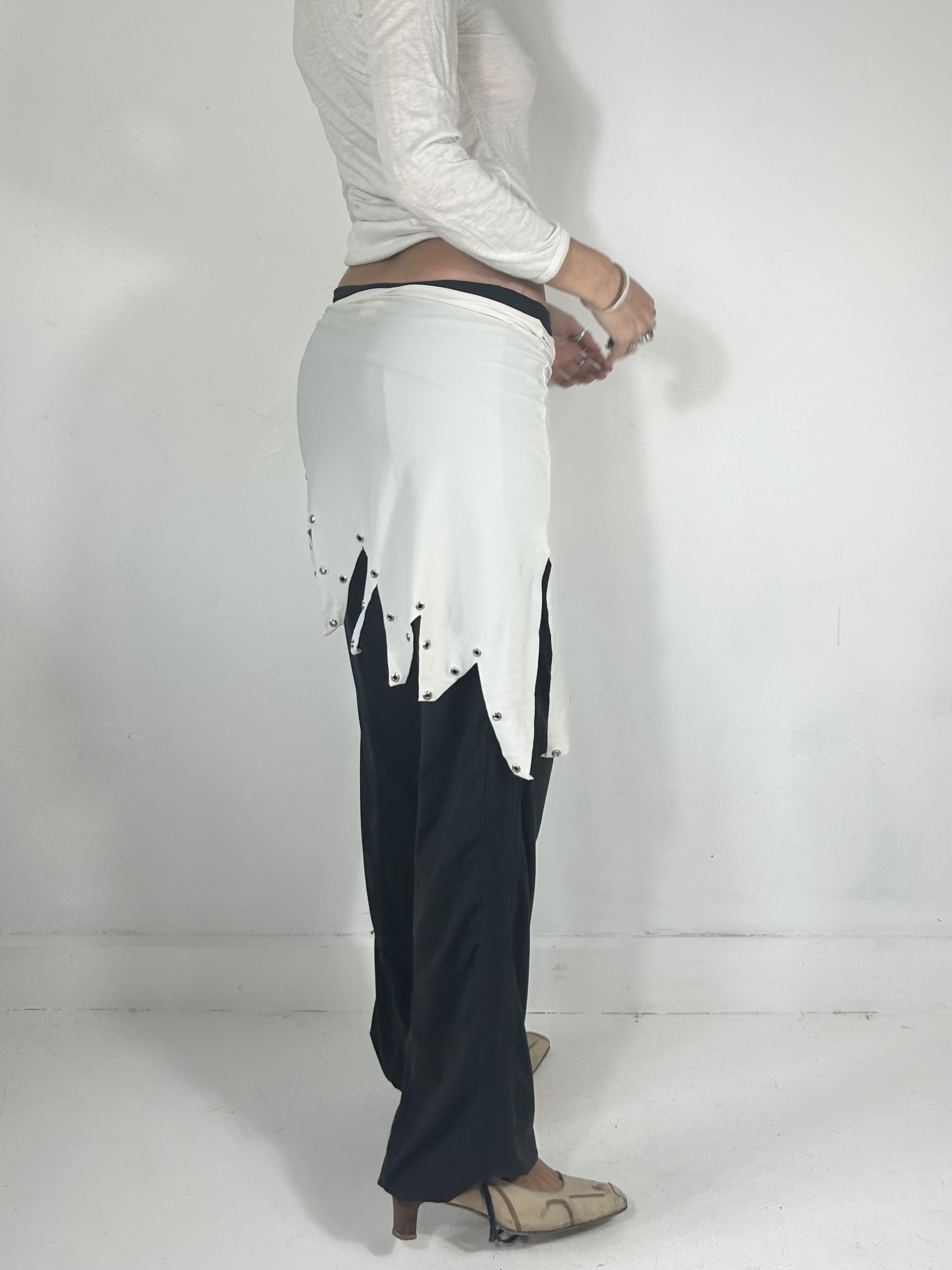 White cutout hem elasticated mini skirt with asymmetrical hem and eyelet detailing