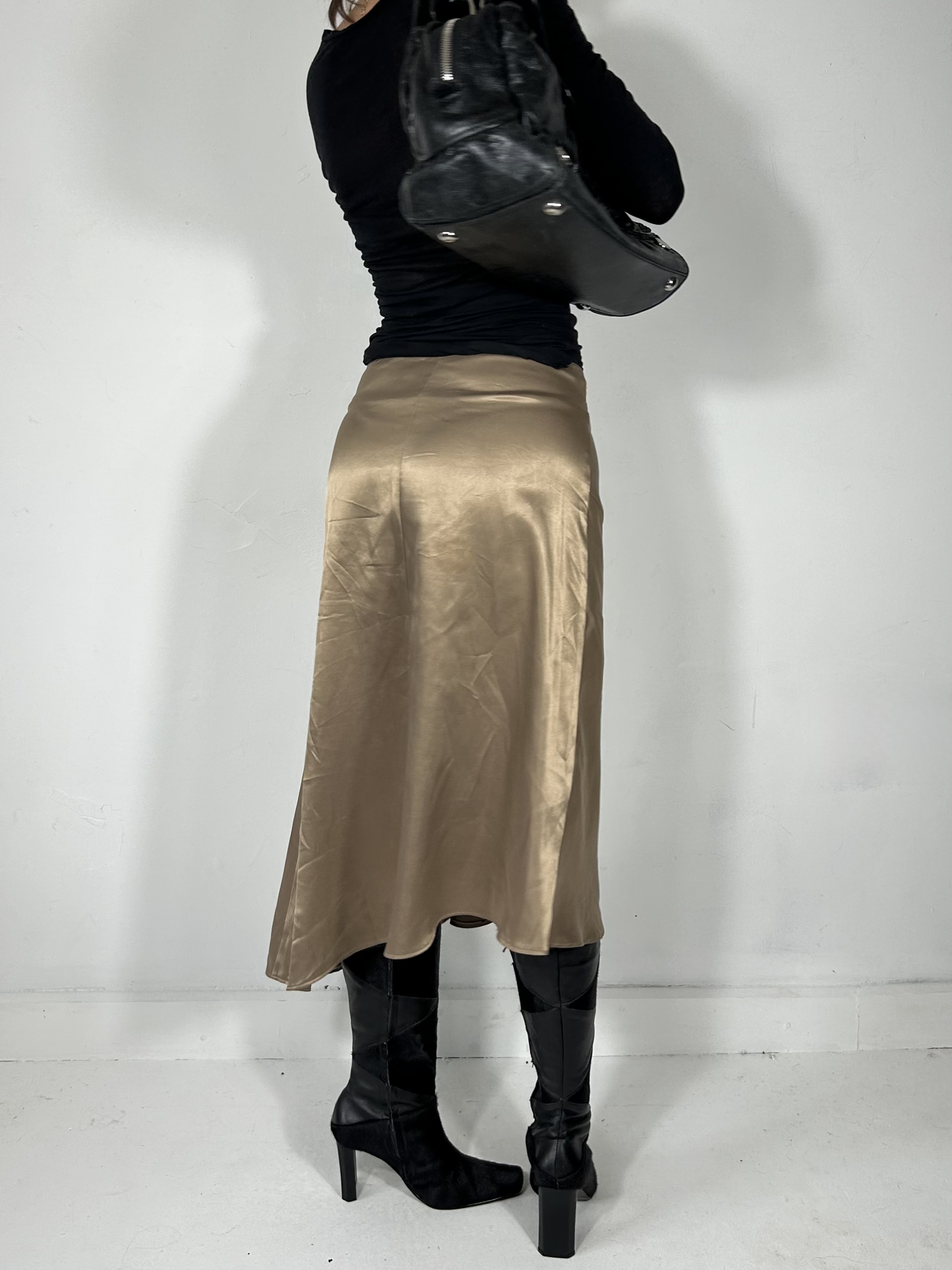 Gold satin asymmetrical midi skirt