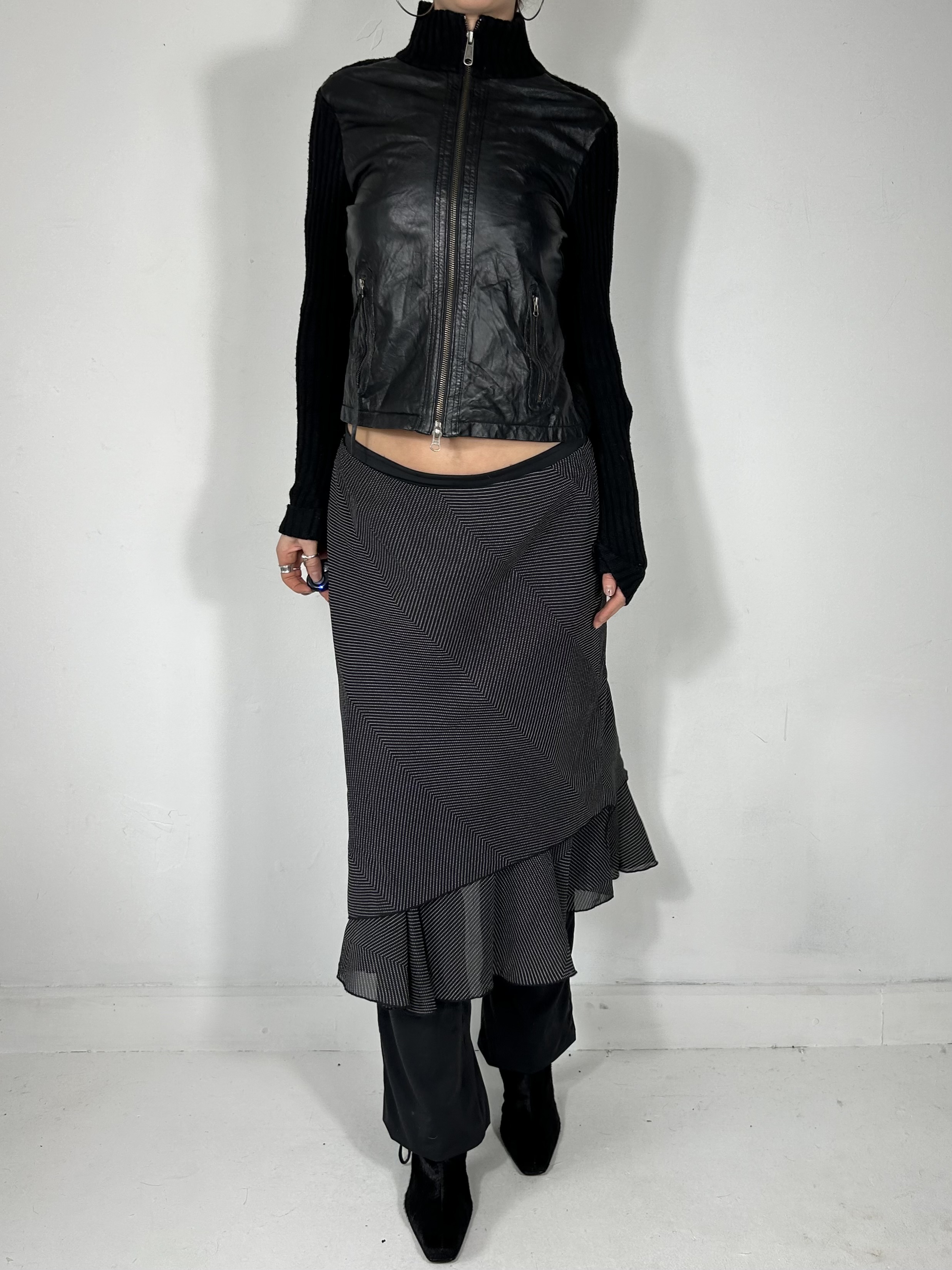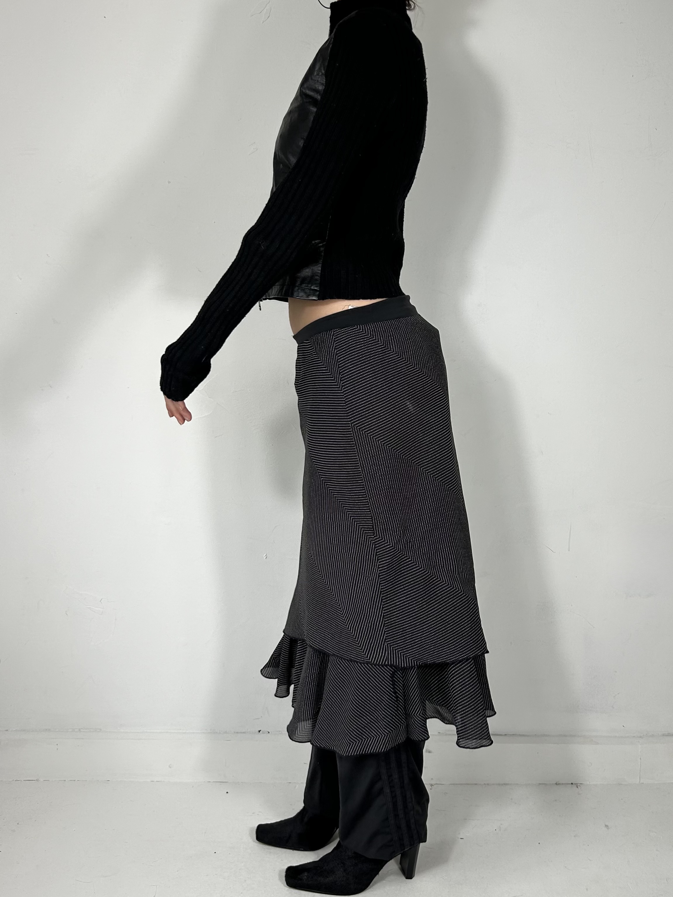 Striped chiffon midi skirt with asymmetrical hem. Size M