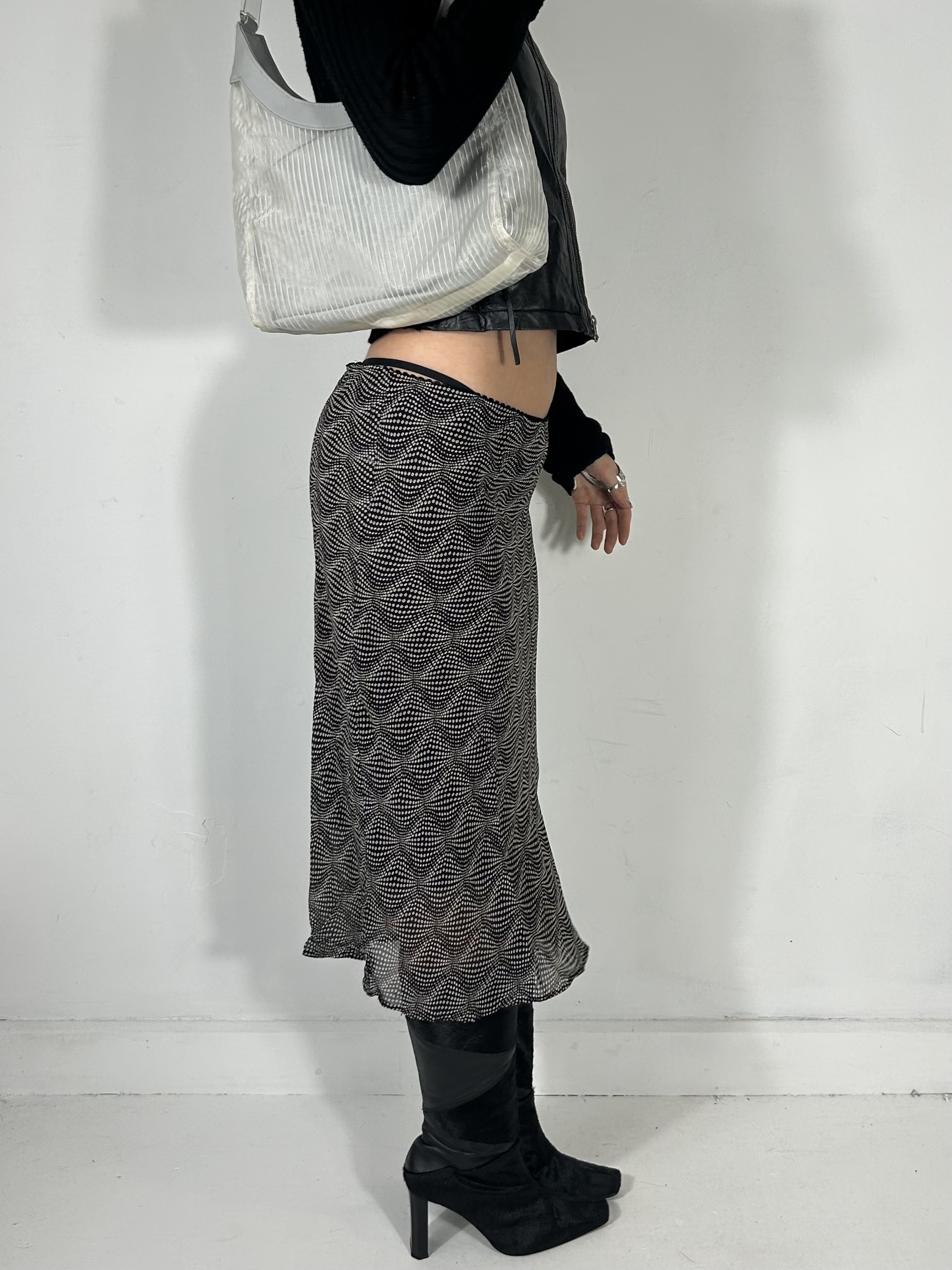 Grey semi sheer geometric midi skirt. Fits uk 10.