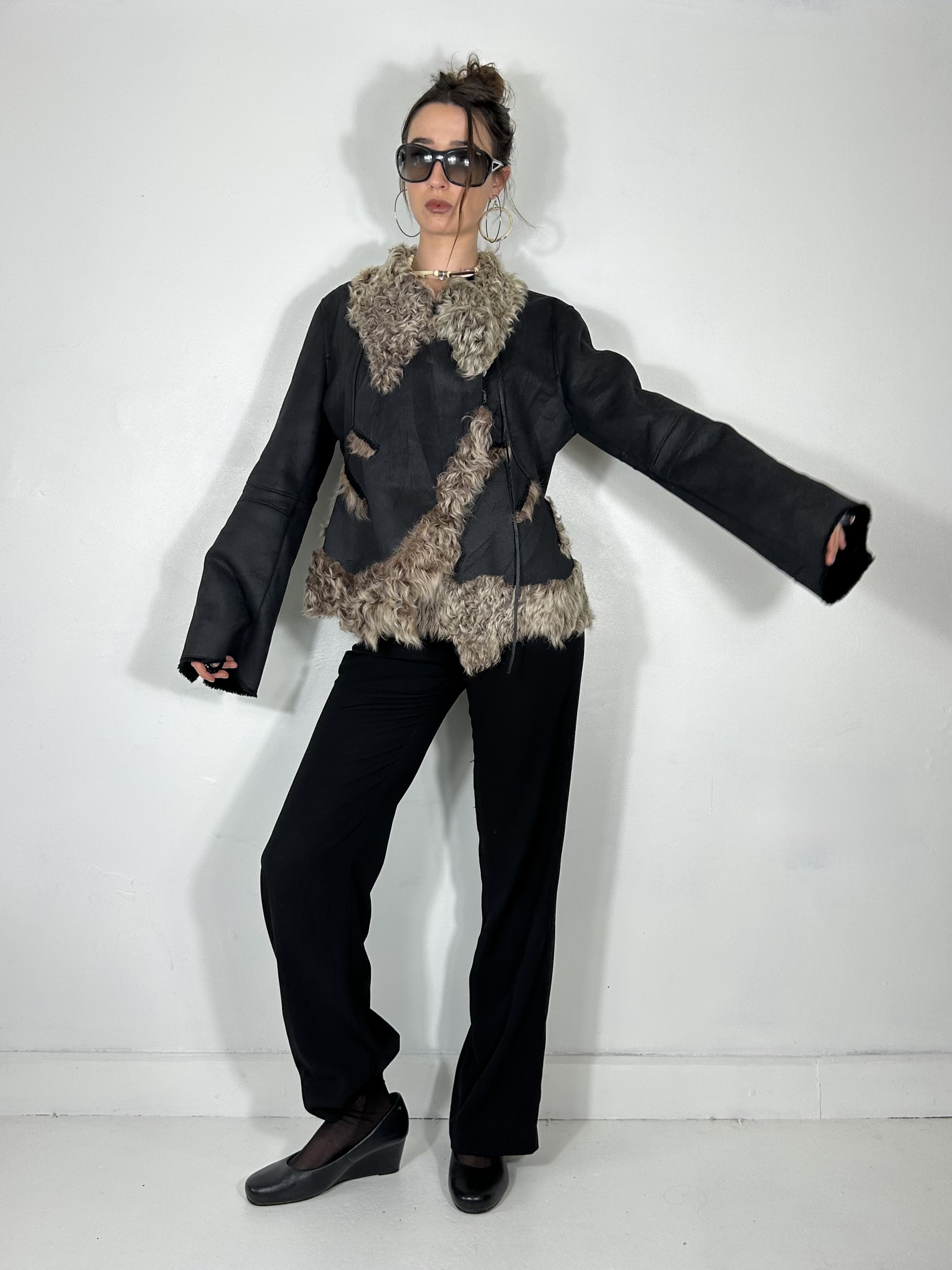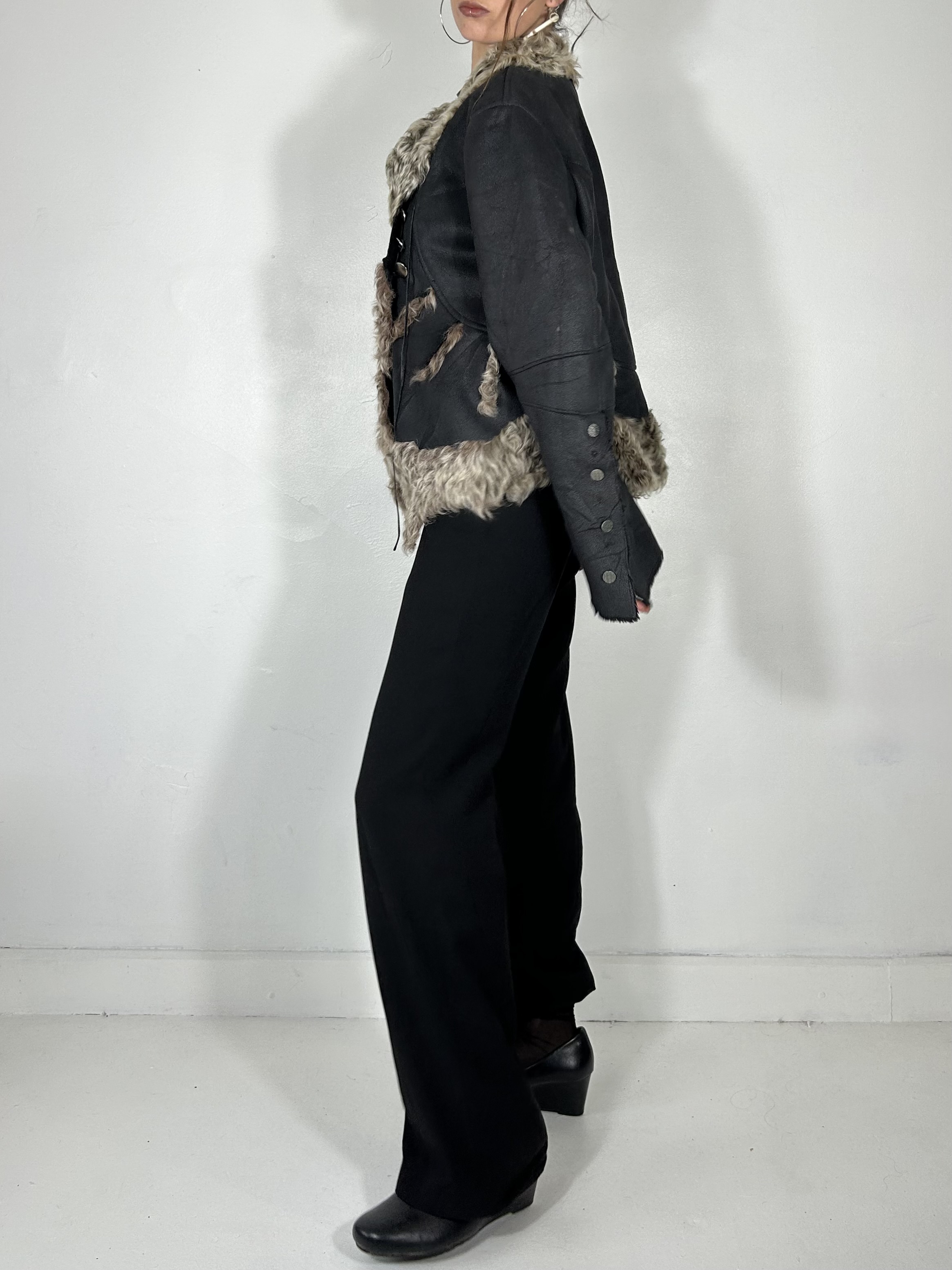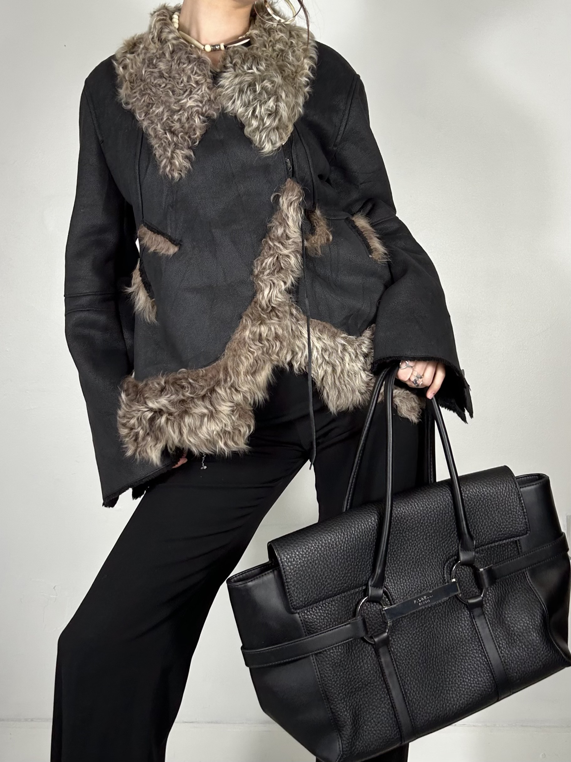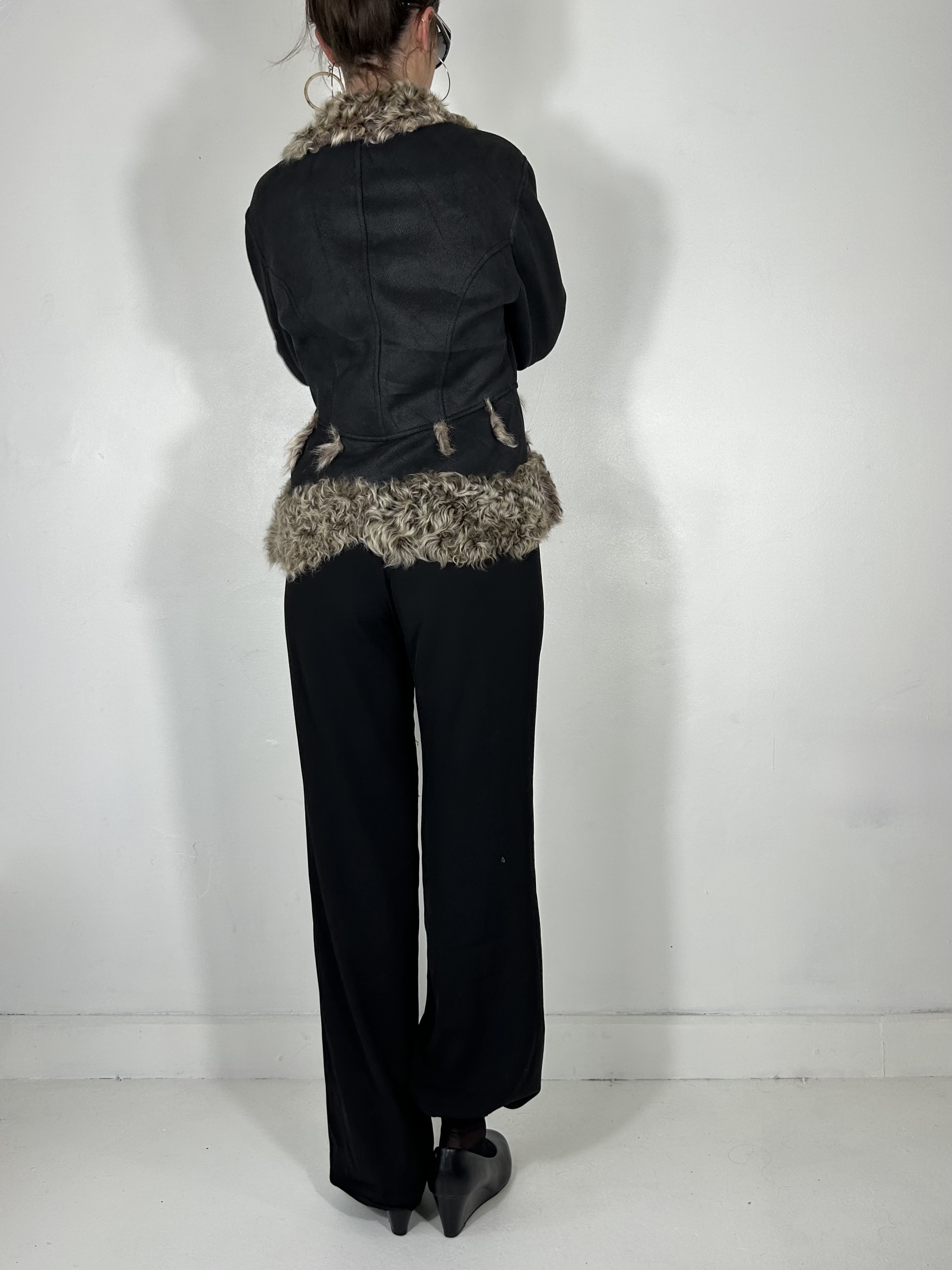 Black asymmetric jacket with fur trim and lining