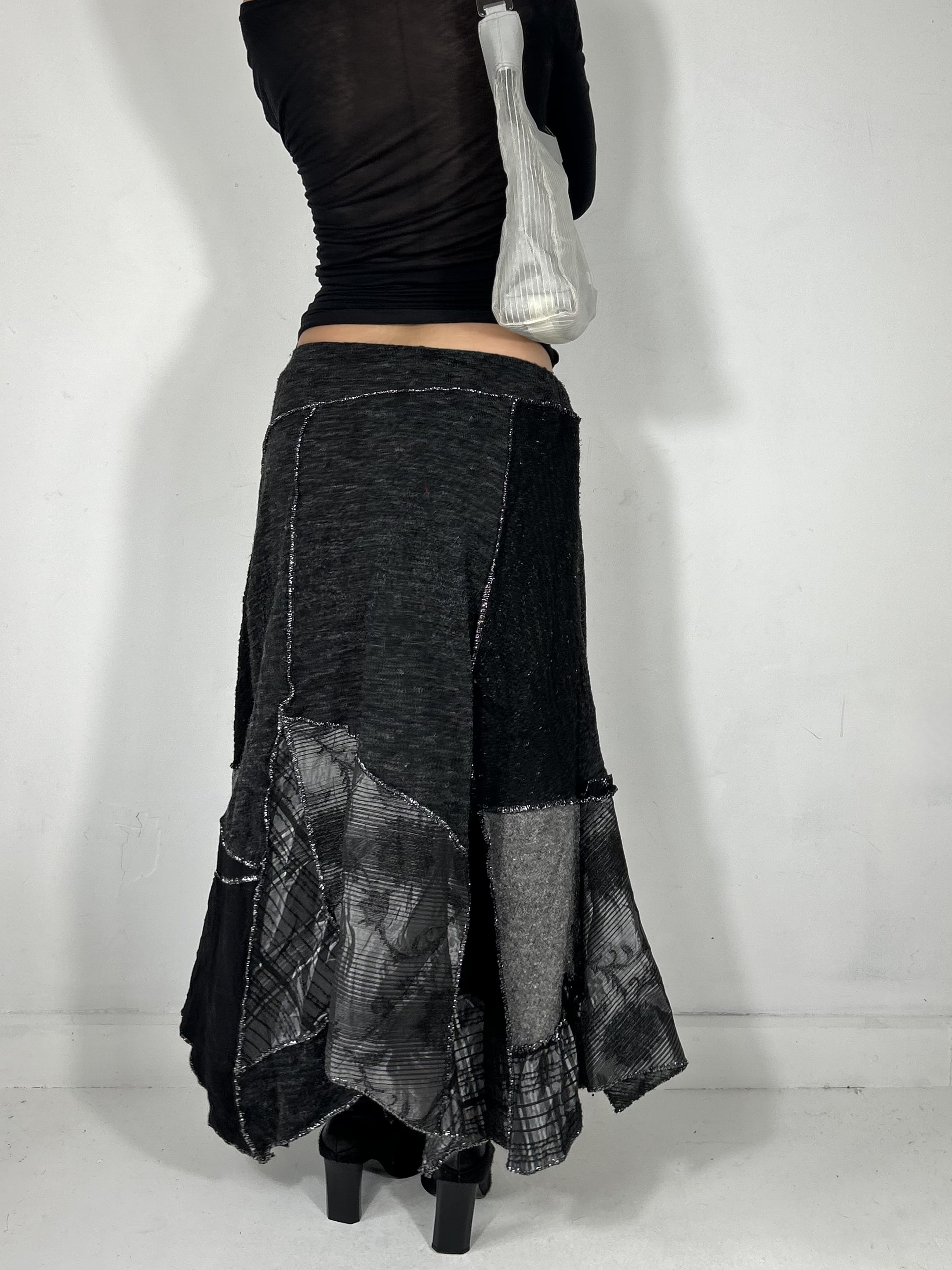 Charcoal grey patchwork maxi skirt with buckle detailing