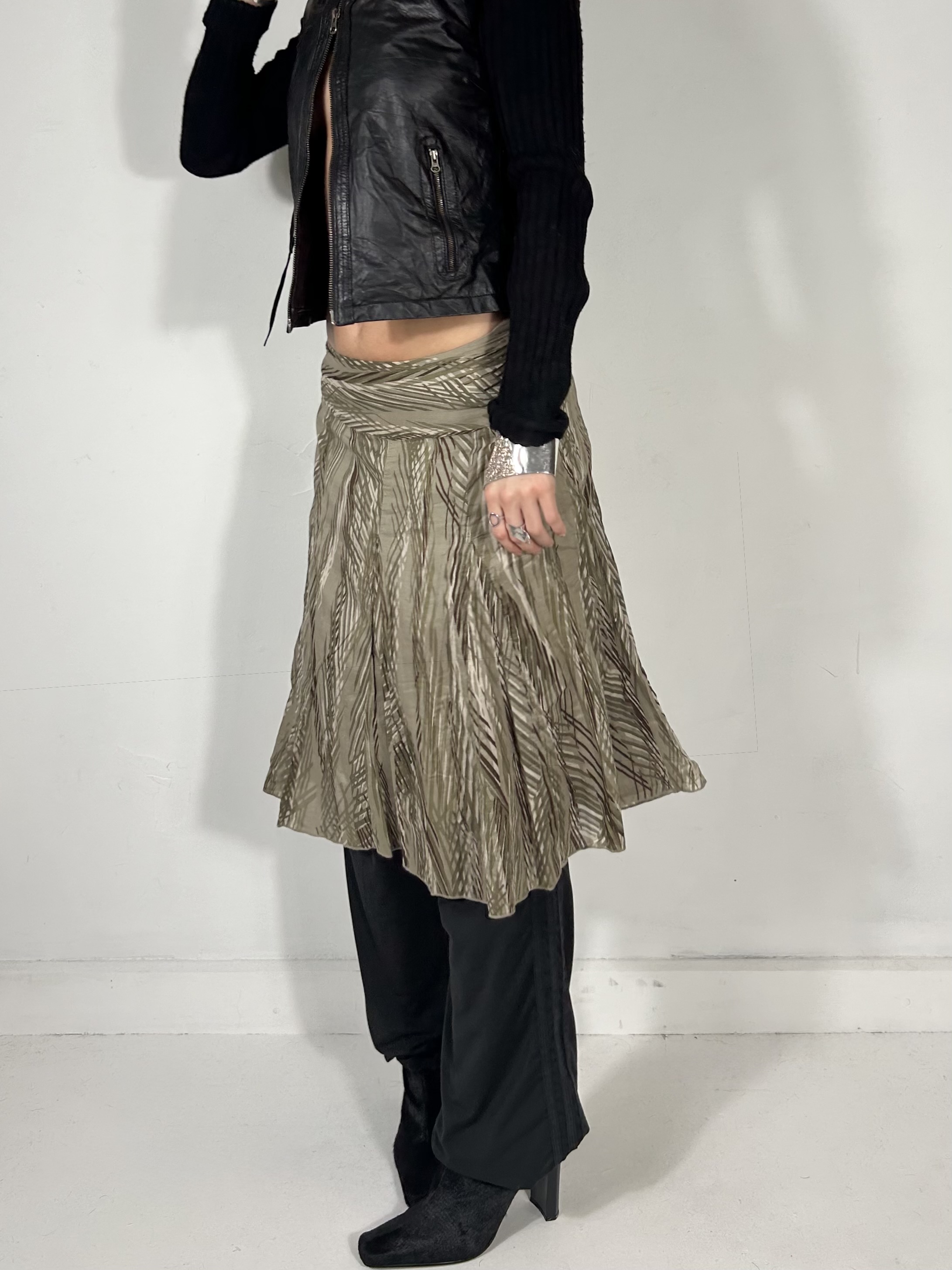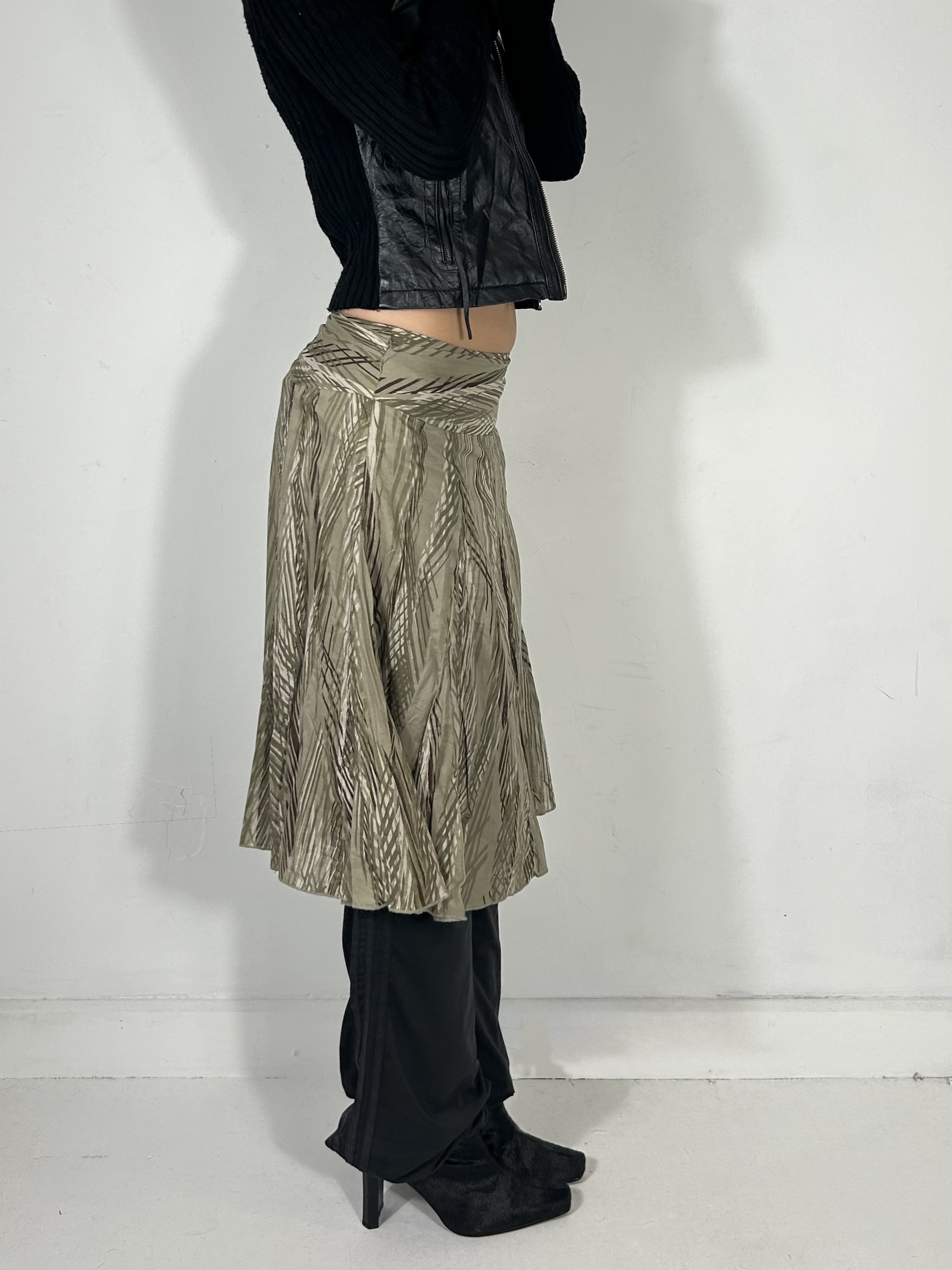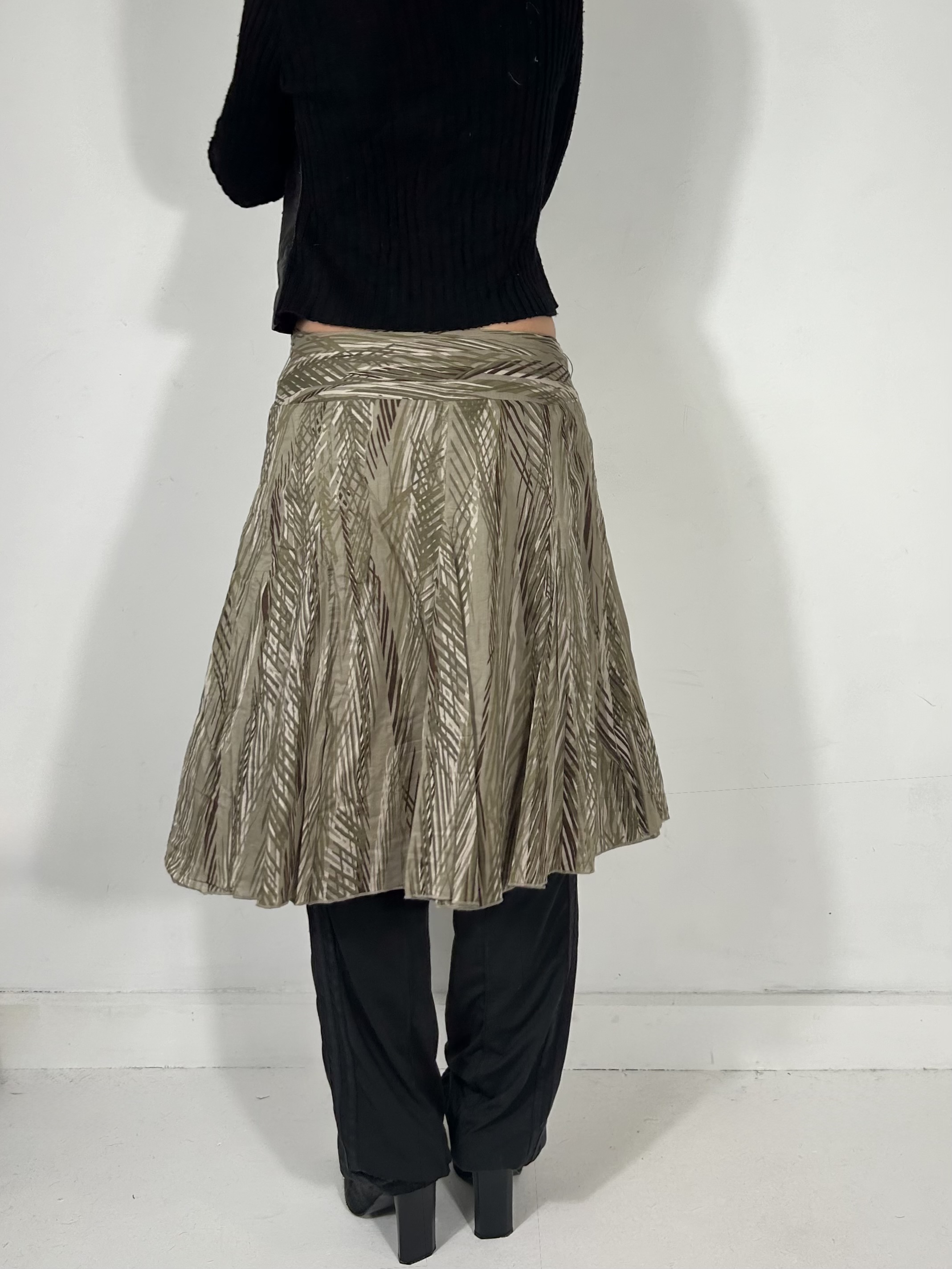 Khaki green jungle drop waist midi skirt