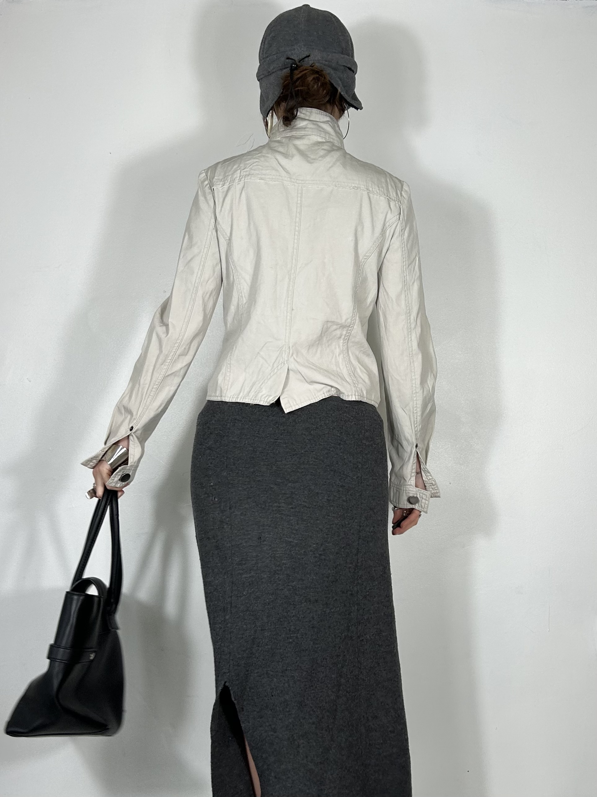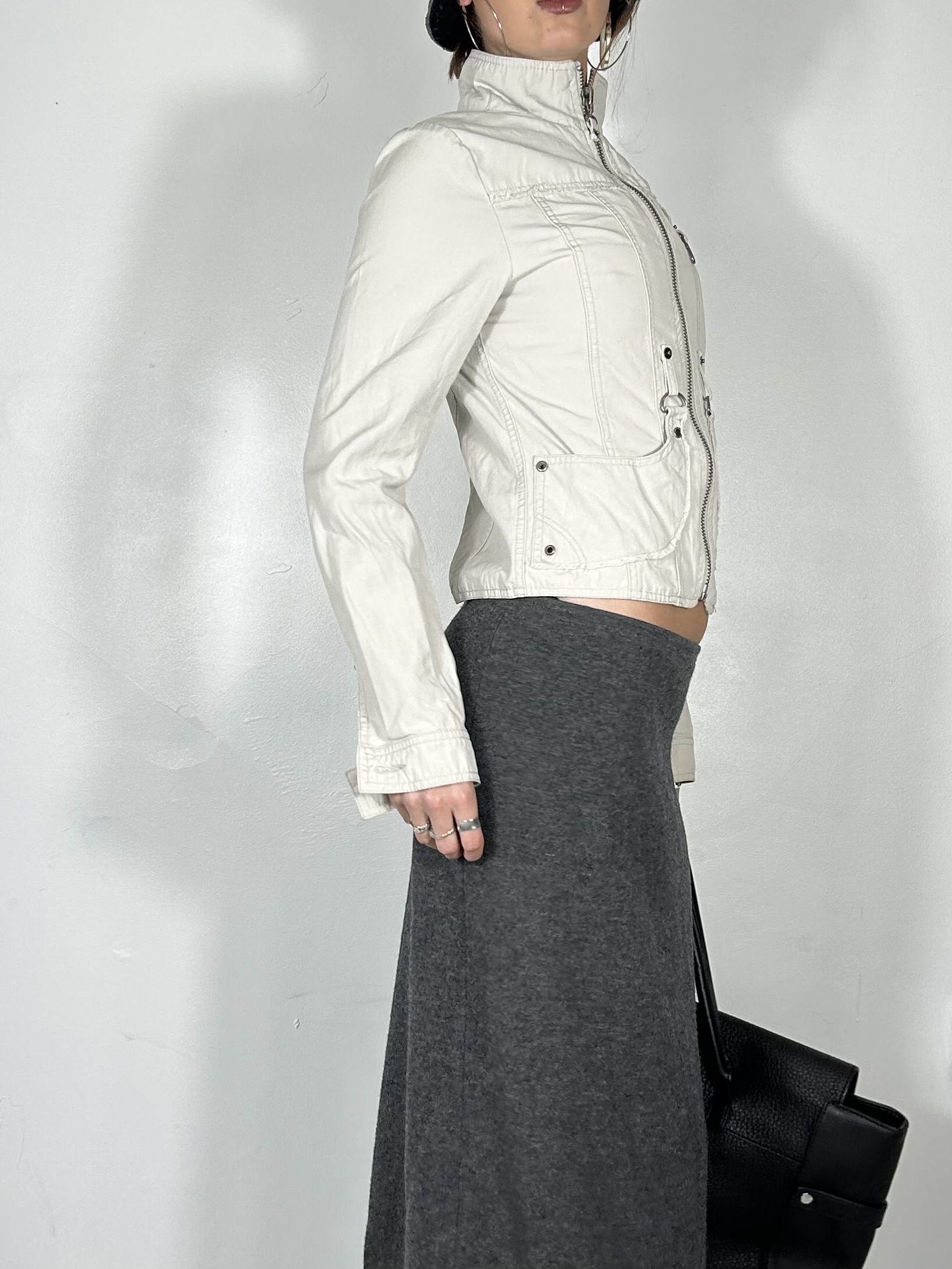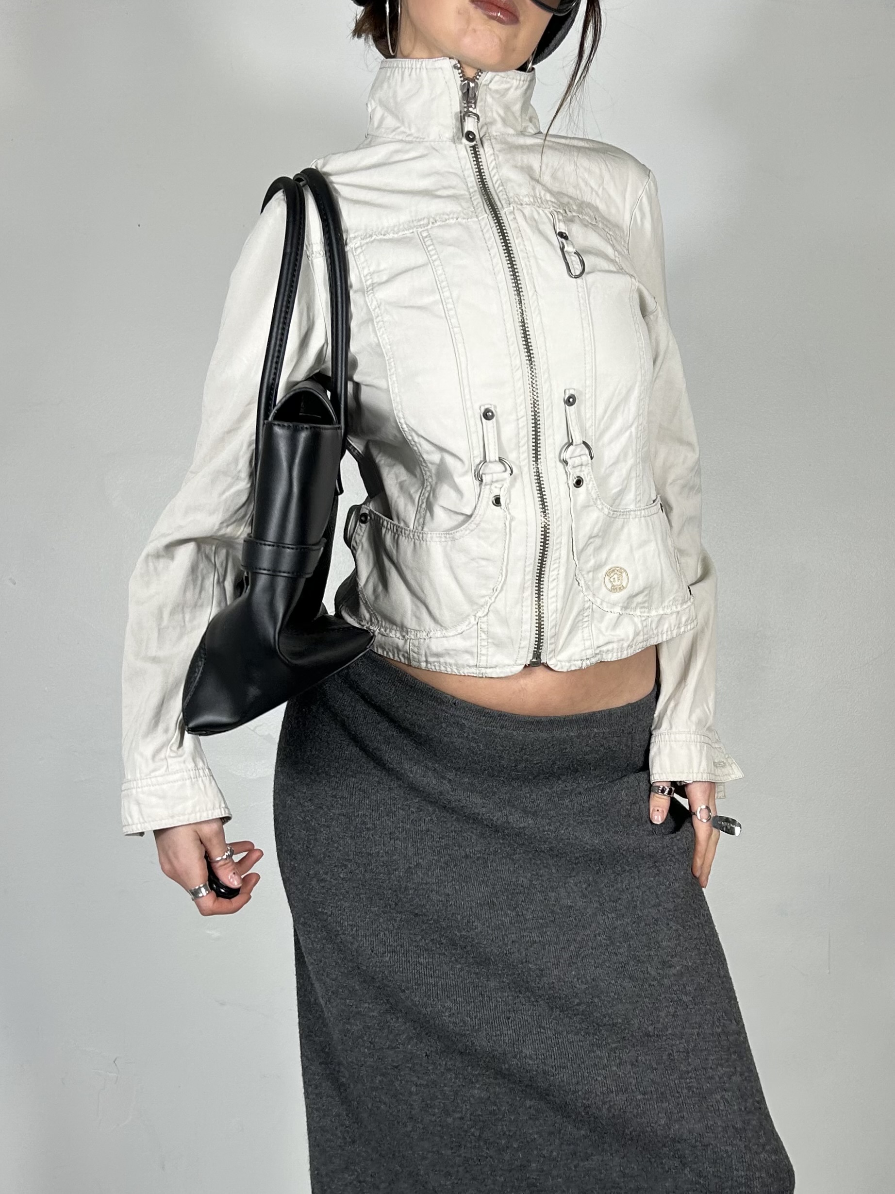 Cream canvas utility zip up jacket