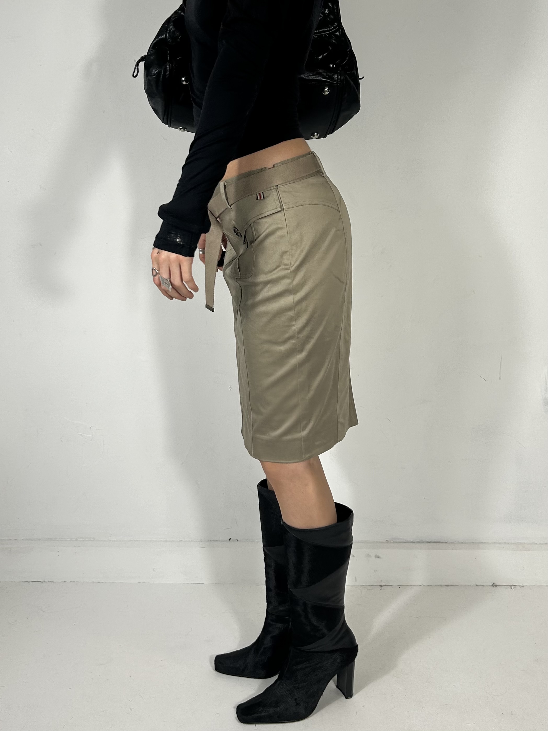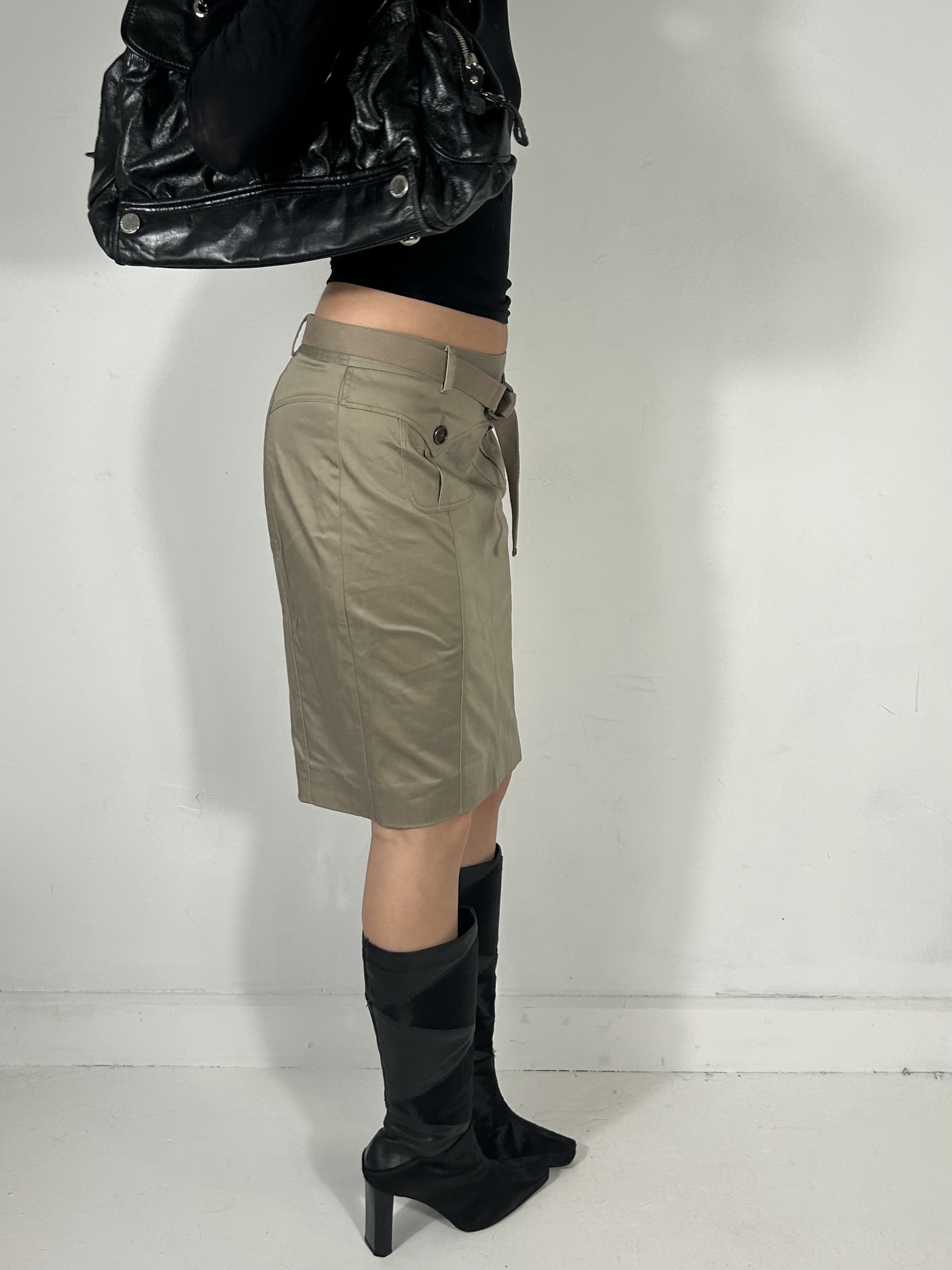 Tan Burberry utility mini skirt with belt and pocket detailing