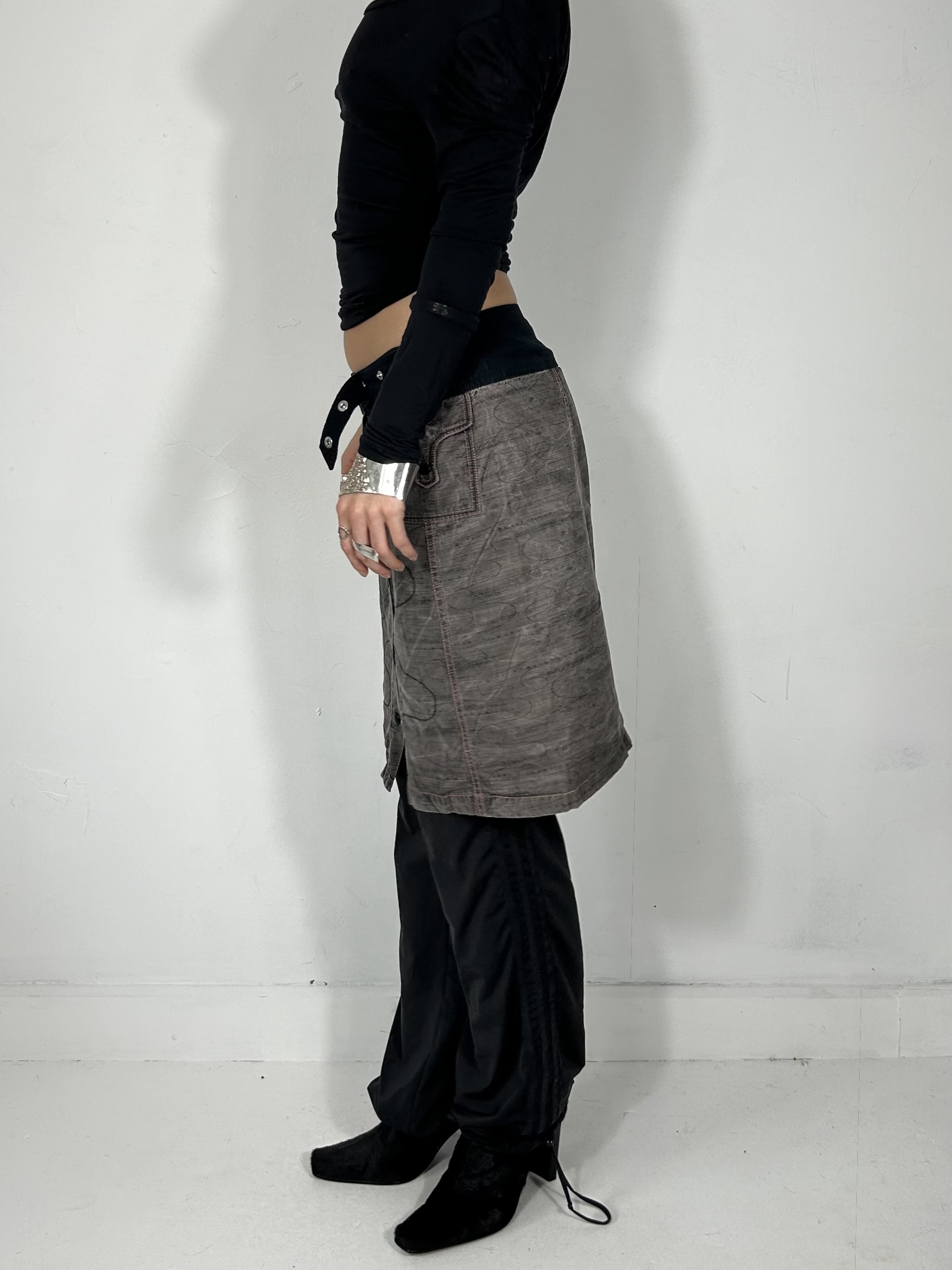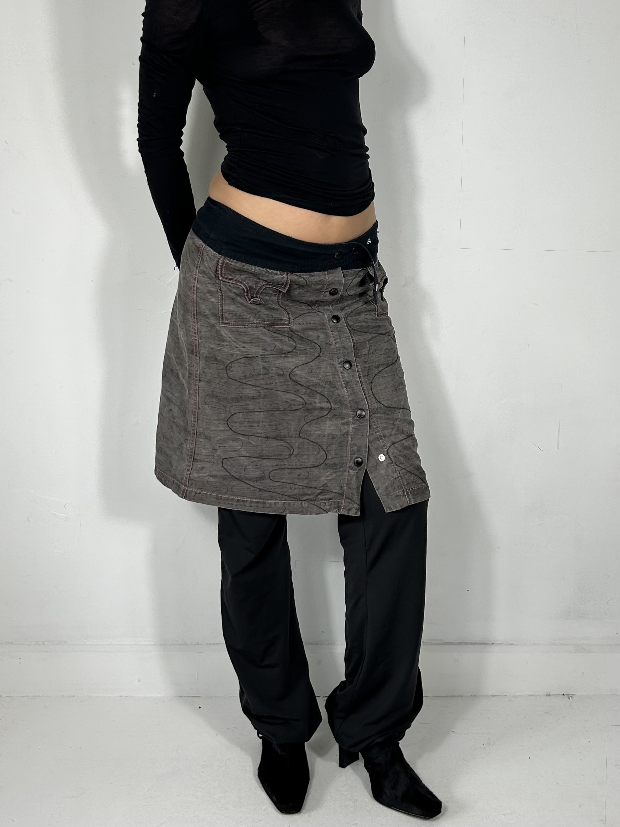 Charcoal grey mini utility skirt with popper detailing