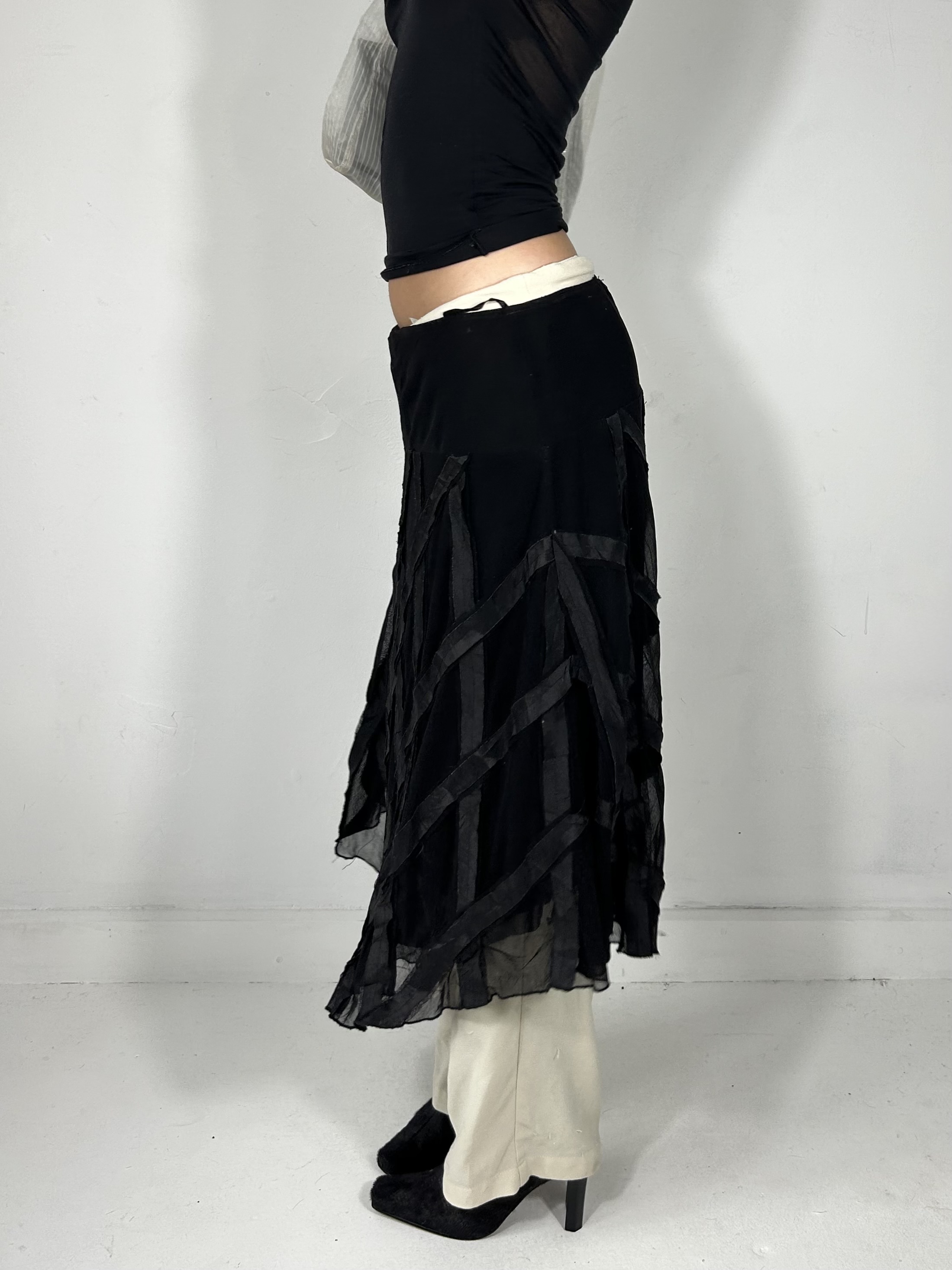 Black mixed texture checkered midi skirt with faux leather detailing. Best fit uk 8/10