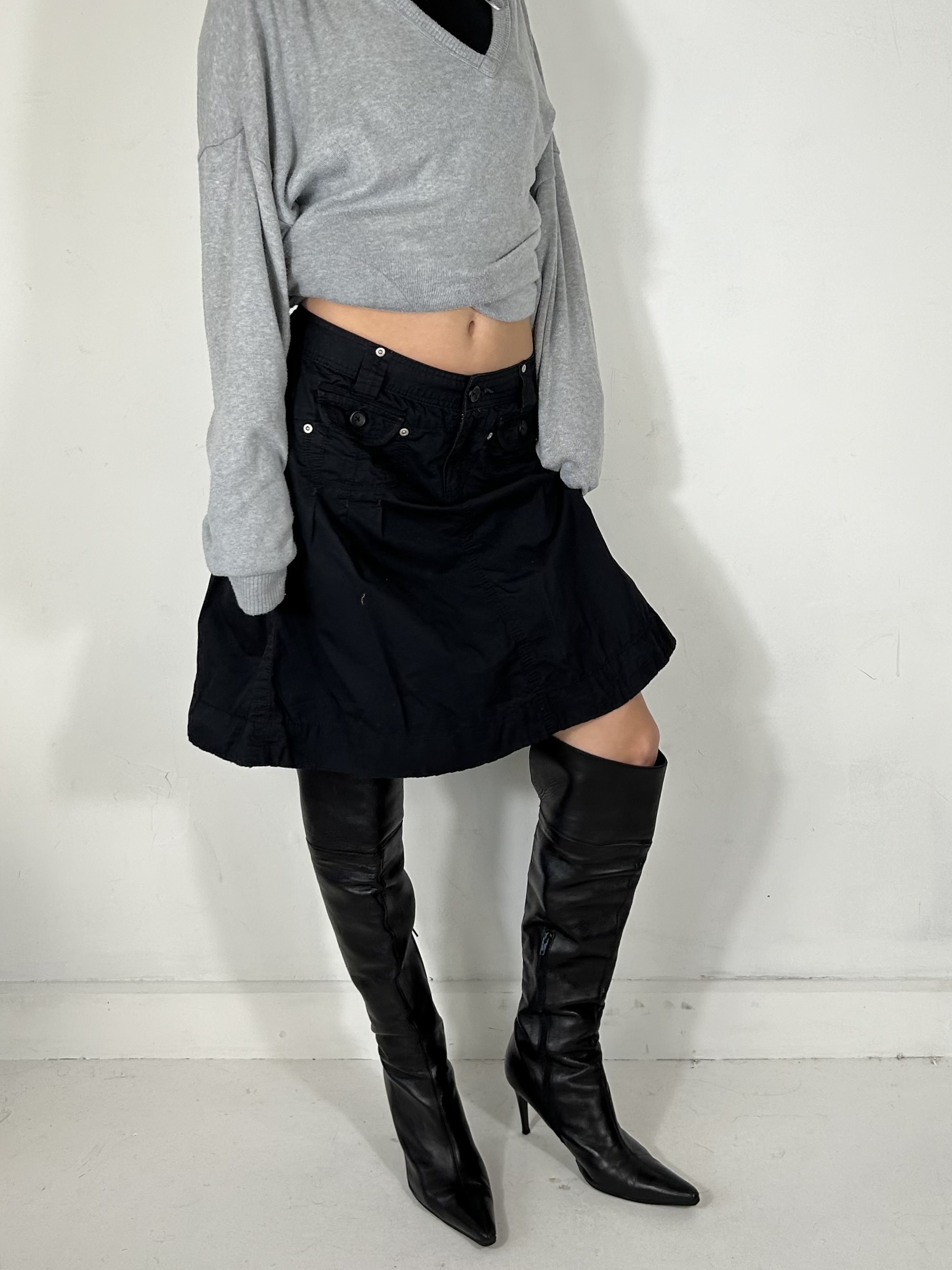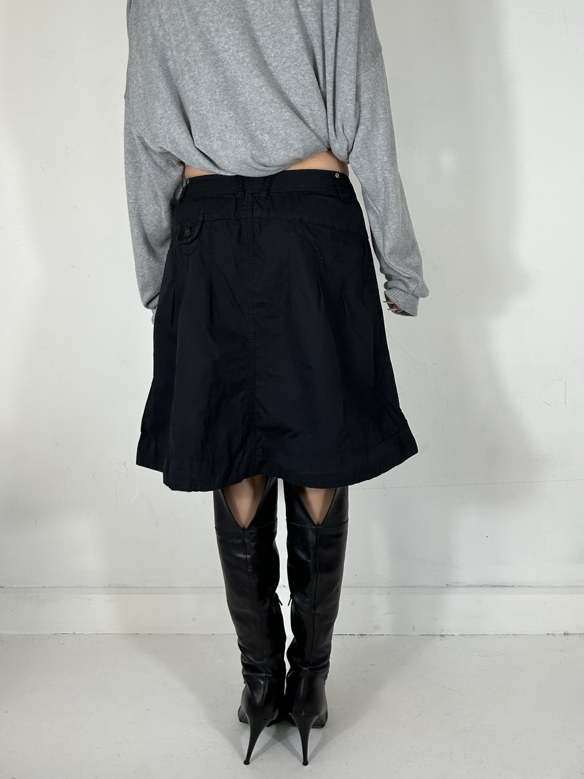 Midnight blue utility midi skirt with pocket detailing. Waist 30 inch.