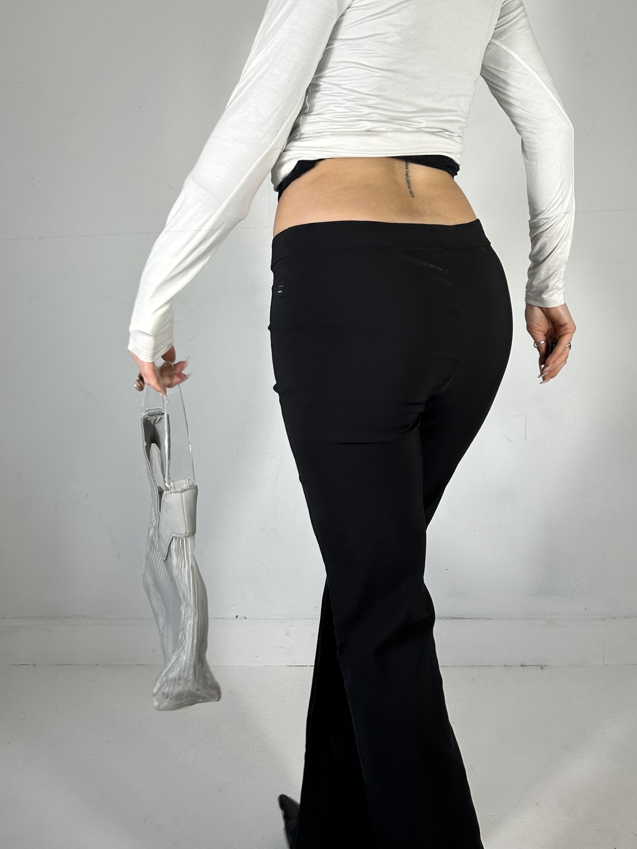 Black slim fit low rise trousers with asymmetric sash waist detailing. Waist 30.
