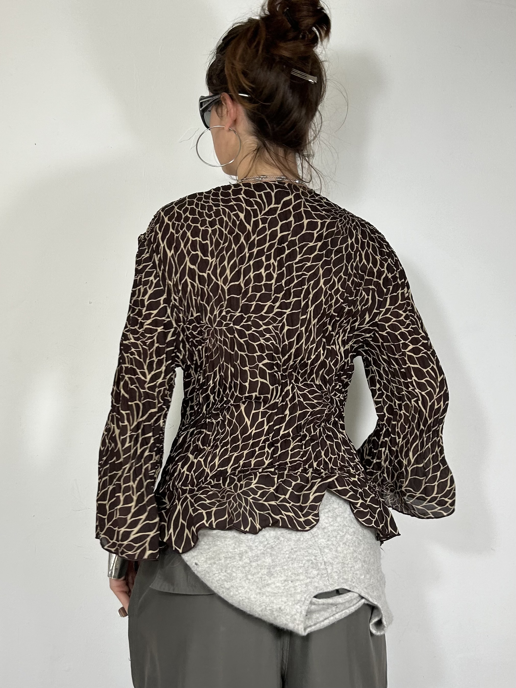 Brown chiffon animal print button up blouse