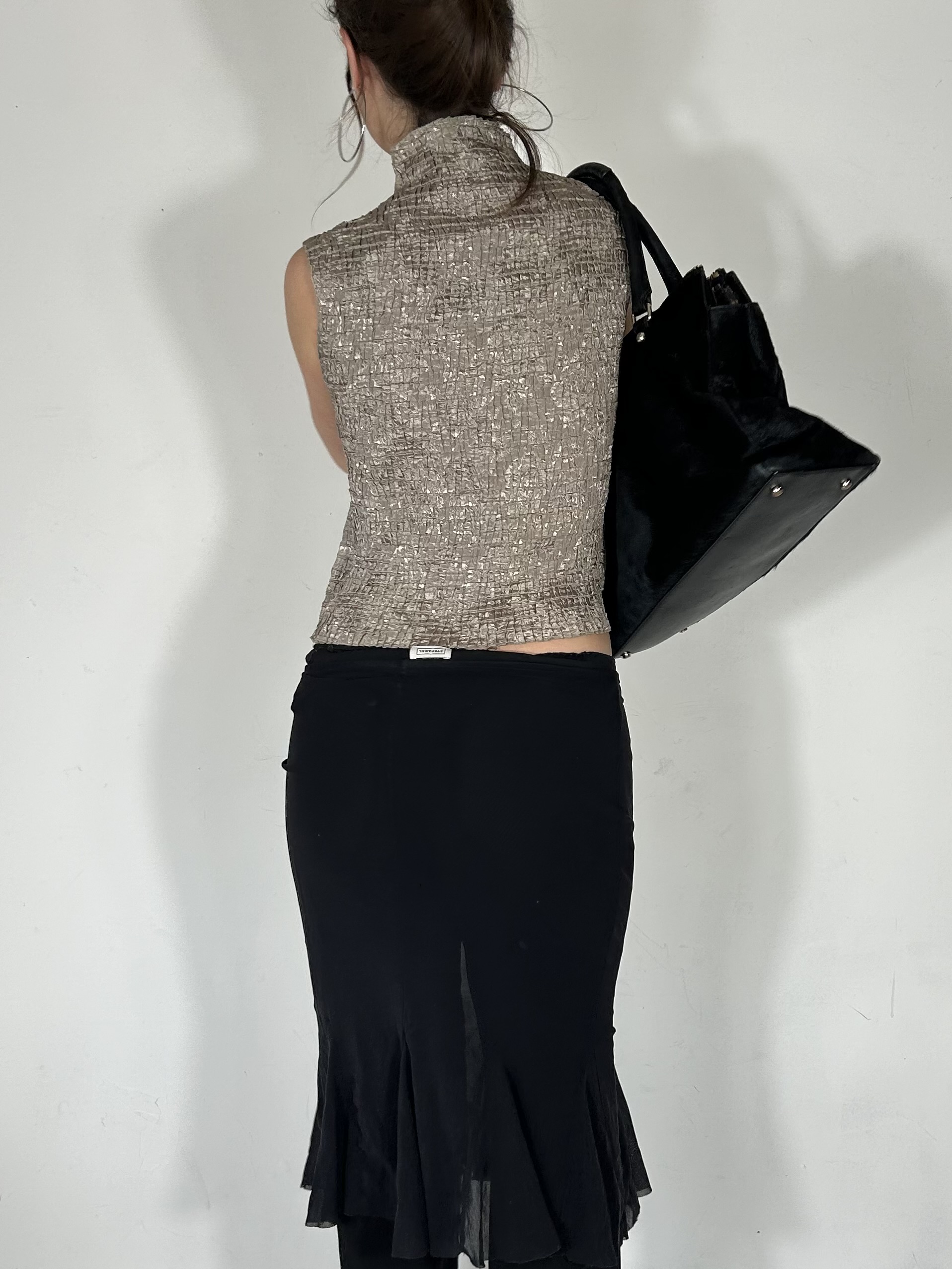 Silver metallic pleated cami with high neckline