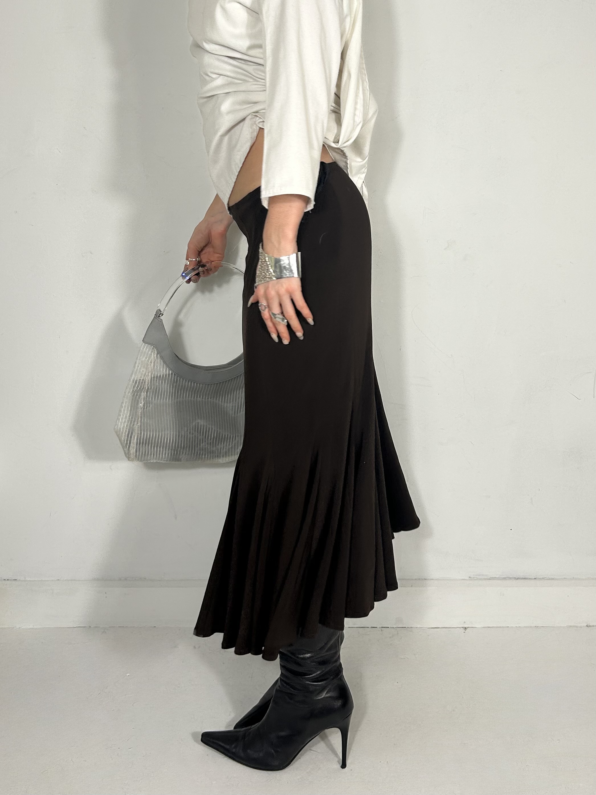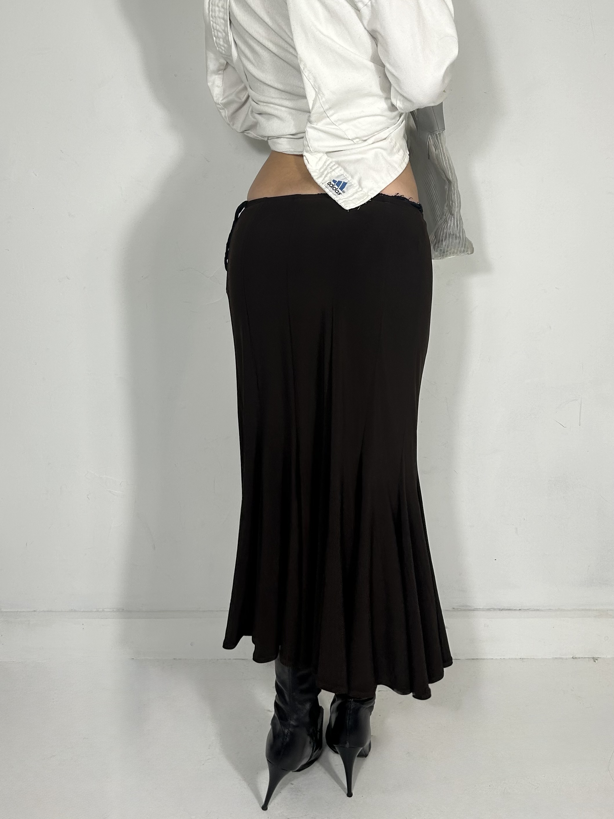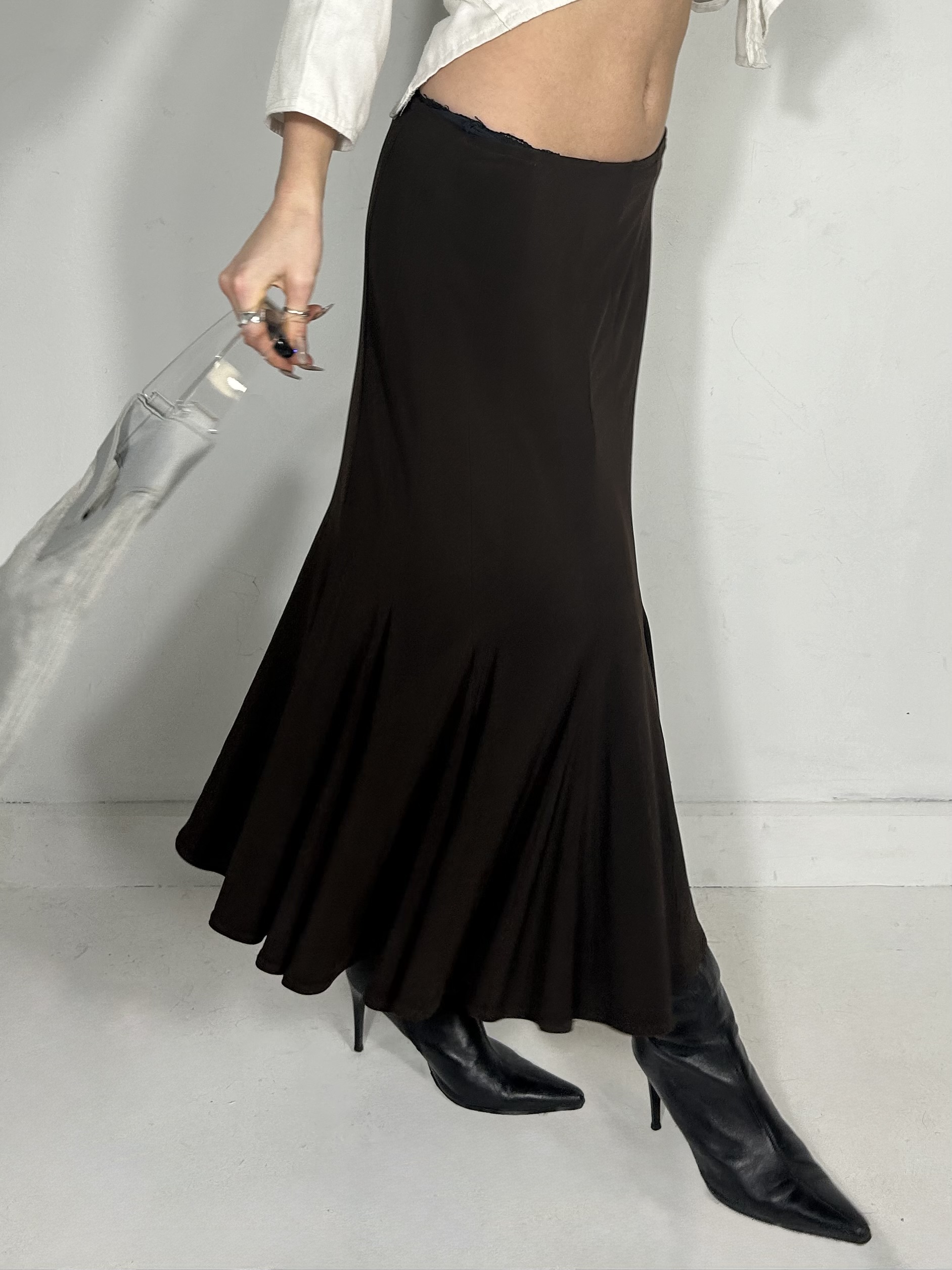 Chocolate brown drape maxi skirt. Waist 28