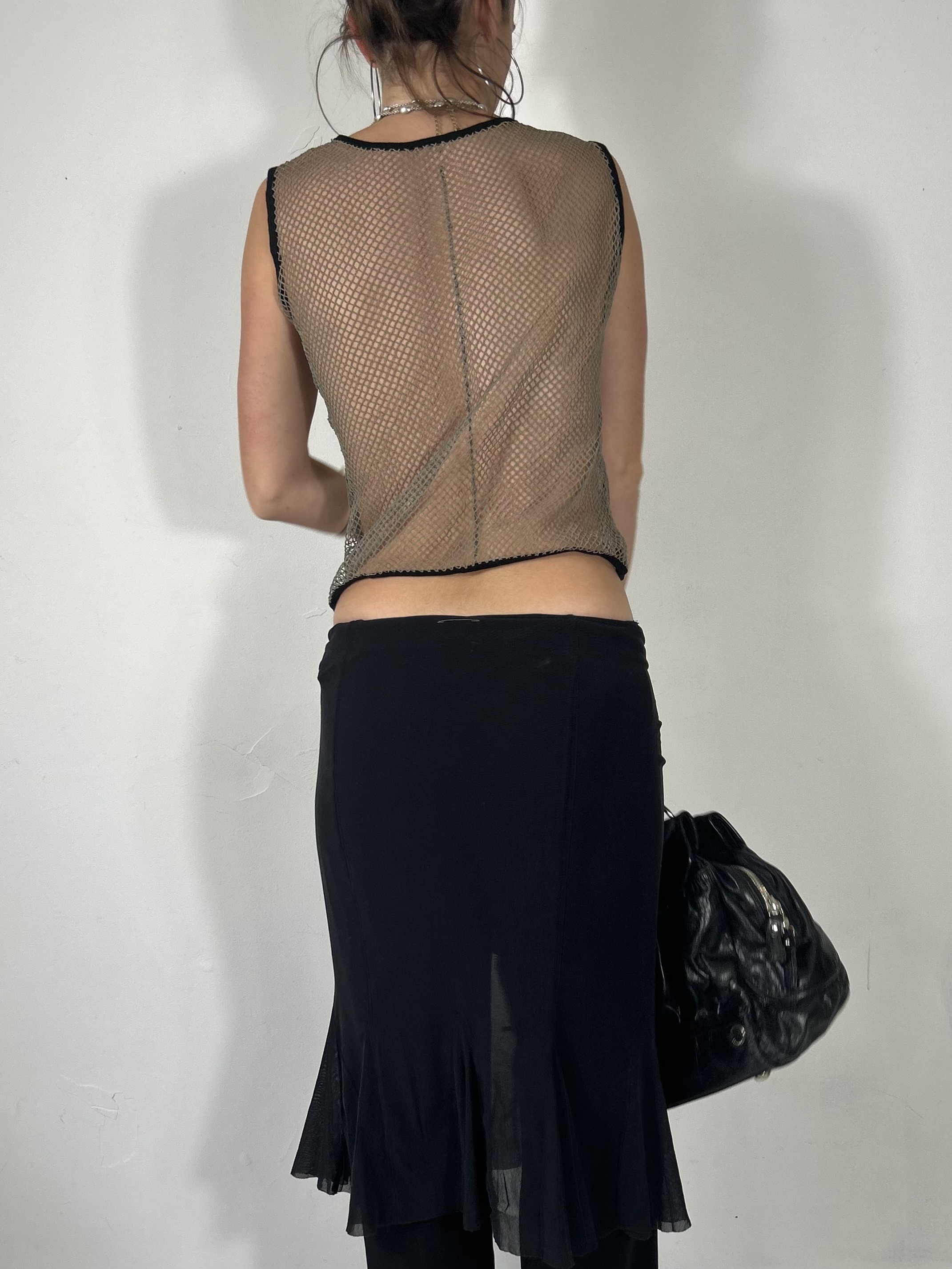 Khaki sheer netted cami top with black trim