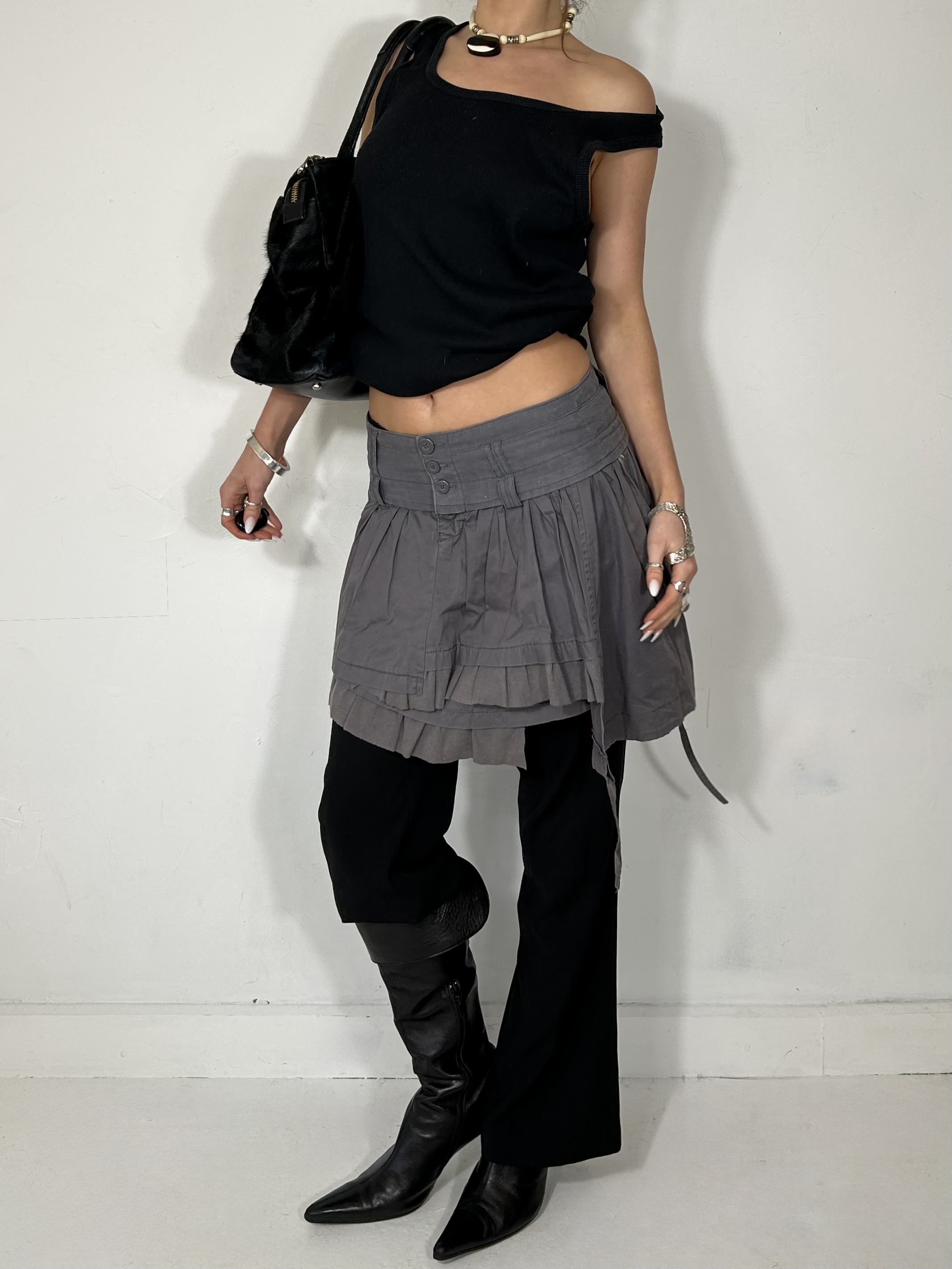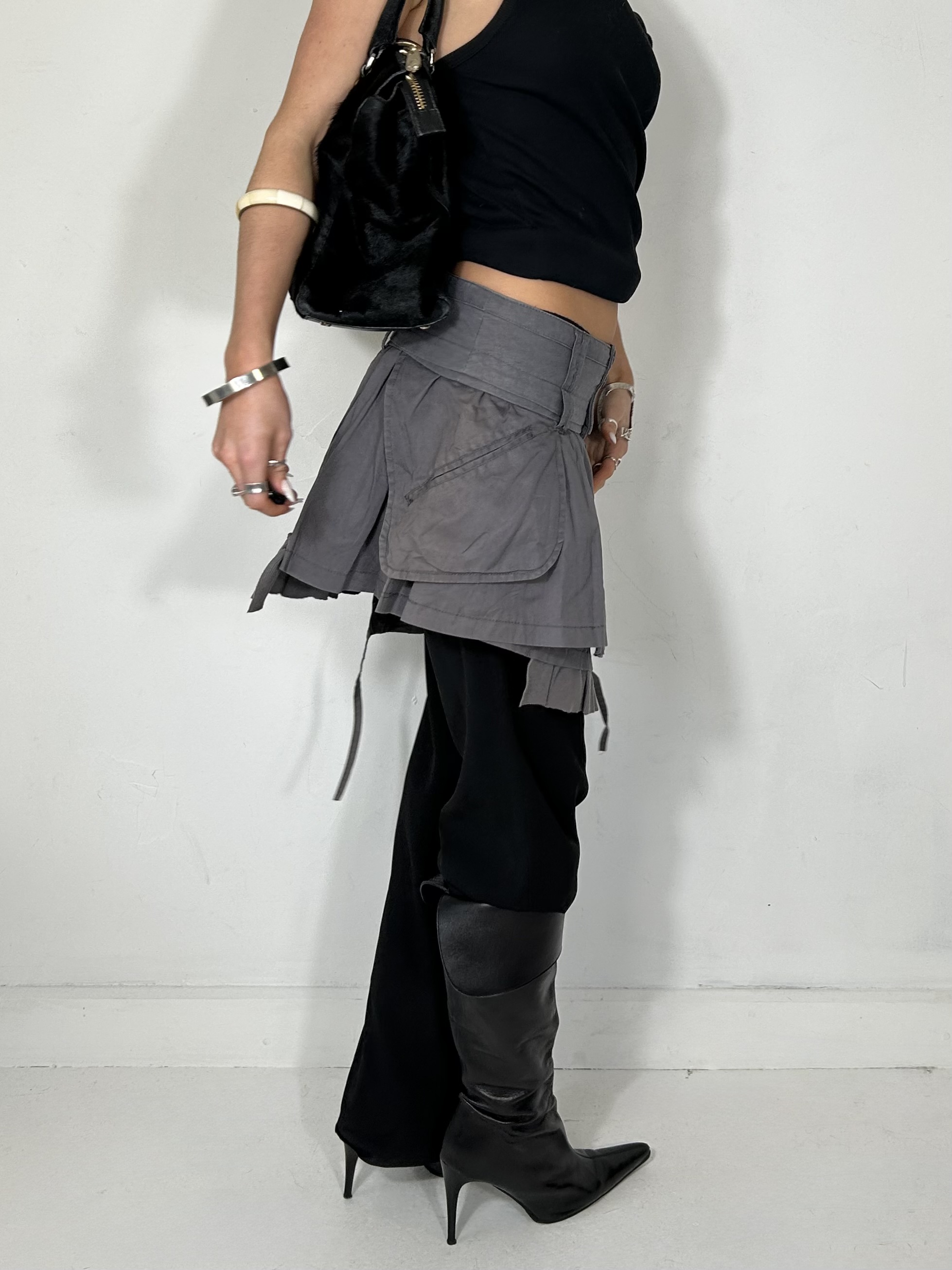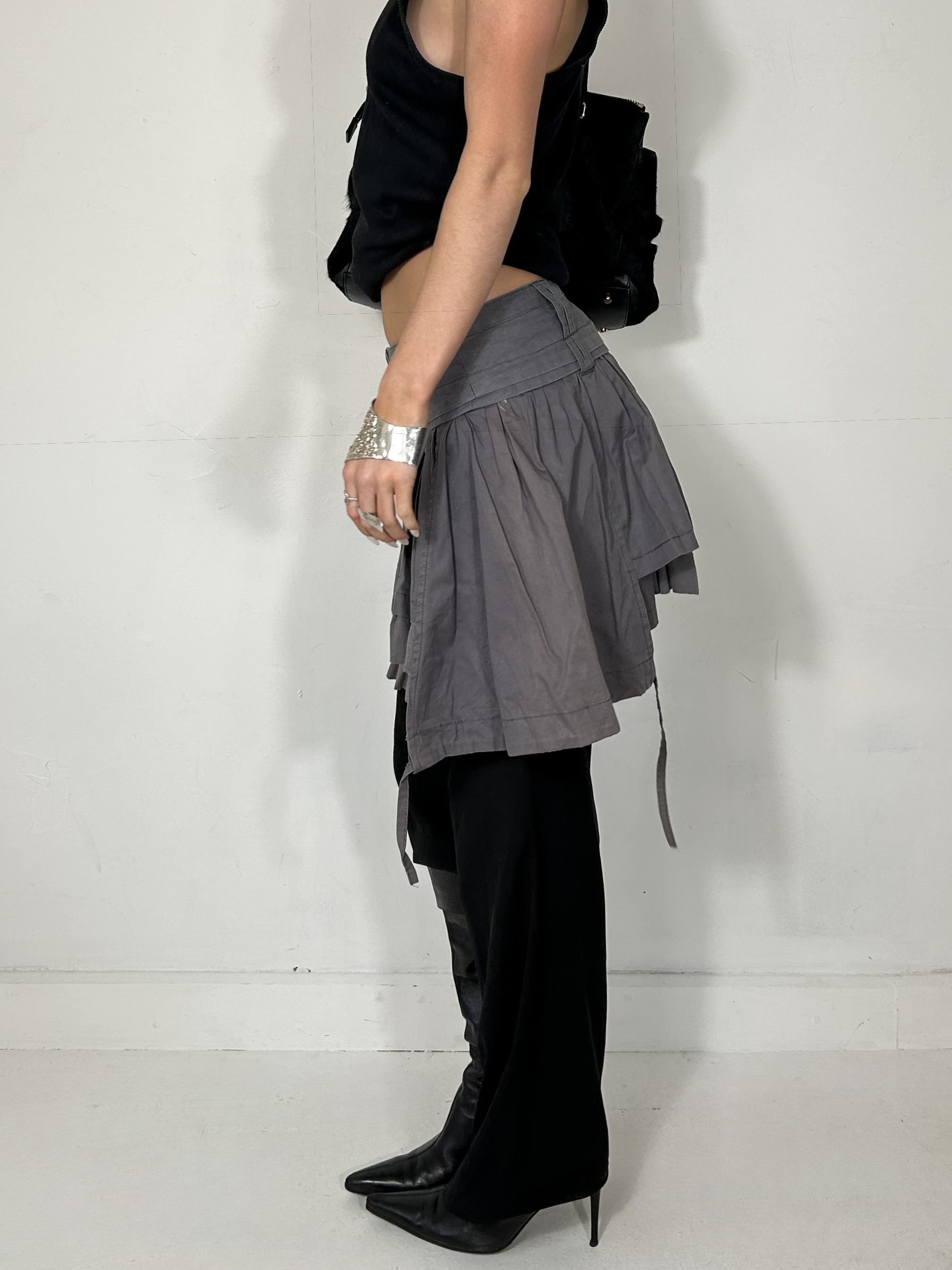 Dusty purple layered mini skirt with utility detailing. Waist 28