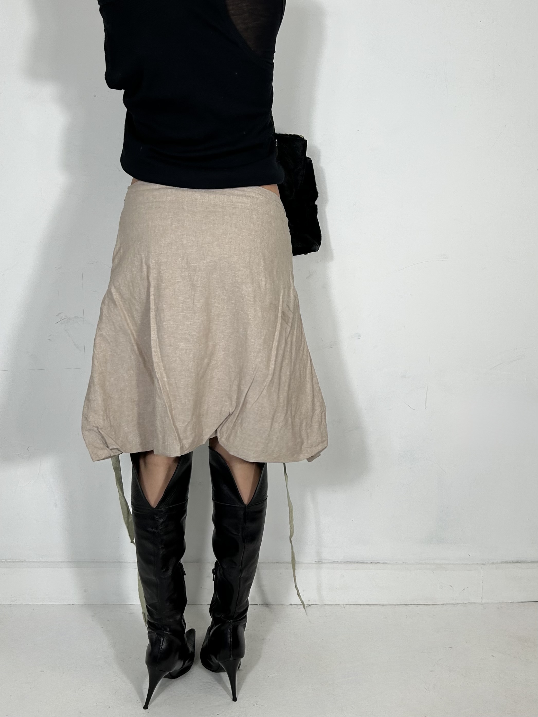 Cream pleated parachute midi skirt with ribbon detailing. Waist 31