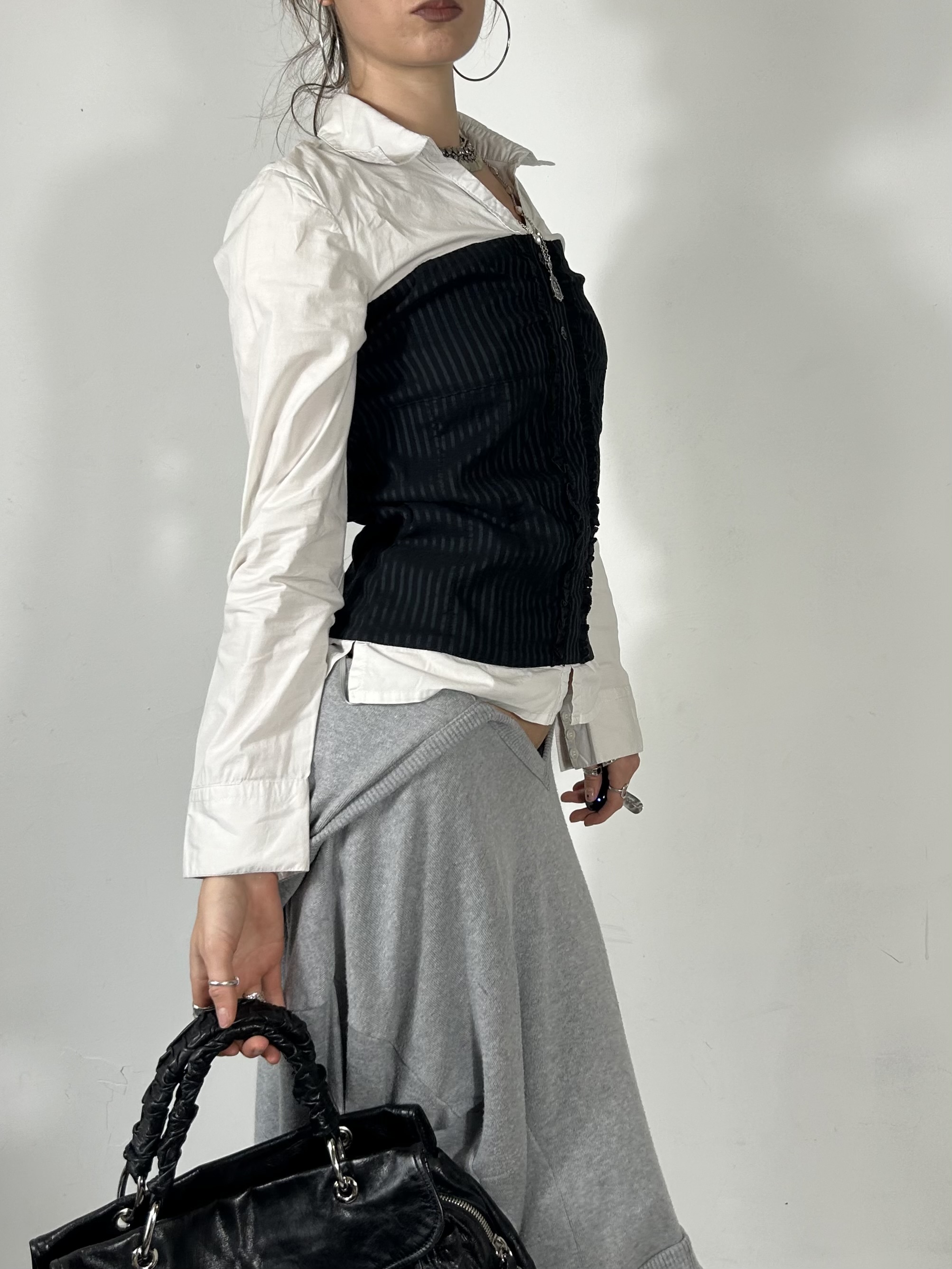 Pinstripe dual layer blouse with ruffle detailing