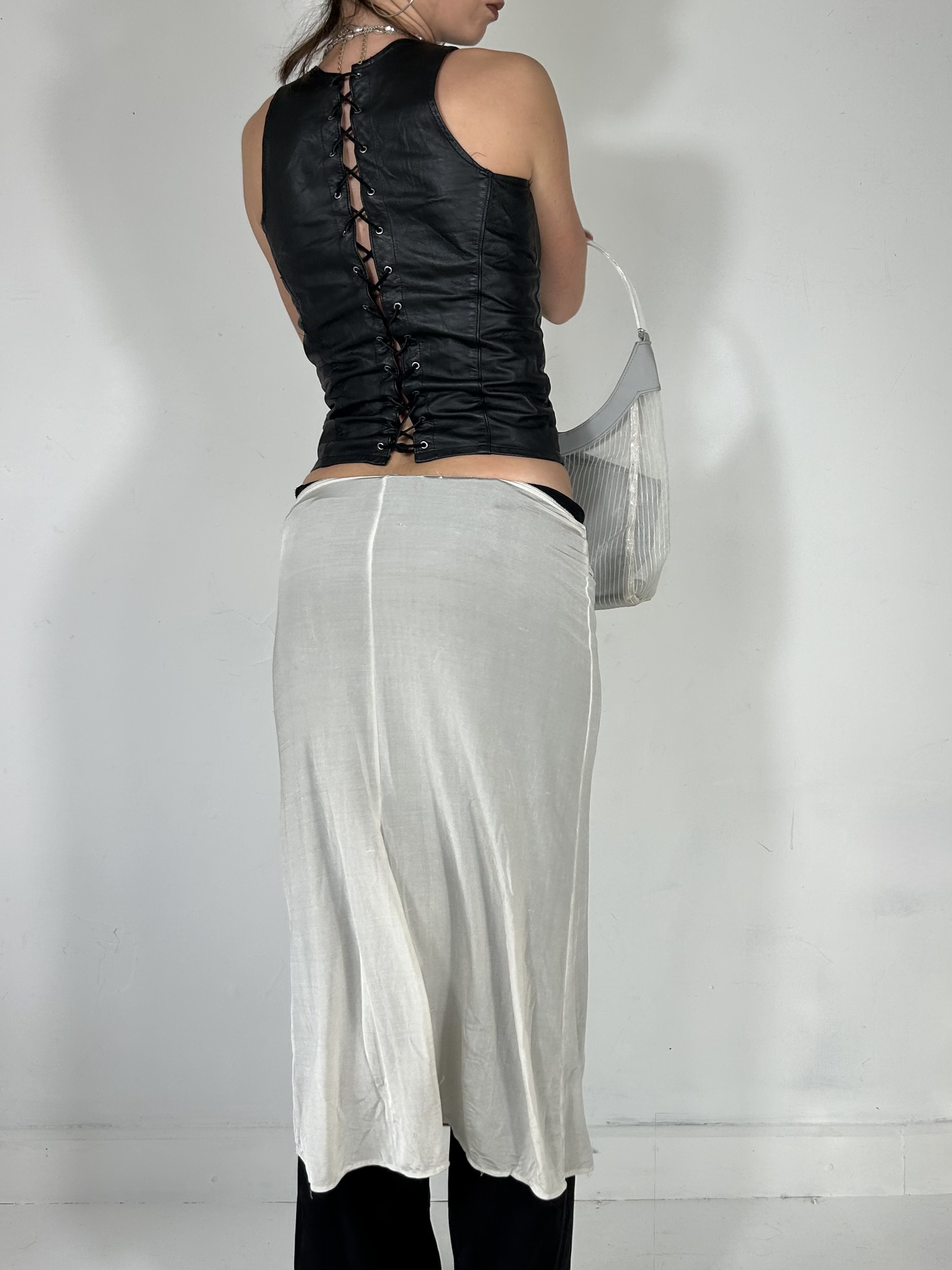 Black leather lace up corset top