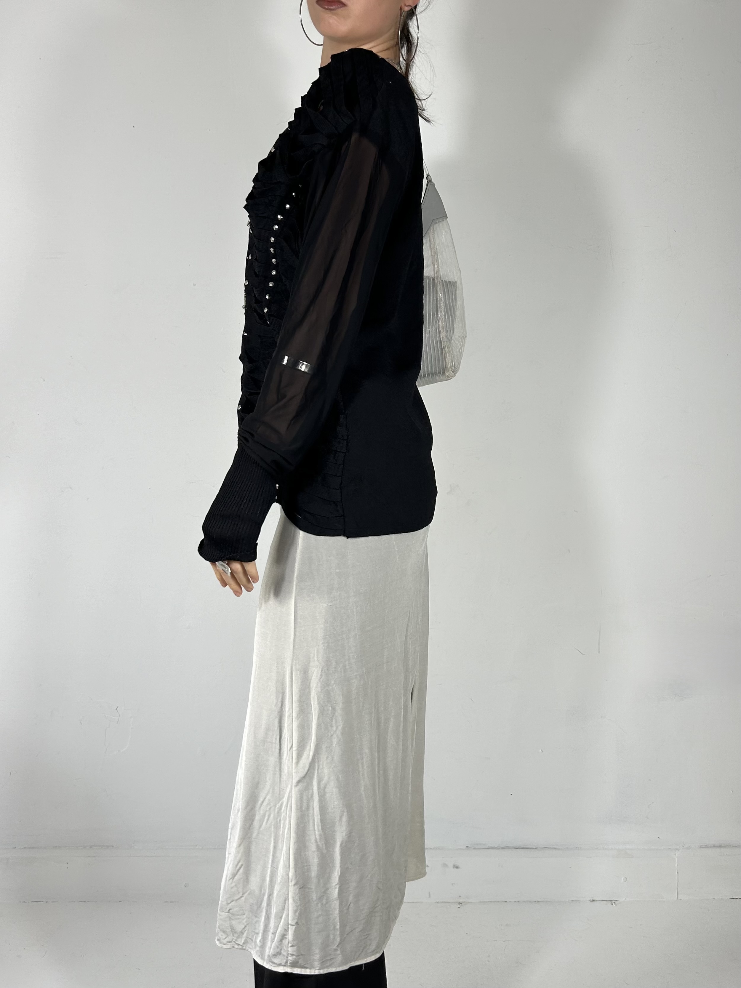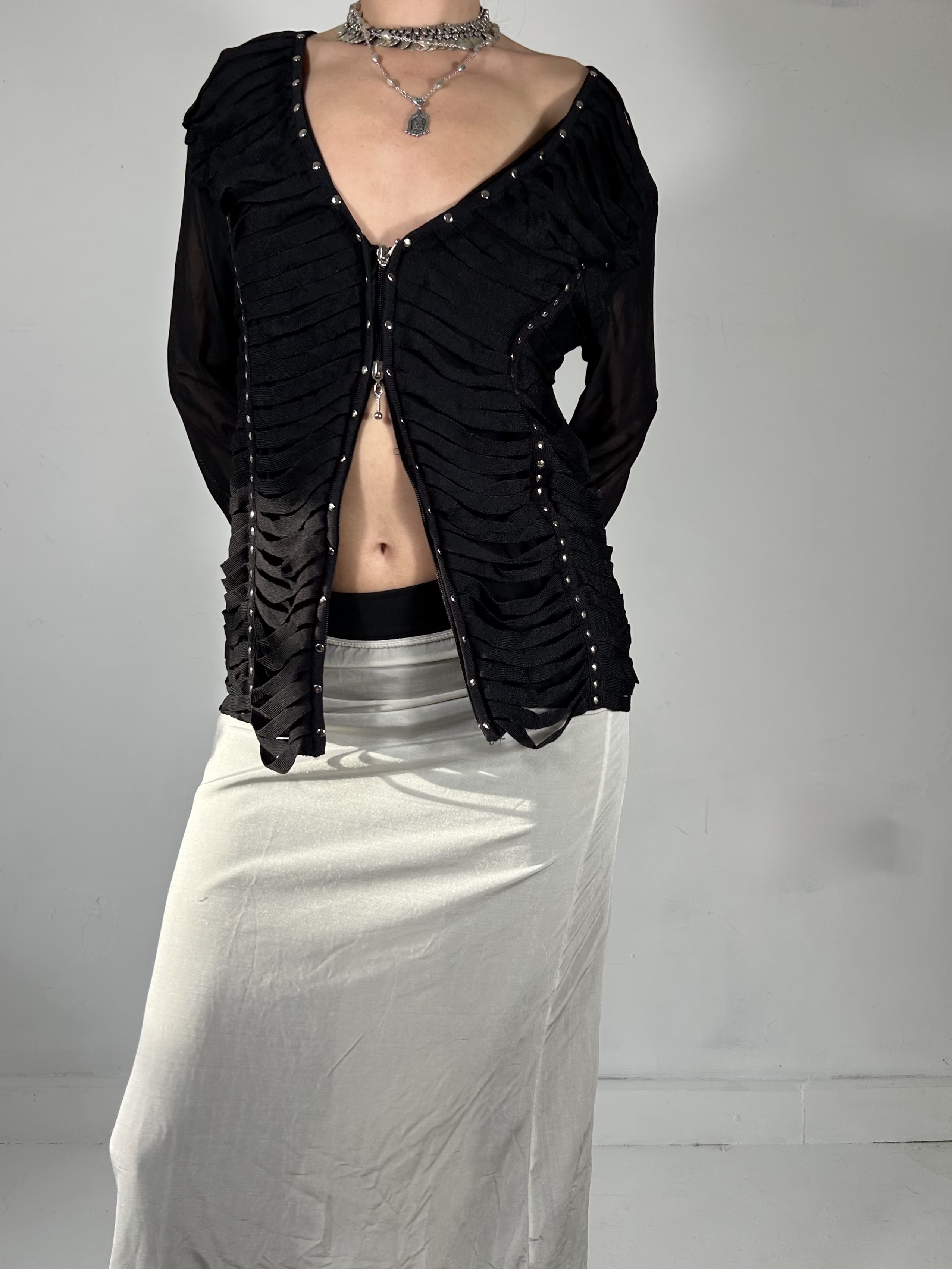 Black distressed double zip cardigan