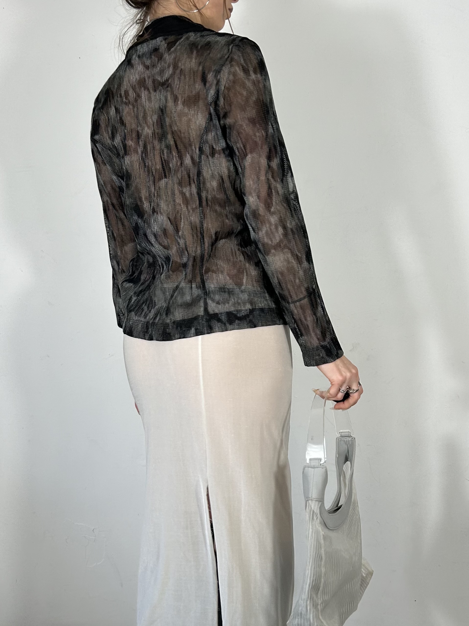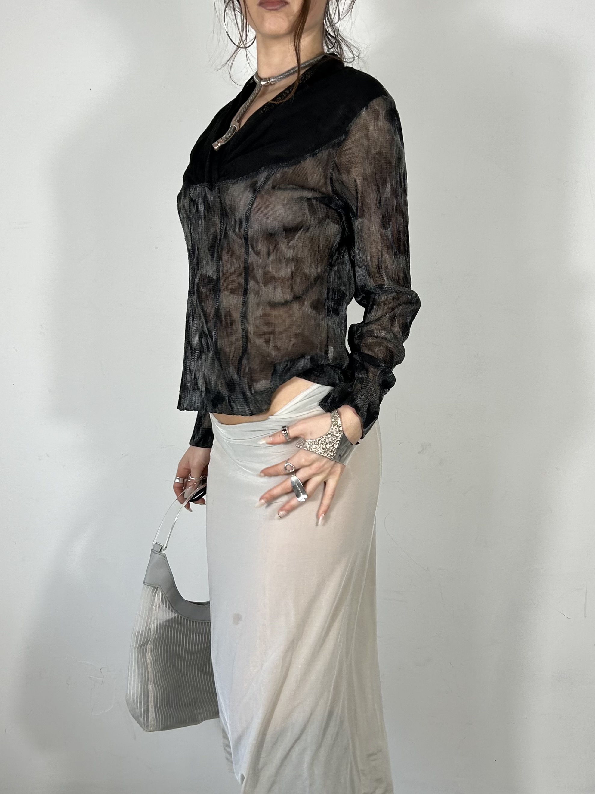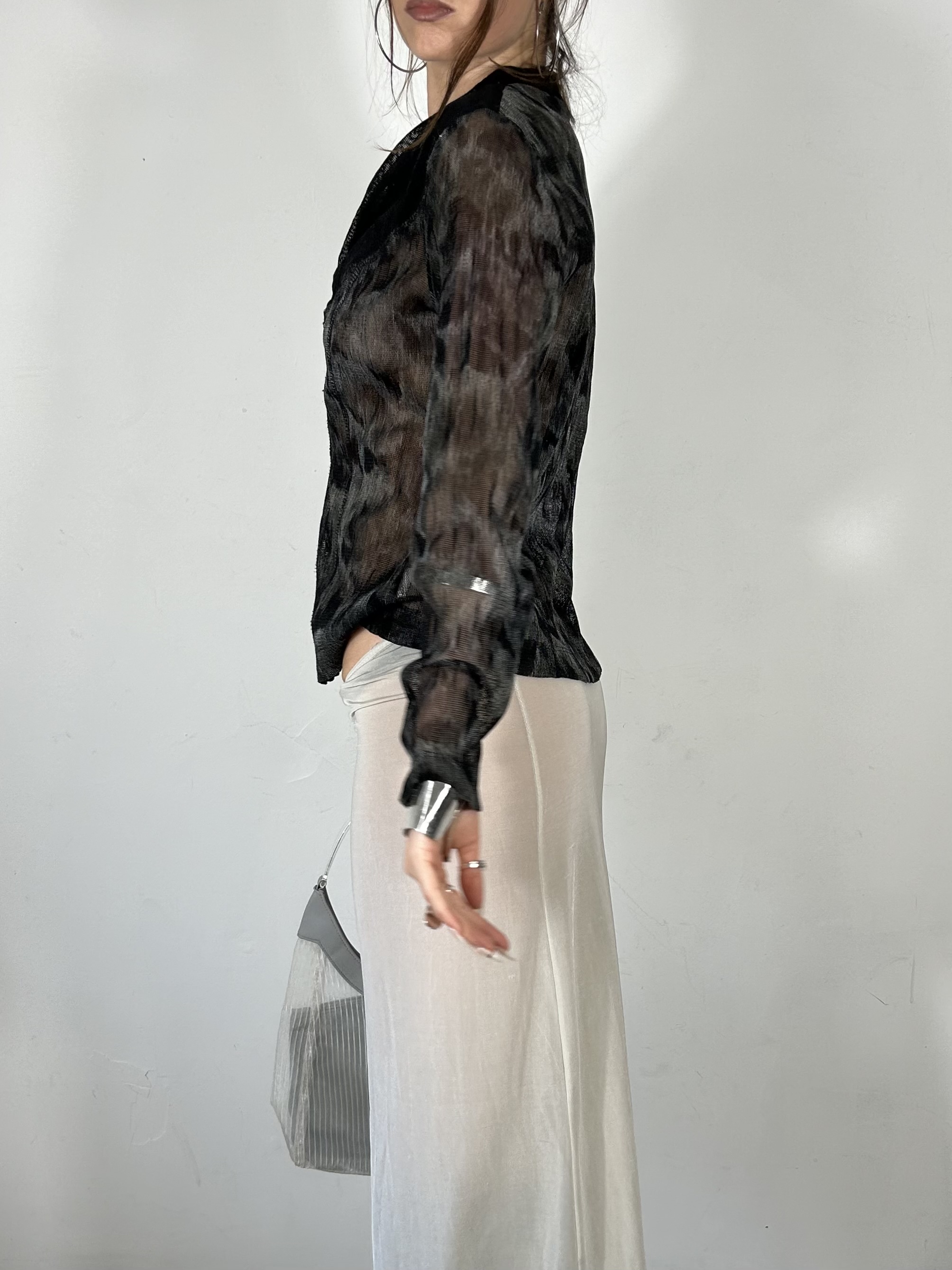Earthy midnight blue semi sheer blouse with oversized collar detailing