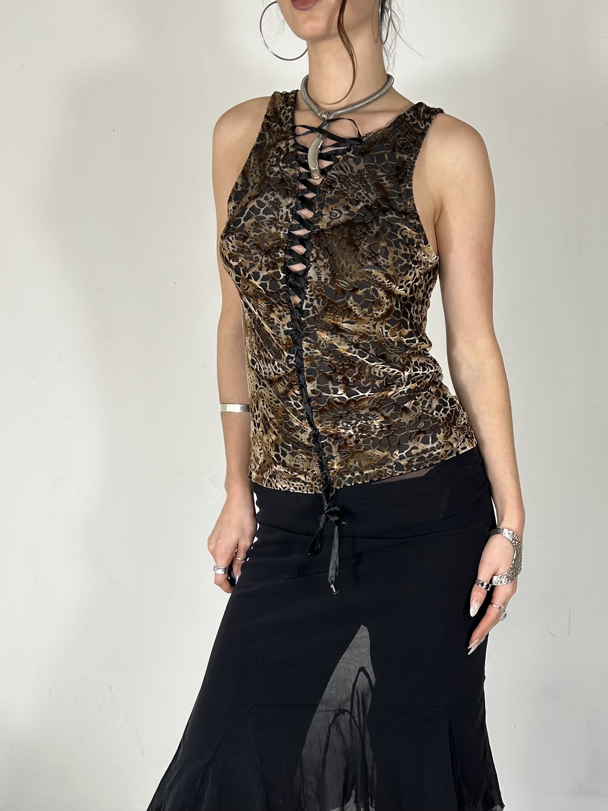 Earthy textured cami with corset lace up front