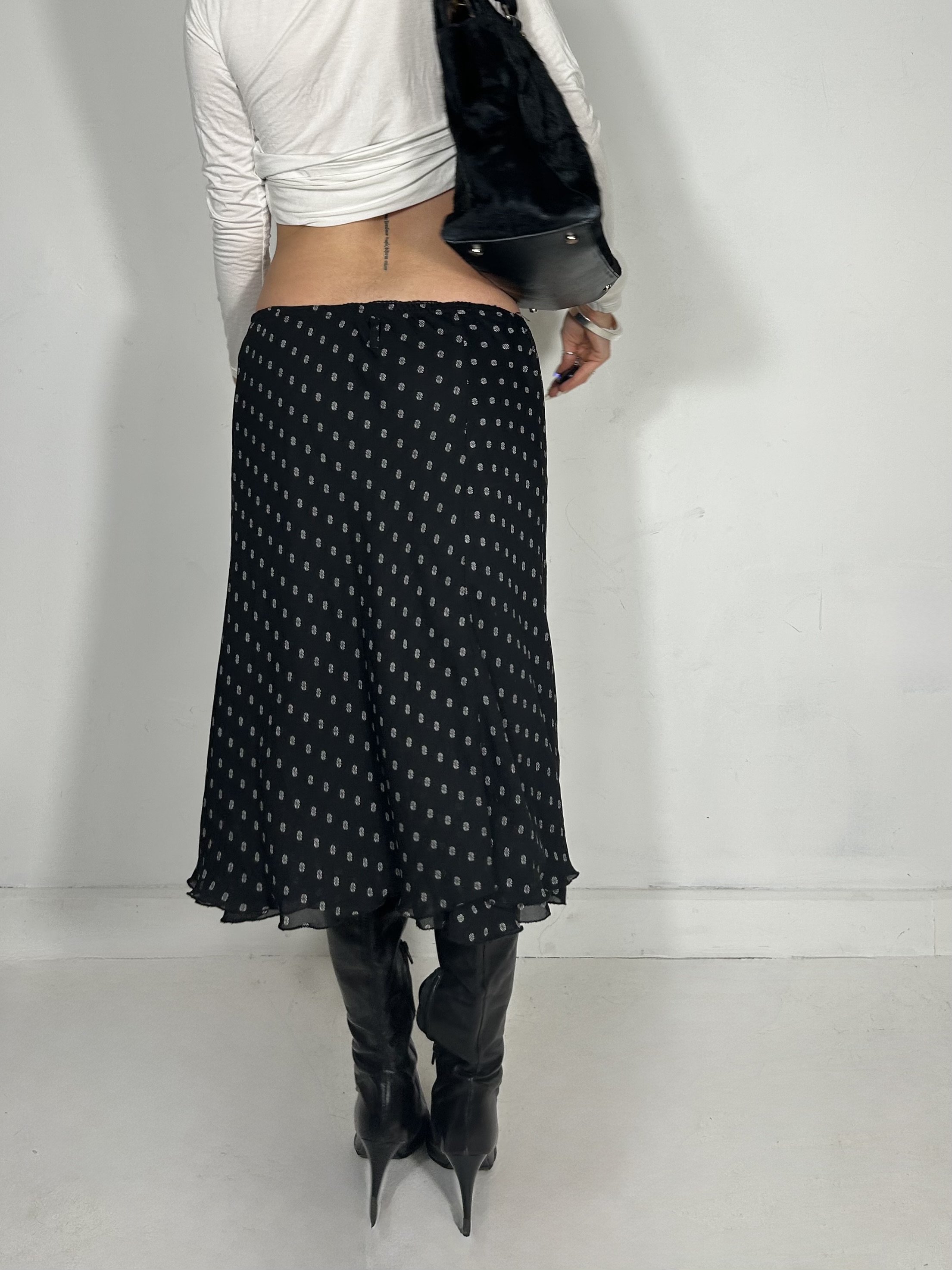 Midnight blue chiffon polka dot midi skirt. Waist 32
