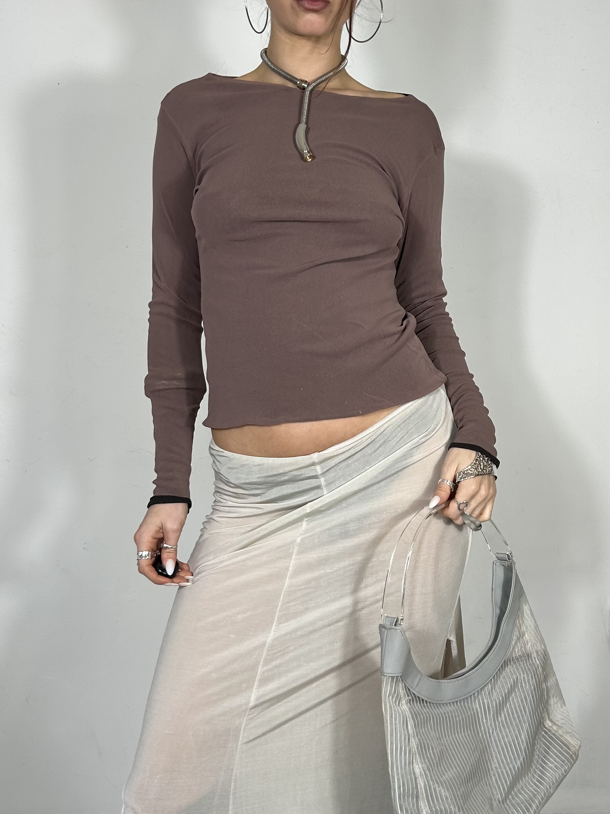 Dusty purple mesh long sleeve top with plum lining