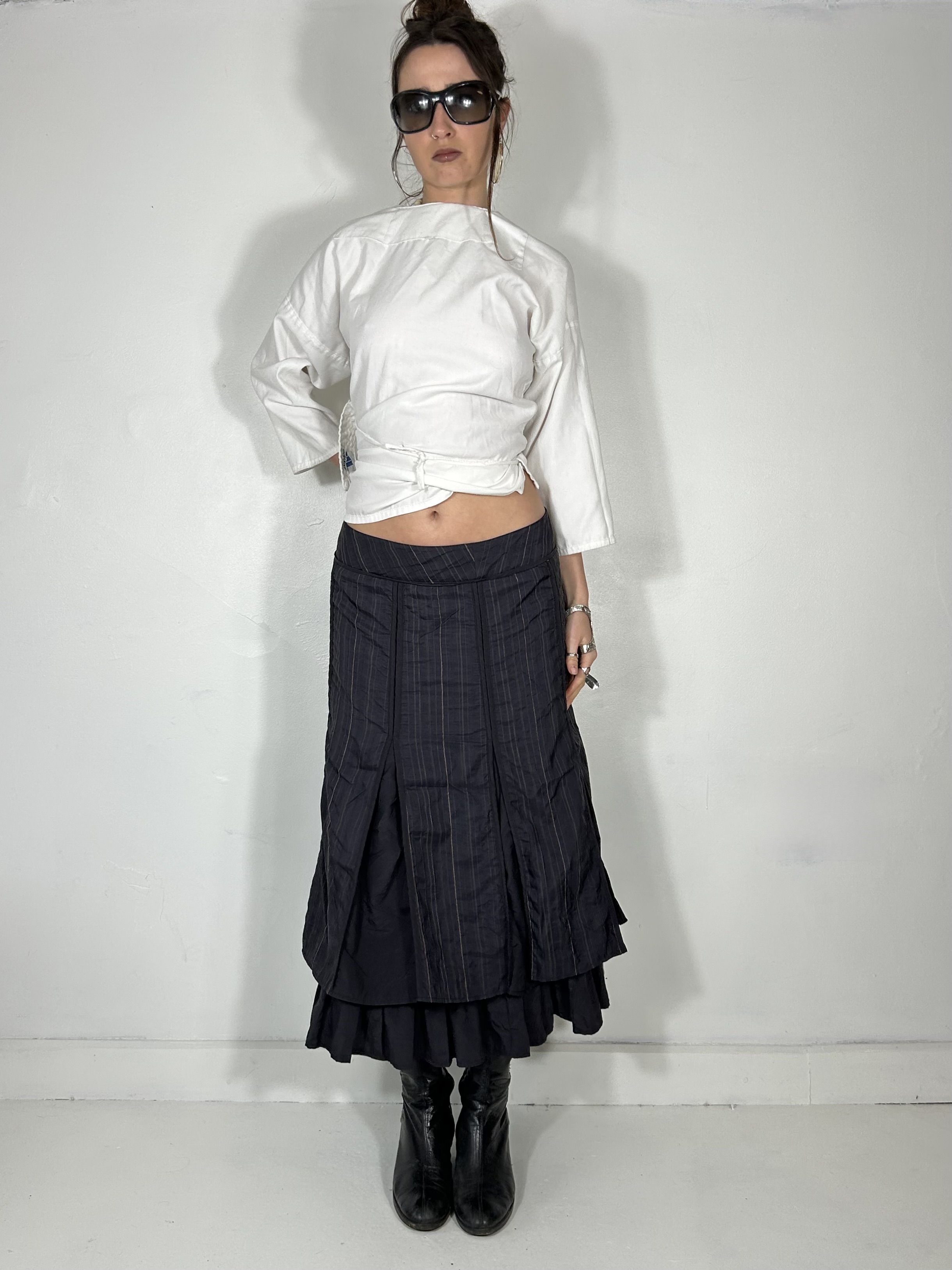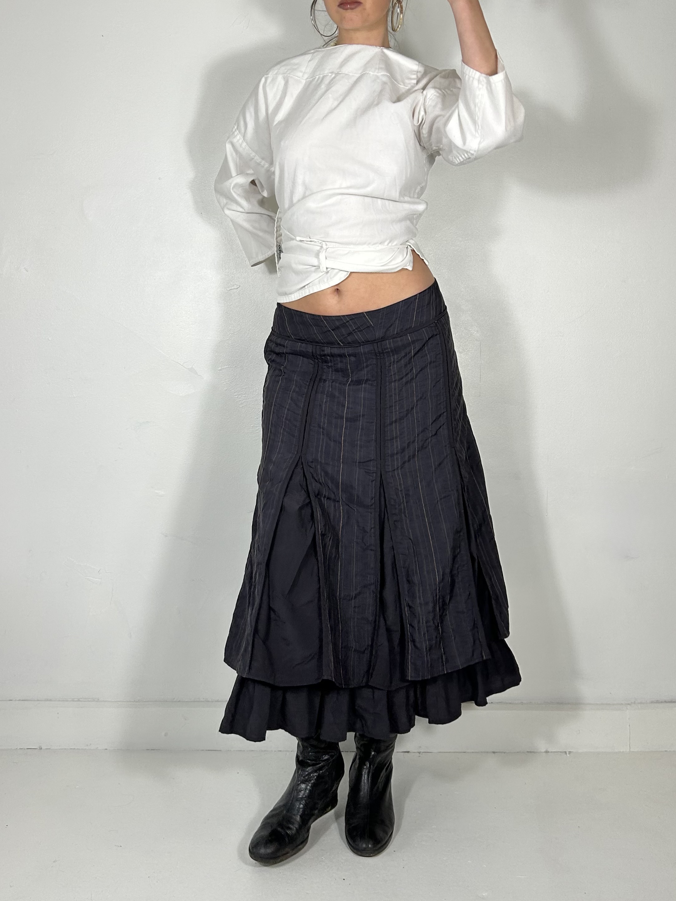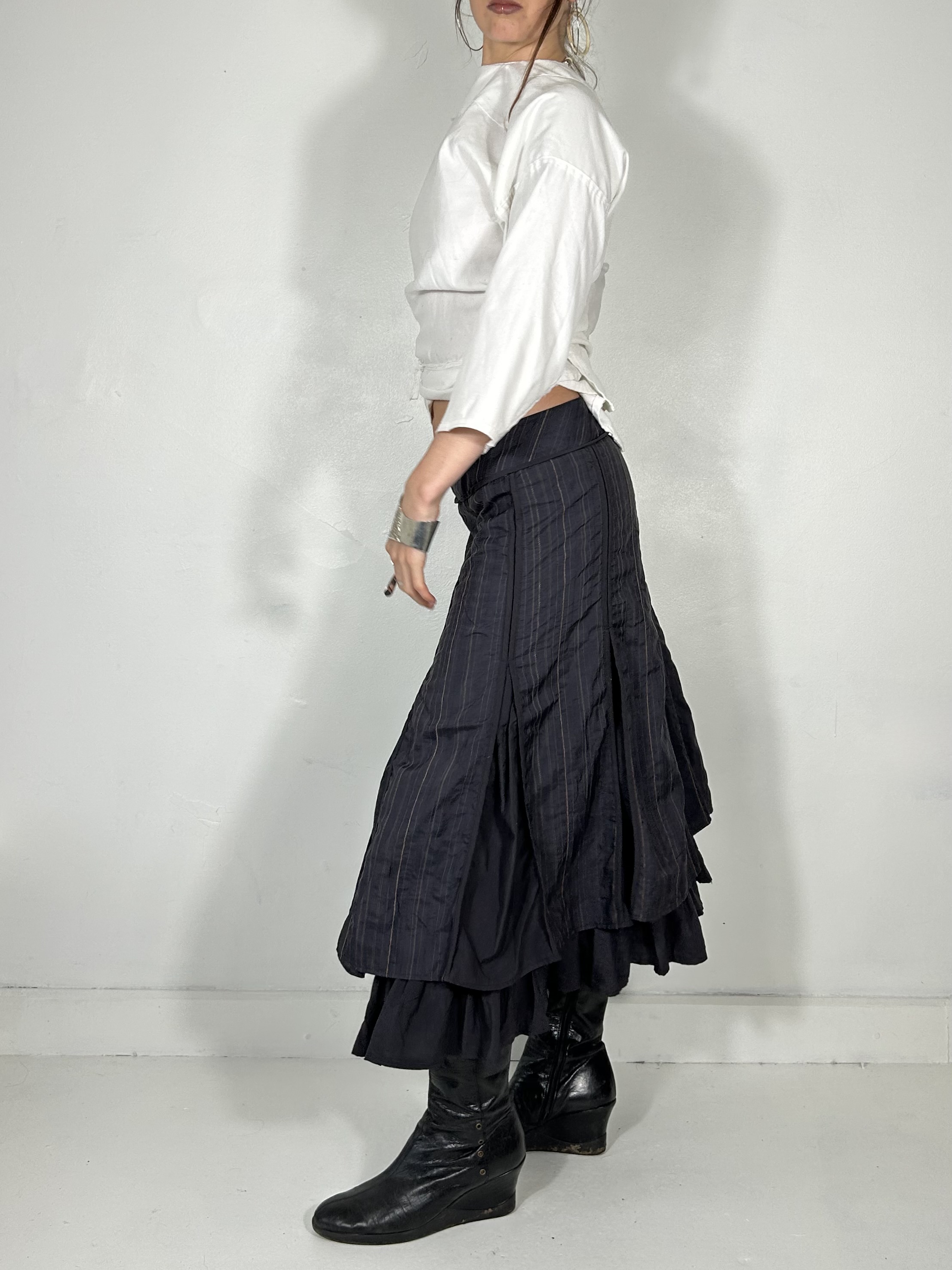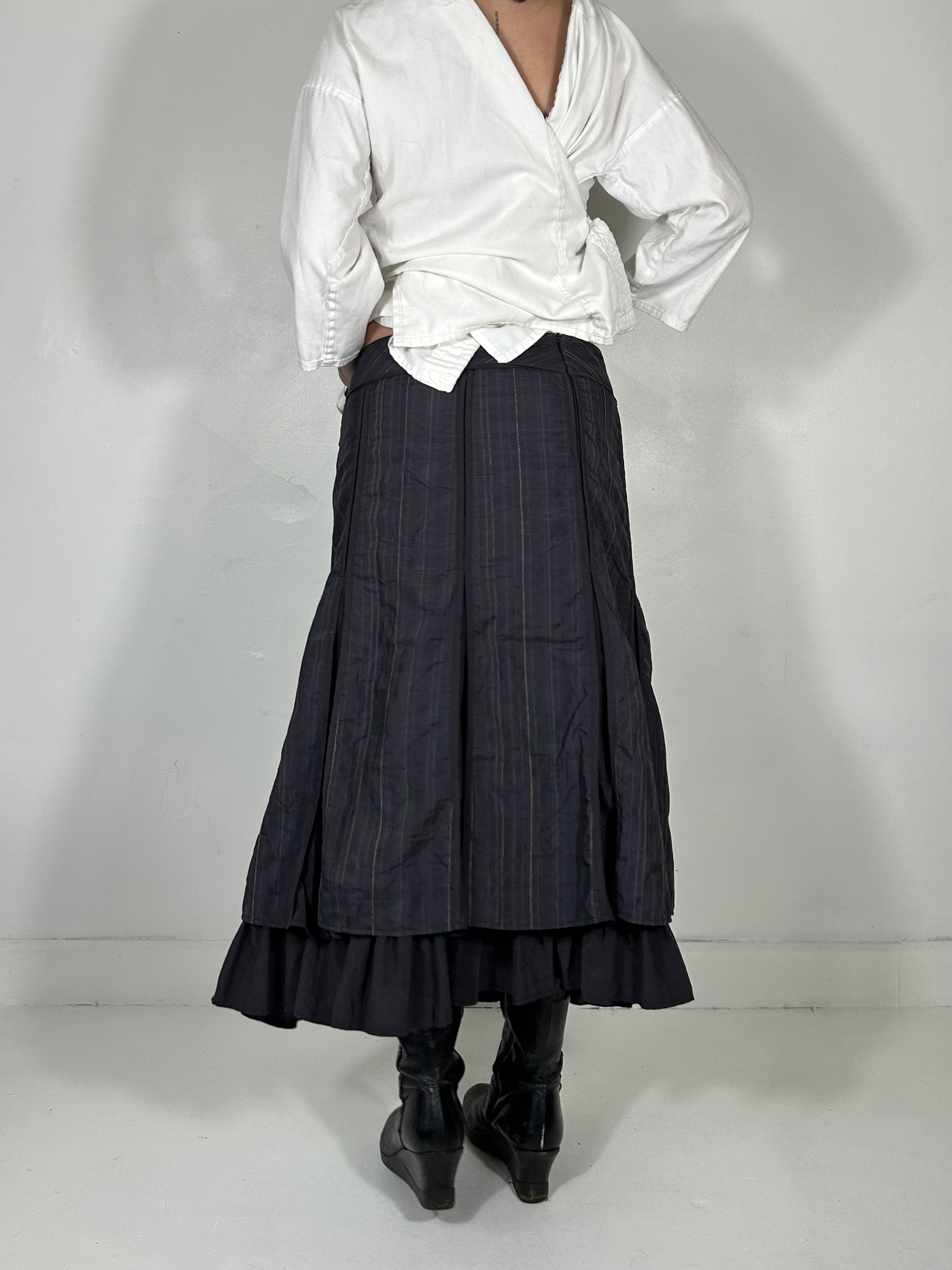 Charcoal grey layered maxi skirt with stripe detailing. Waist 34