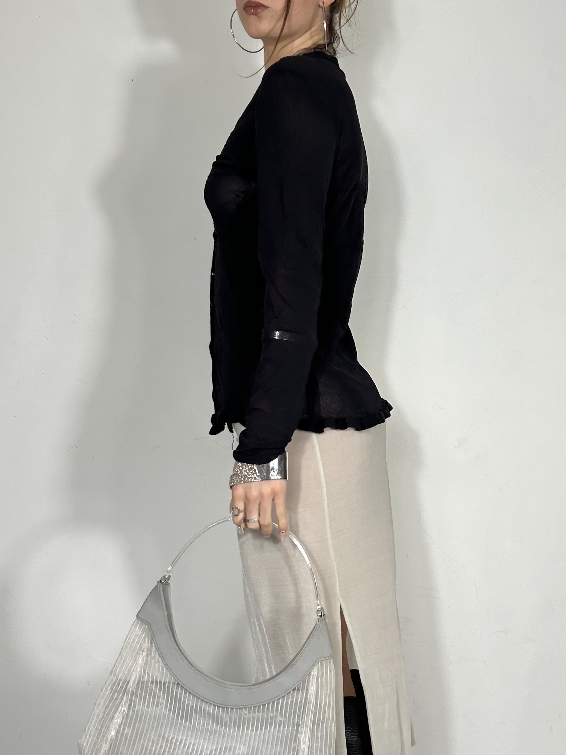 Black semi sheer popper top with canvas detailing