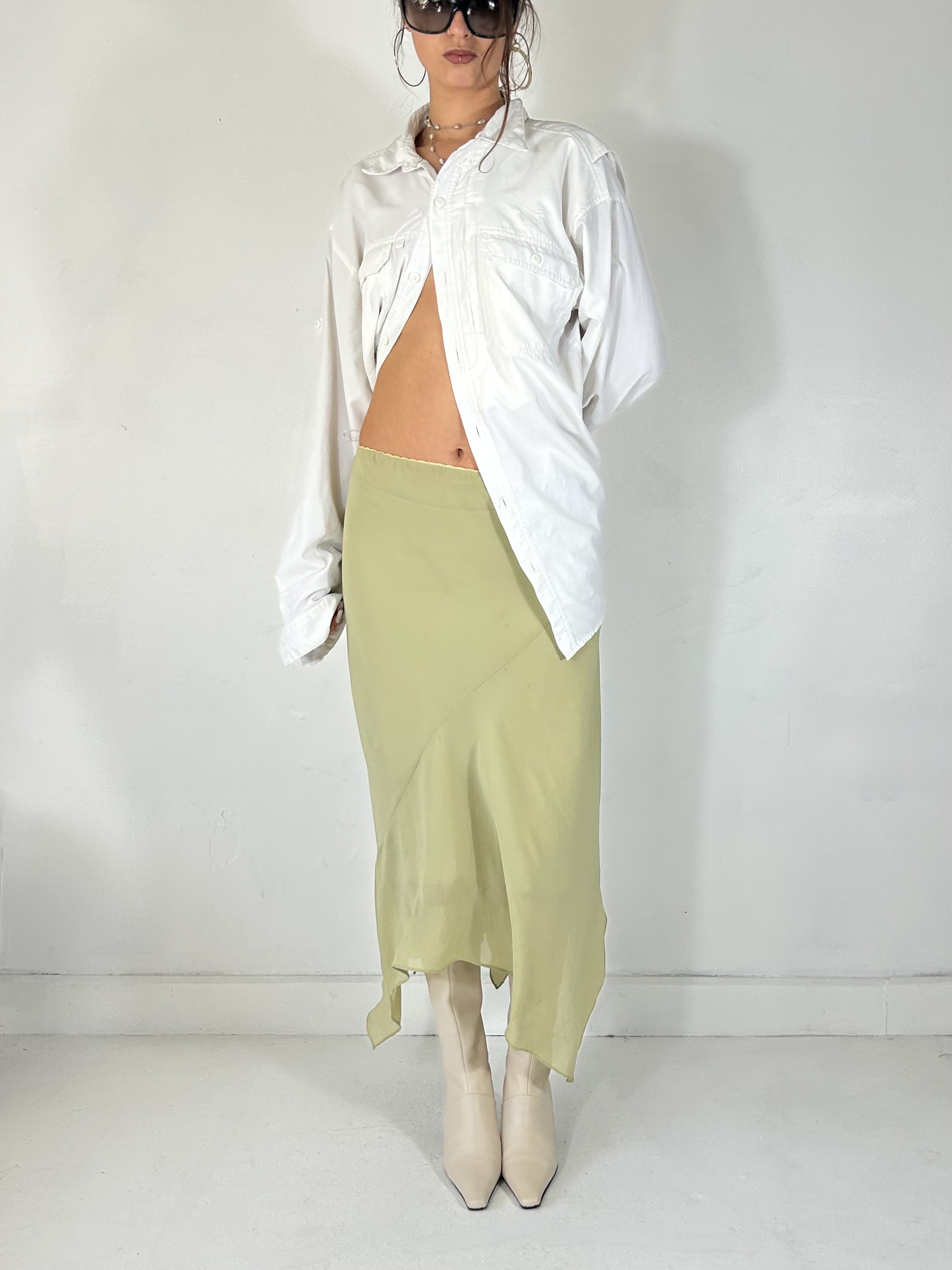 Lime green chiffon maxi skirt, waist 36