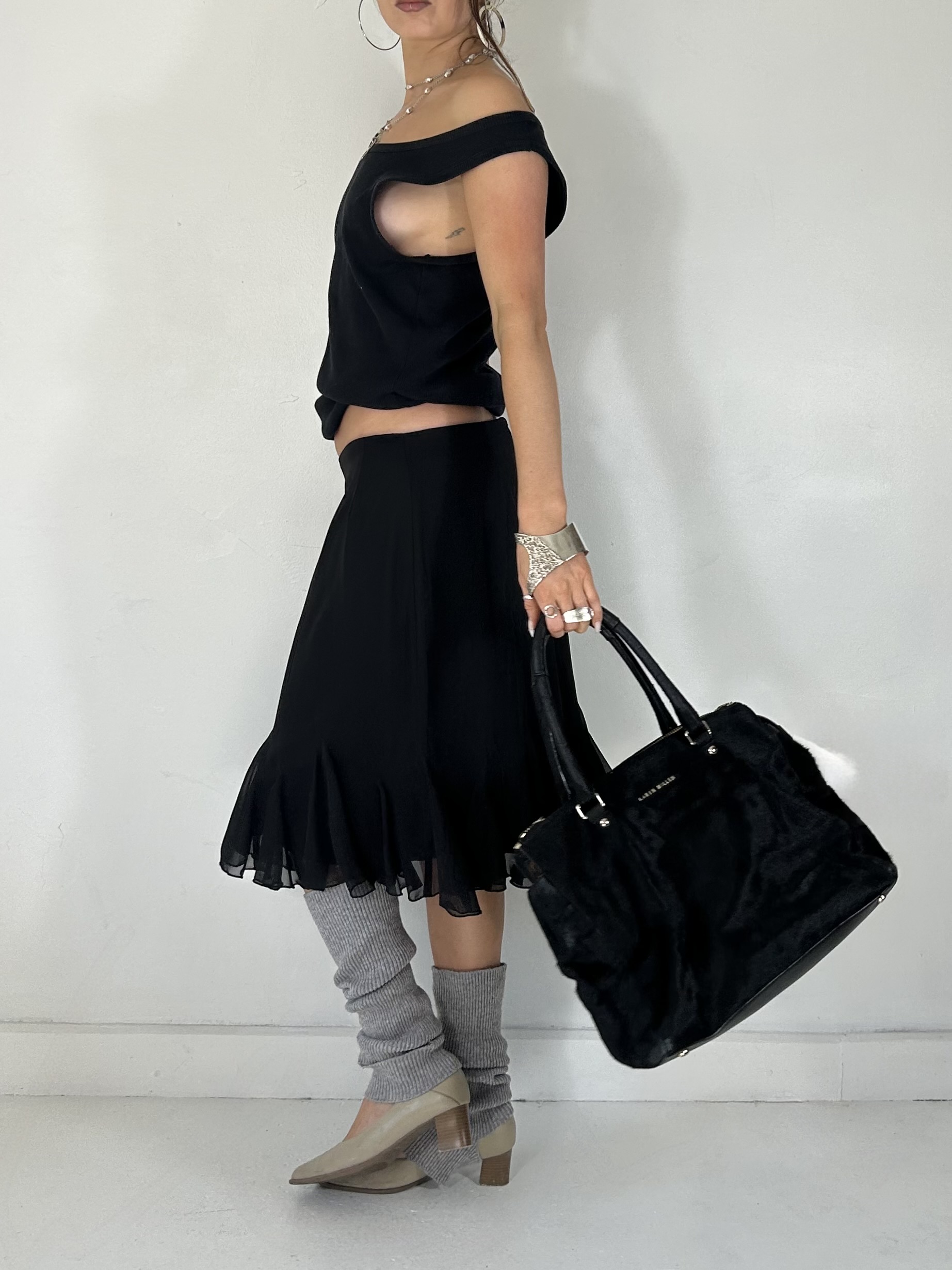 Black chiffon midi drape skirt, waist 31