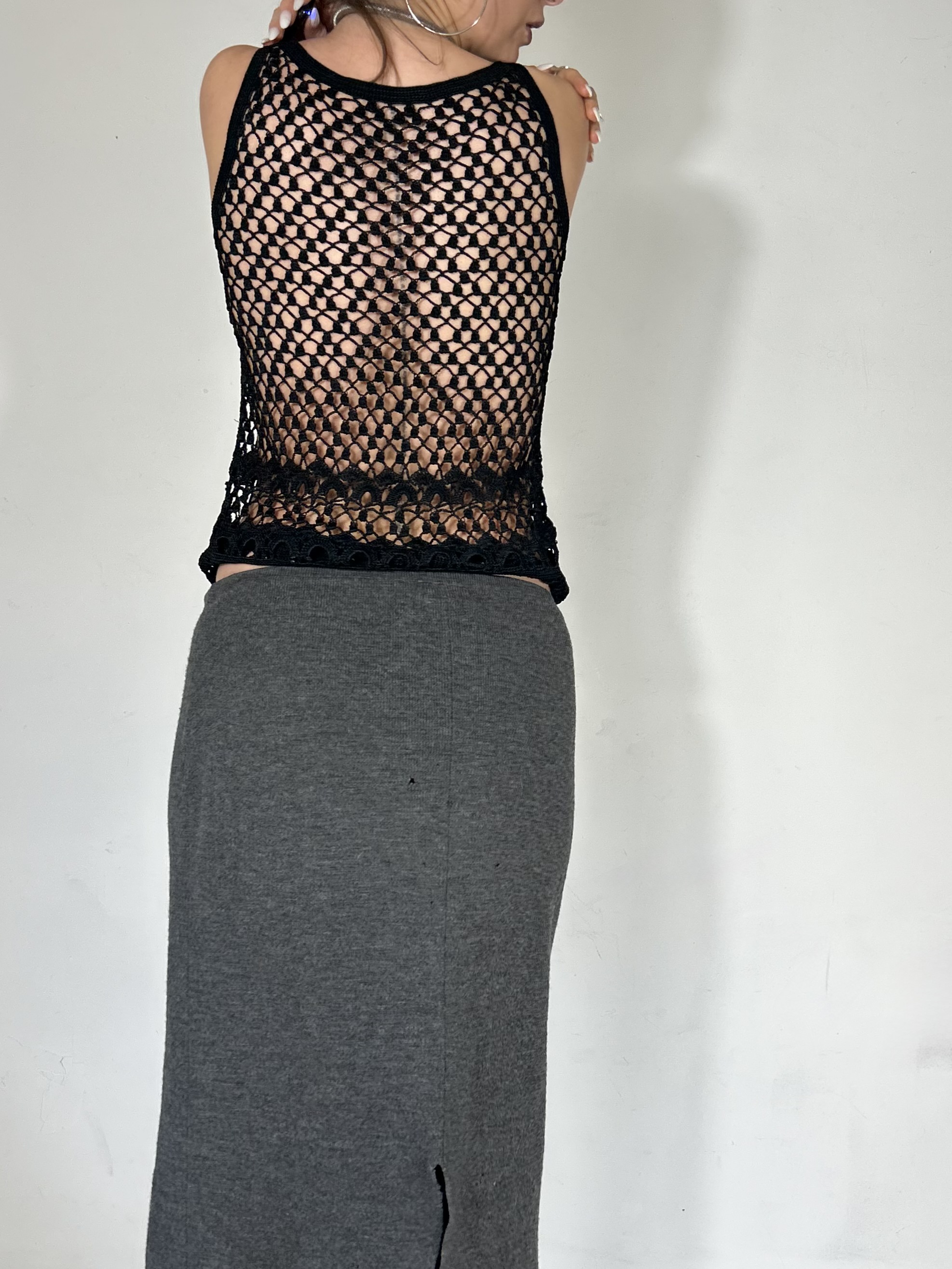 Black crochet sheer cami with lace detailing