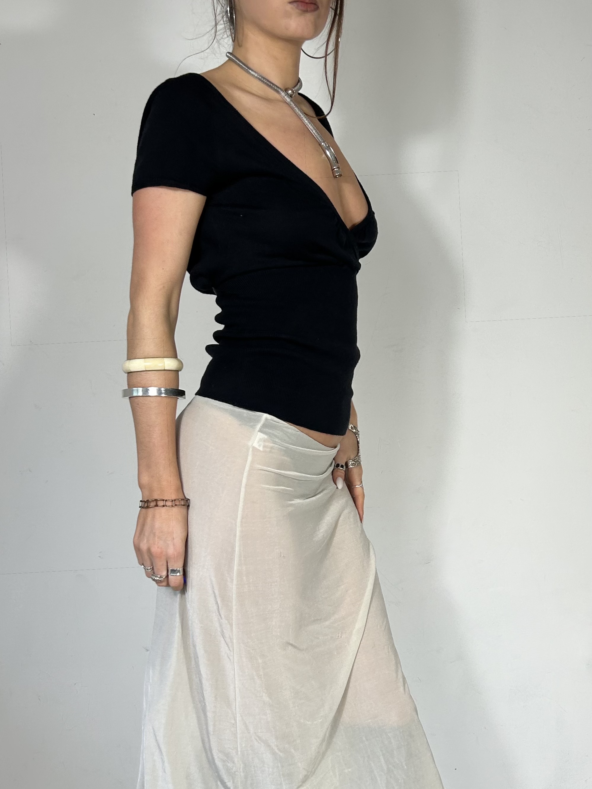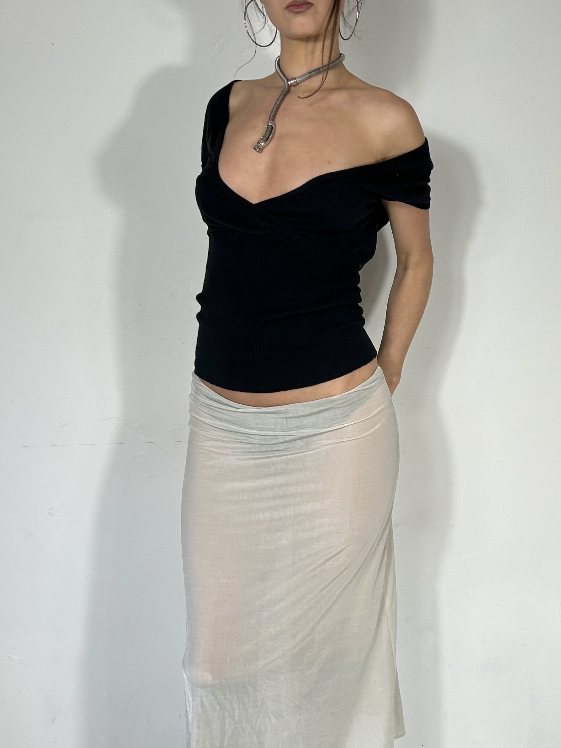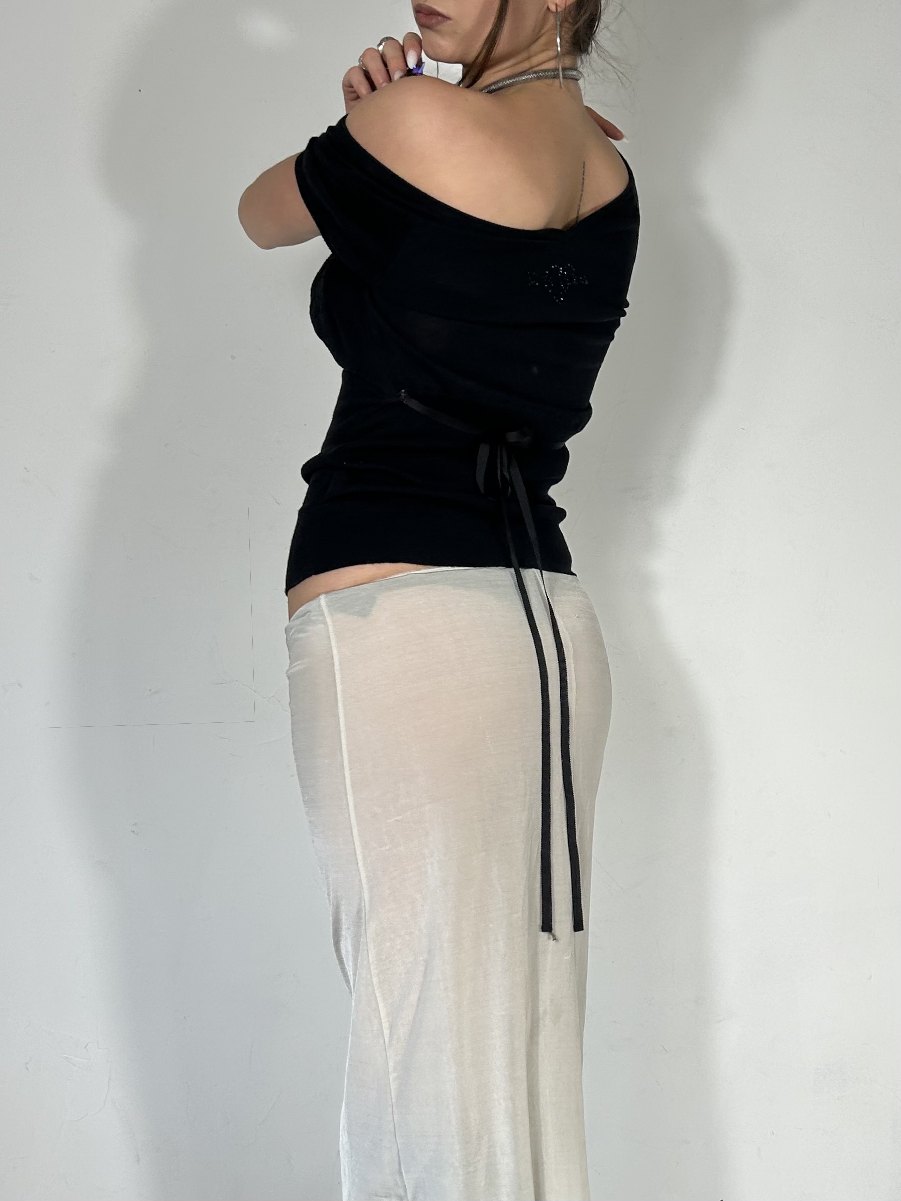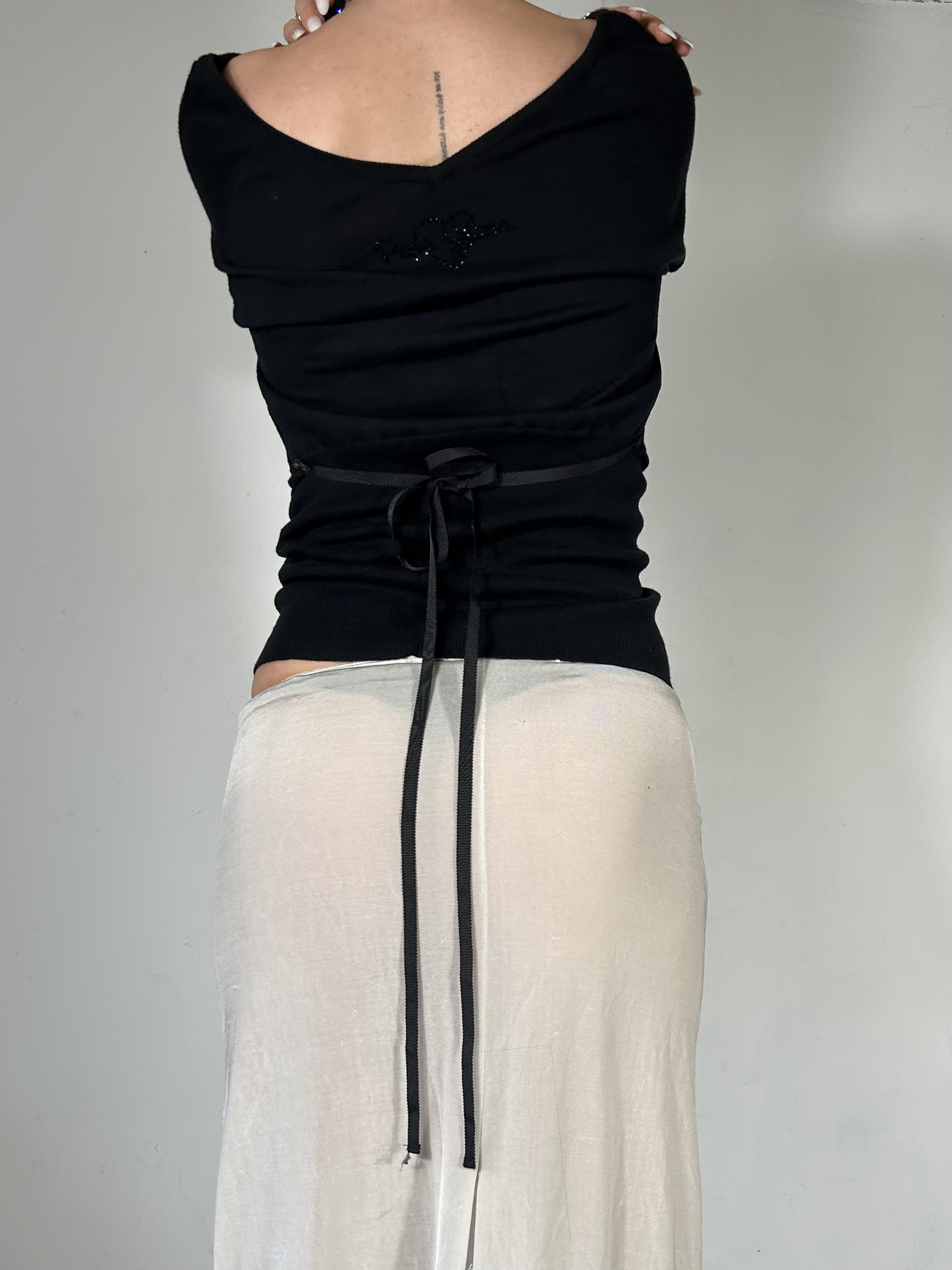 Black slouch knit Pepe Jeans tee with tie back detailing