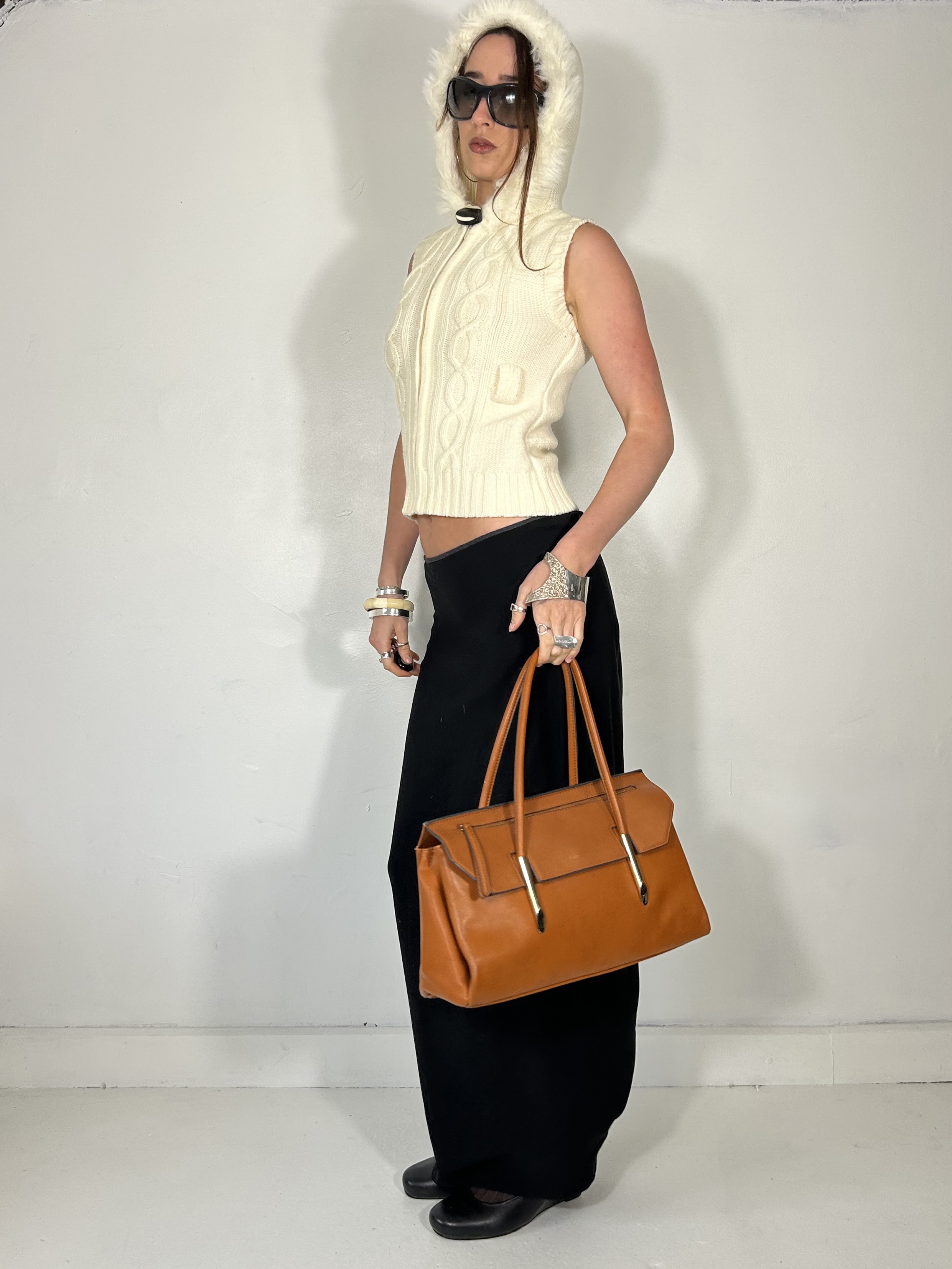 Cream knit vest with faux fur trim hood
