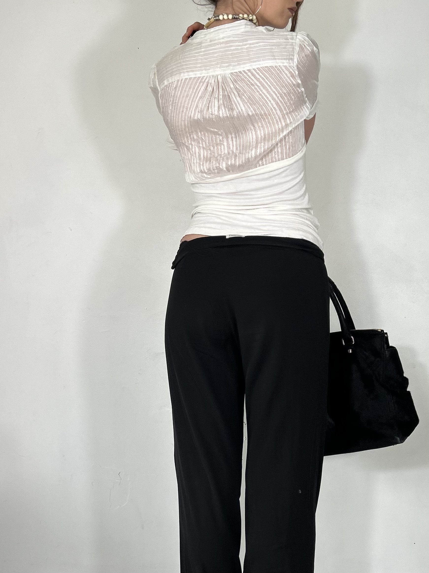 Cream semi sheer chiffon ruffle tee