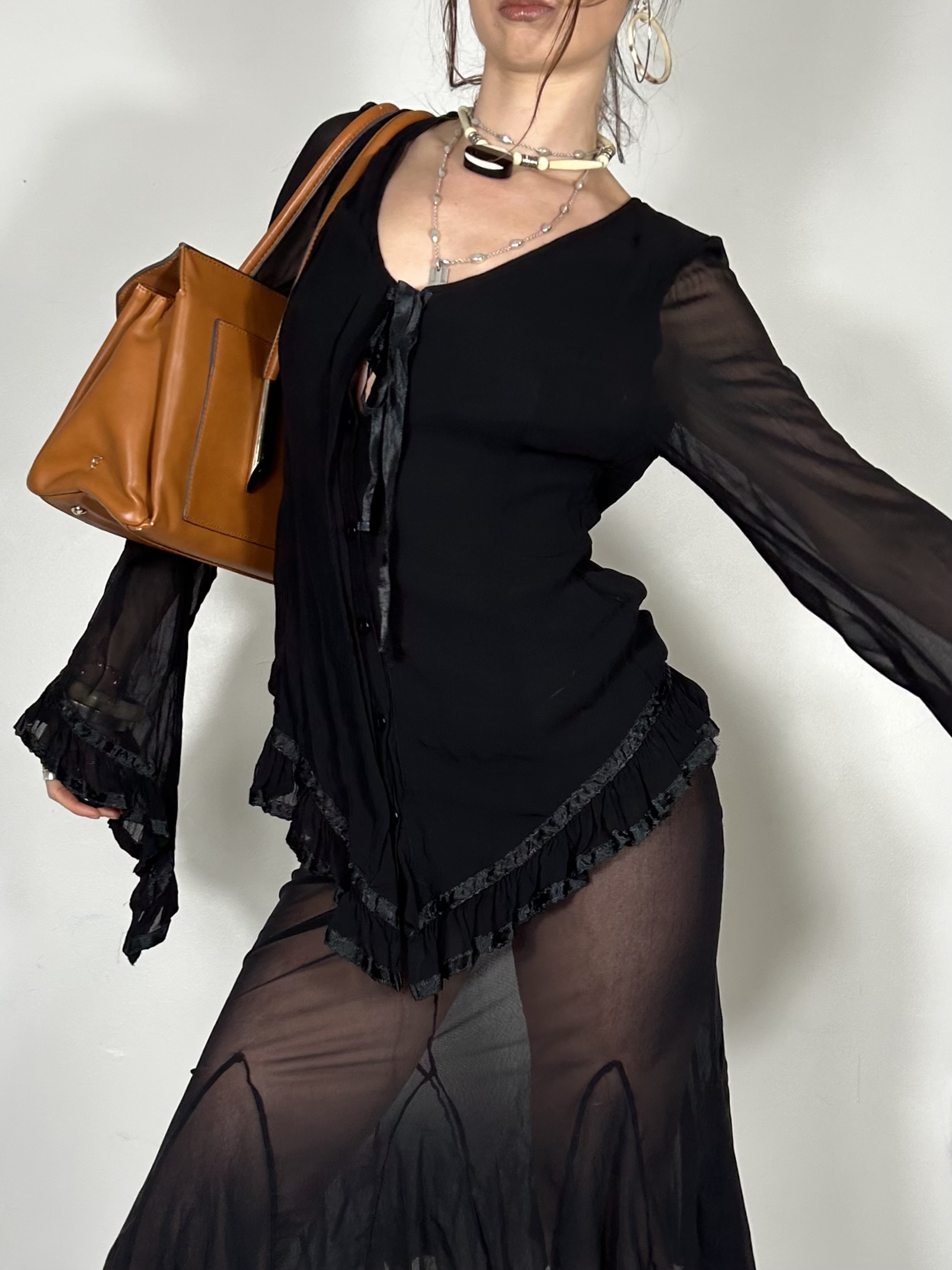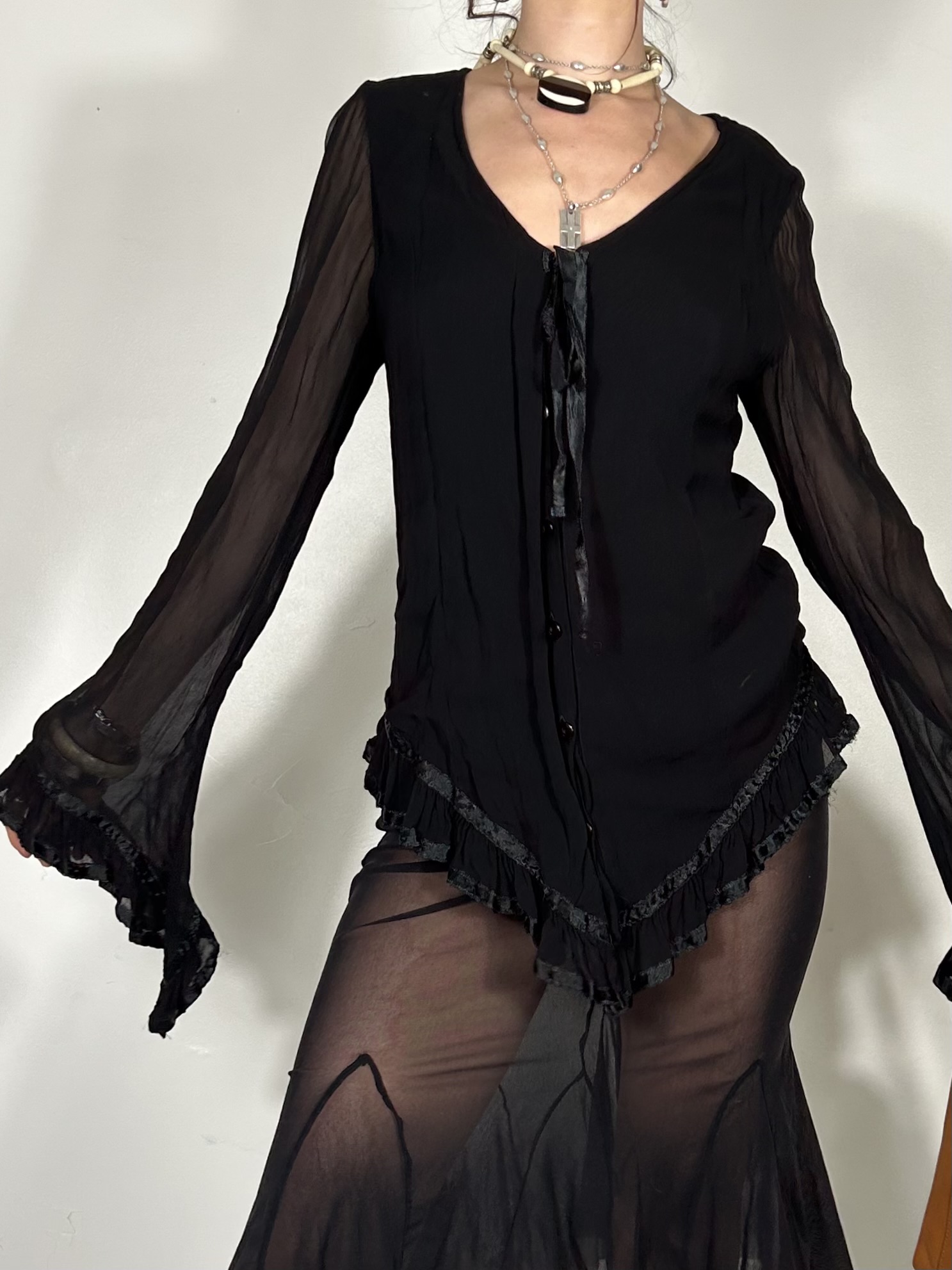Black semi sheer drape drop with tie detailing