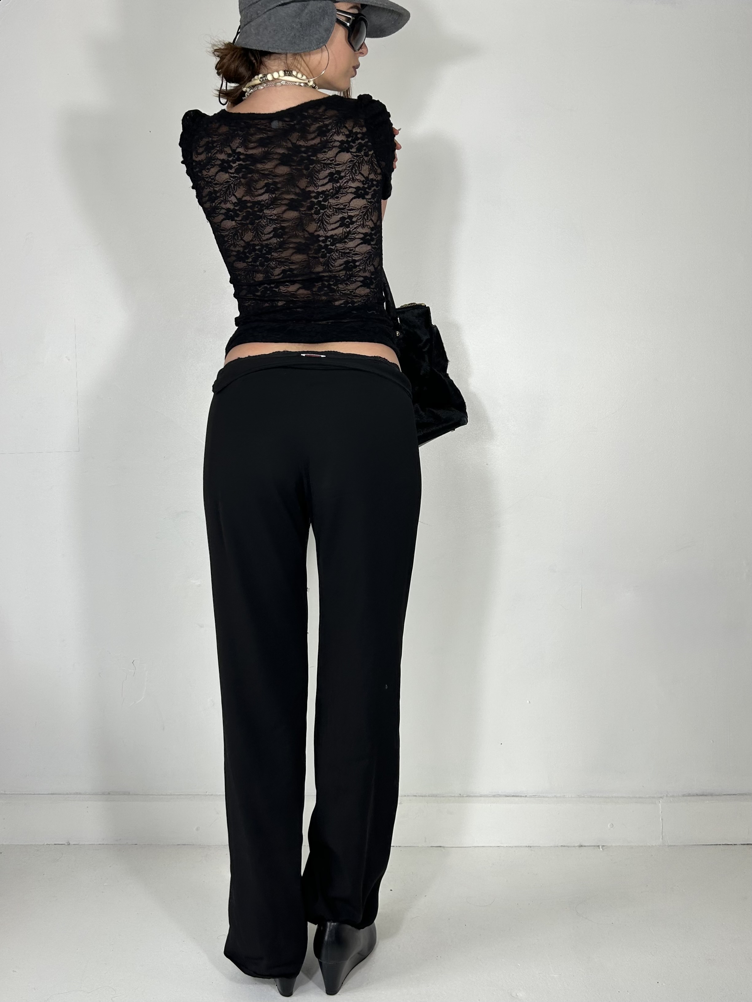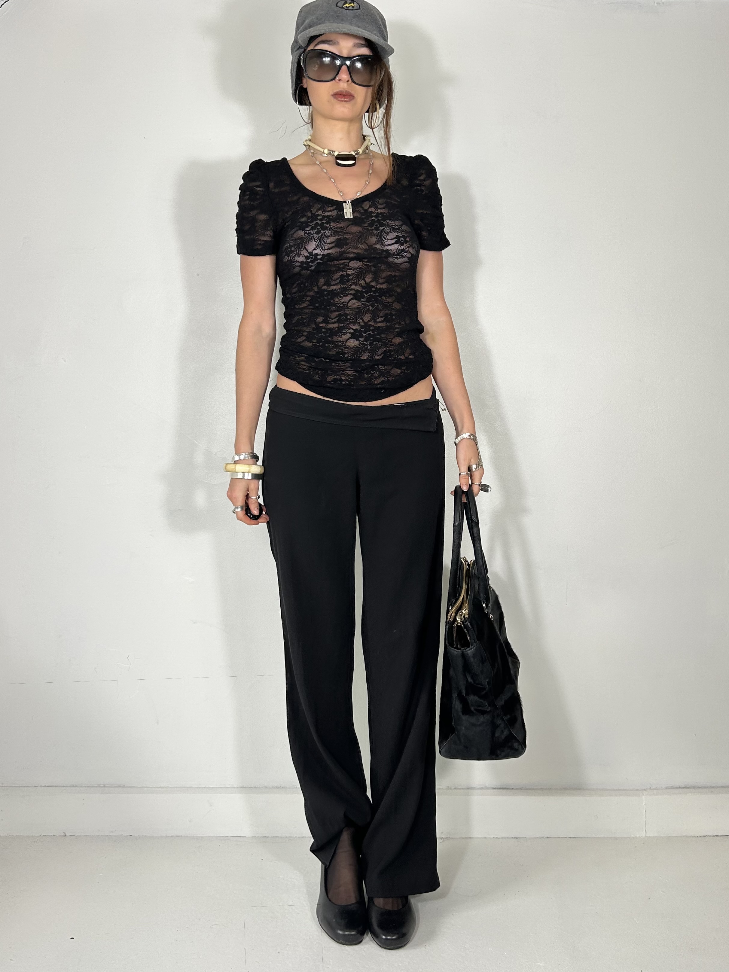 Black lace semi sheer baby tee