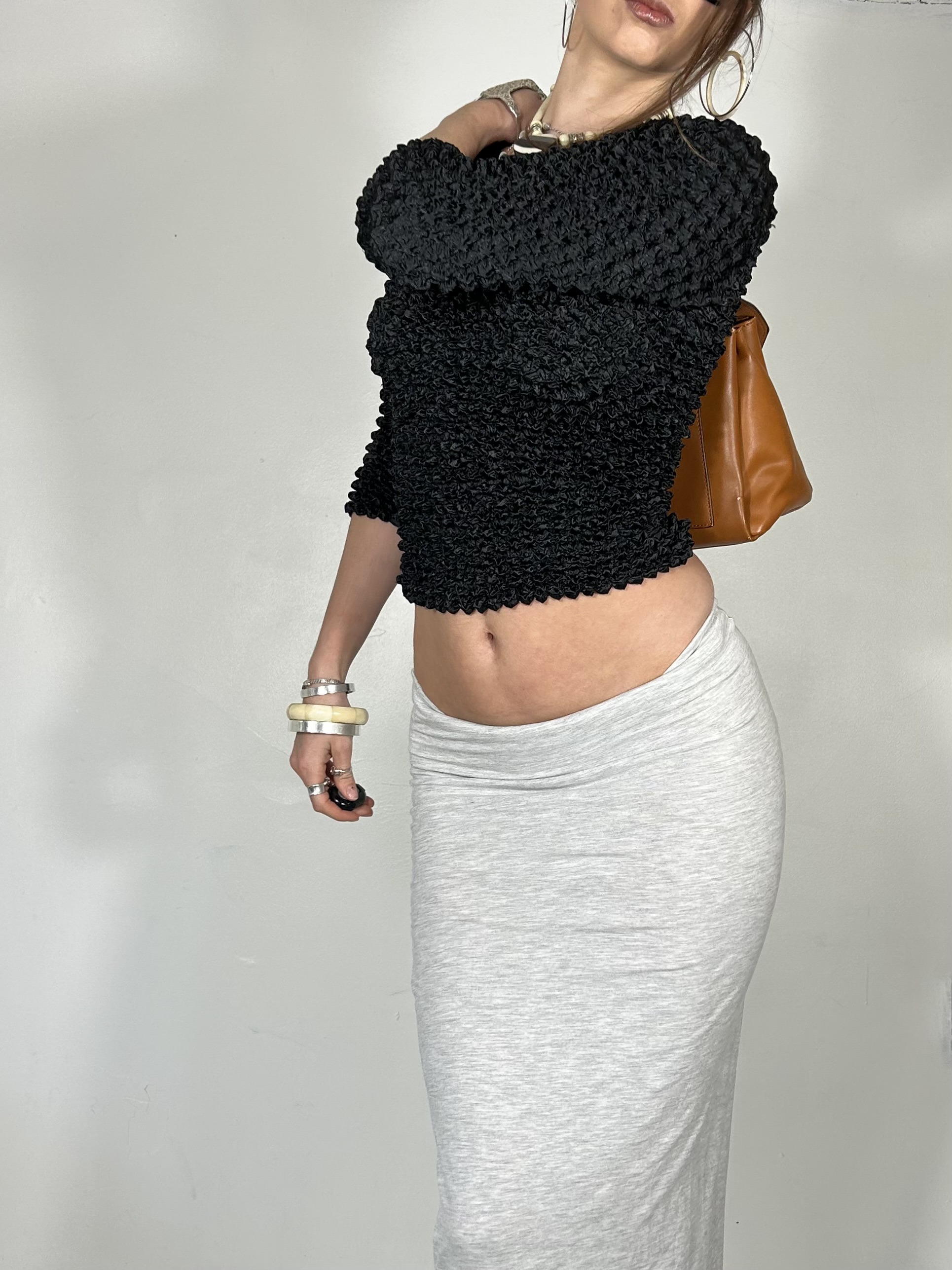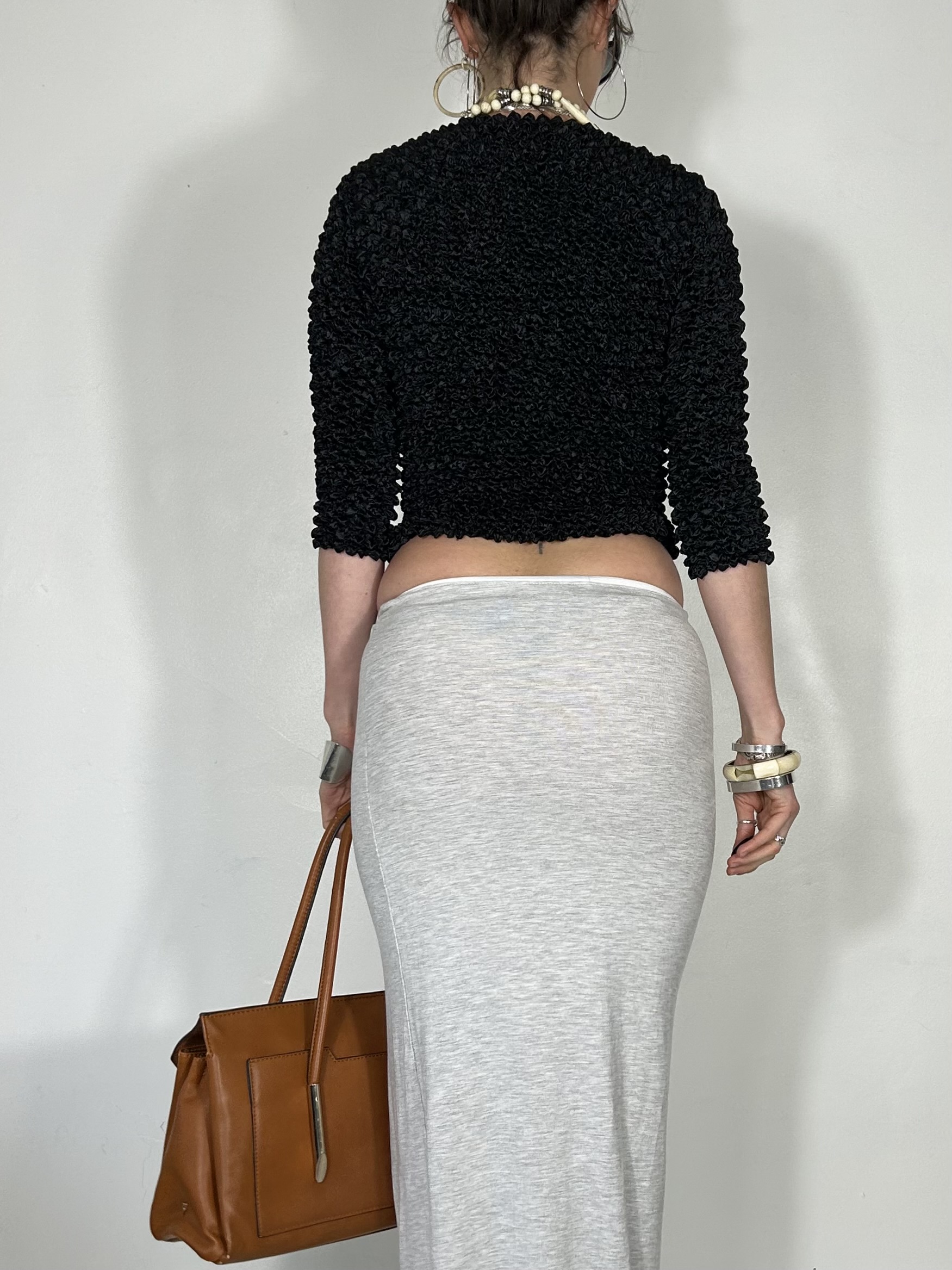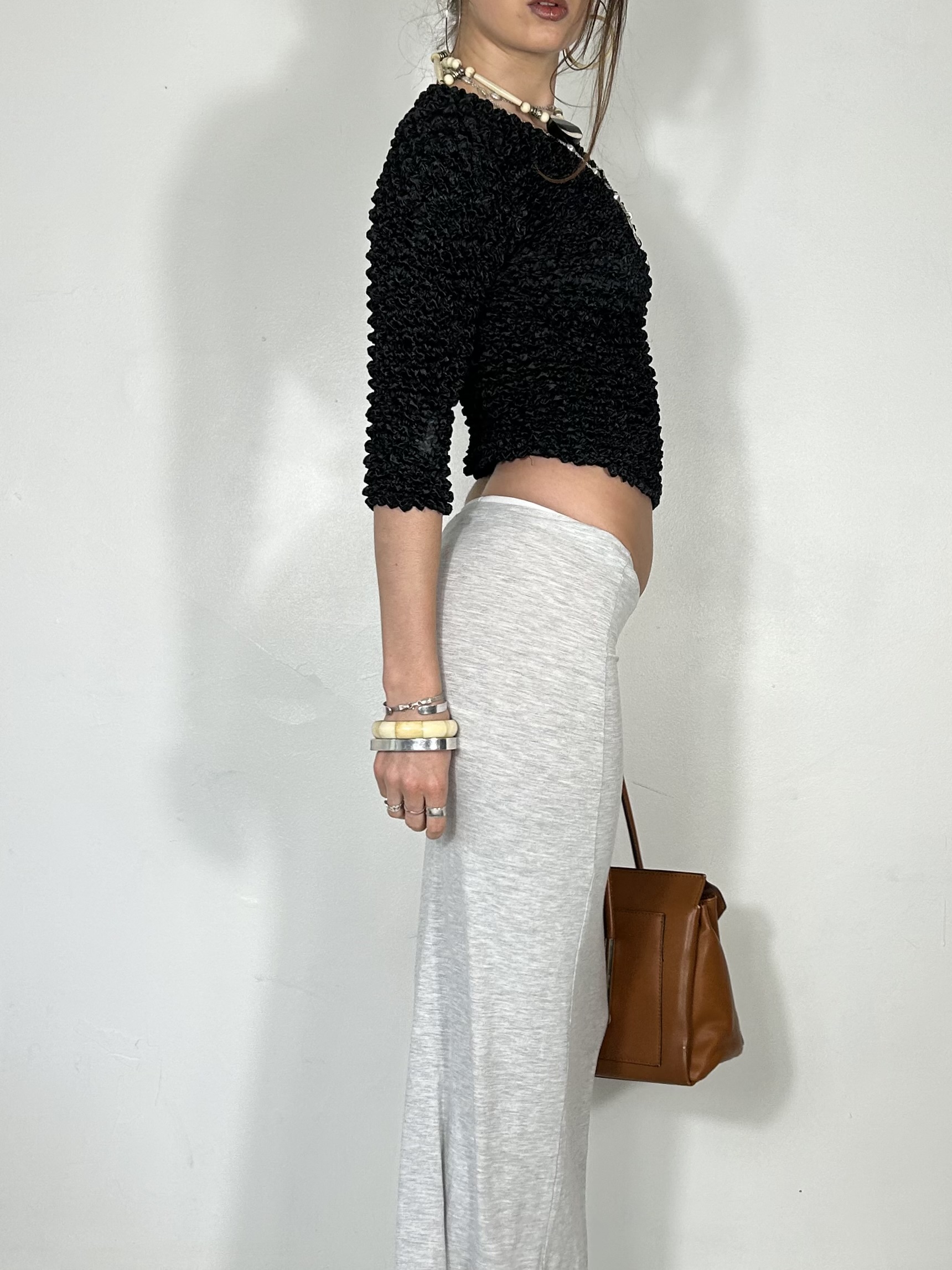 Black textured 3/4 sleeve top