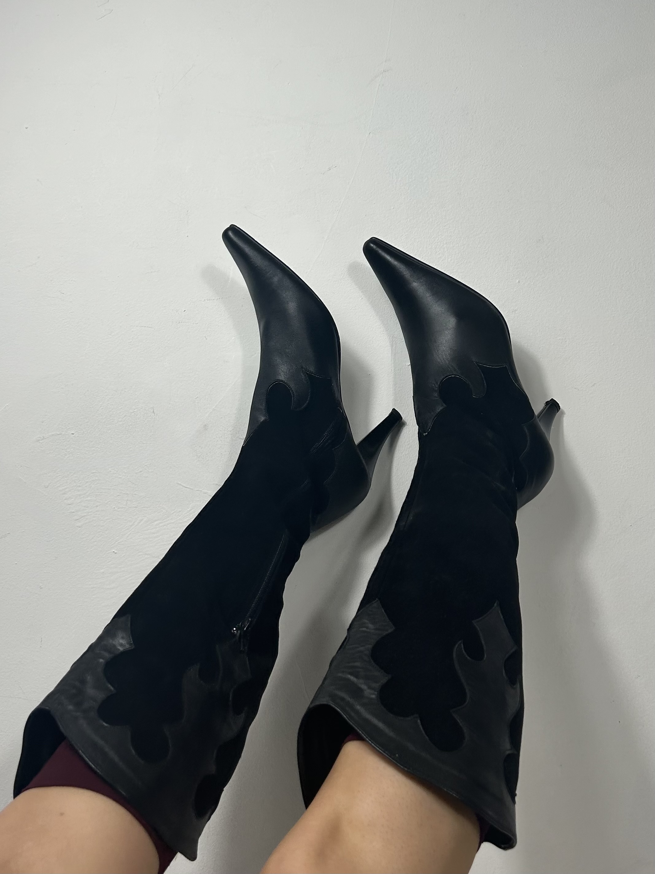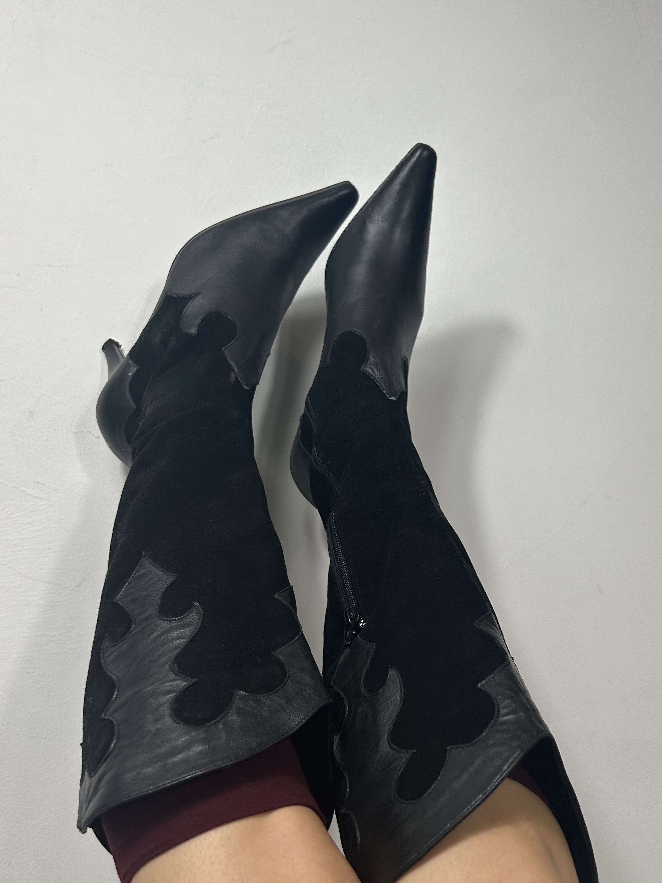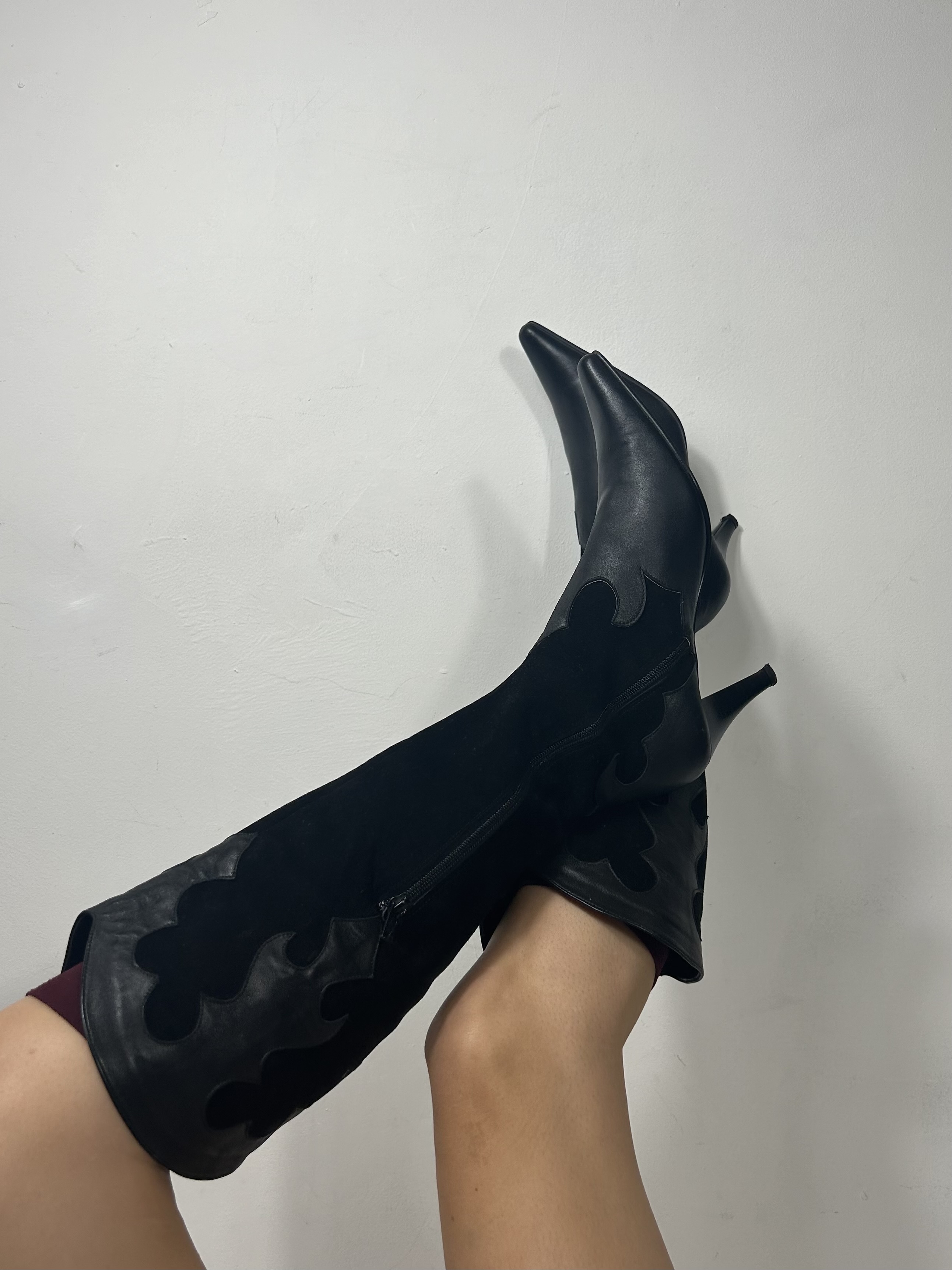 Black suede Capollini knee high cowboy boots, uk 6.5