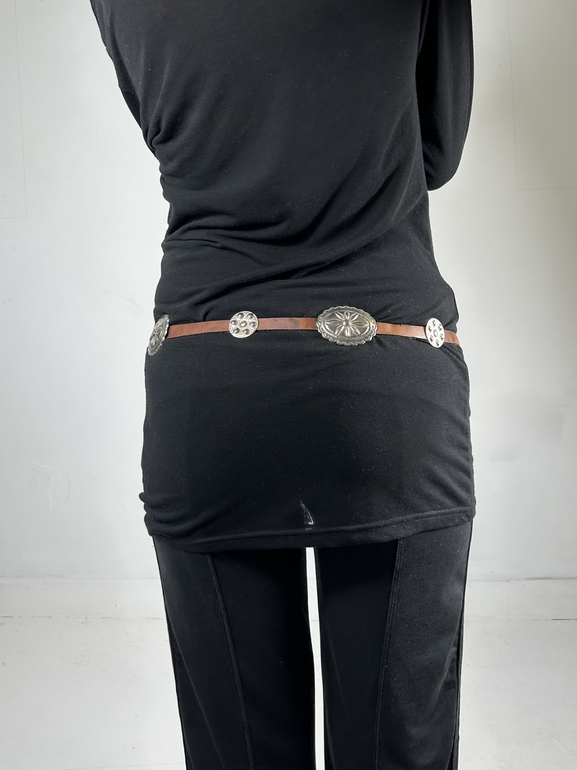 Brown pendant belt with silver embellishments. Size S